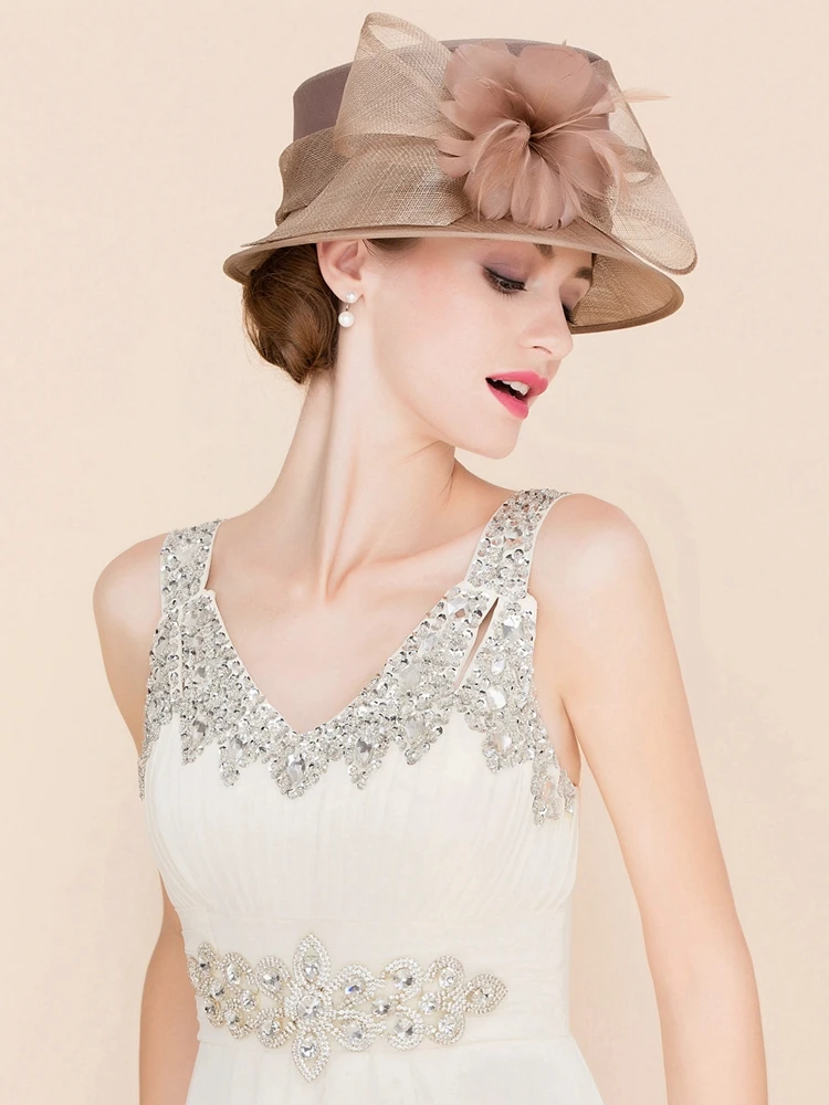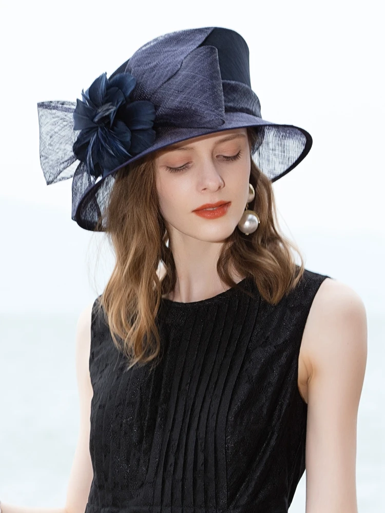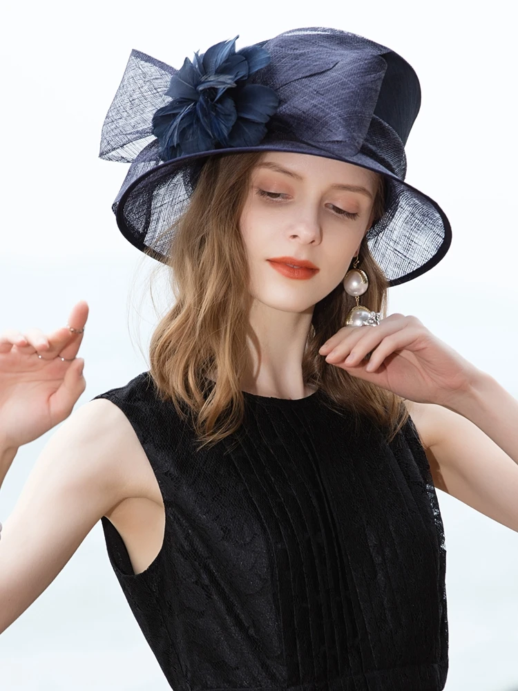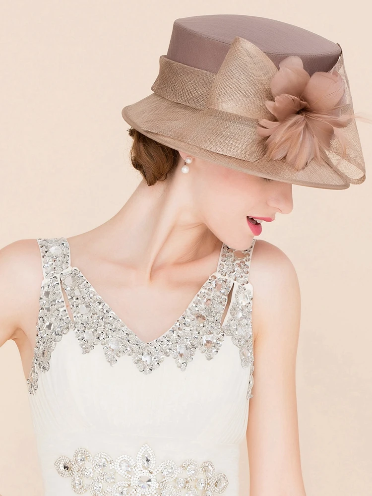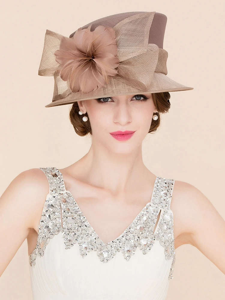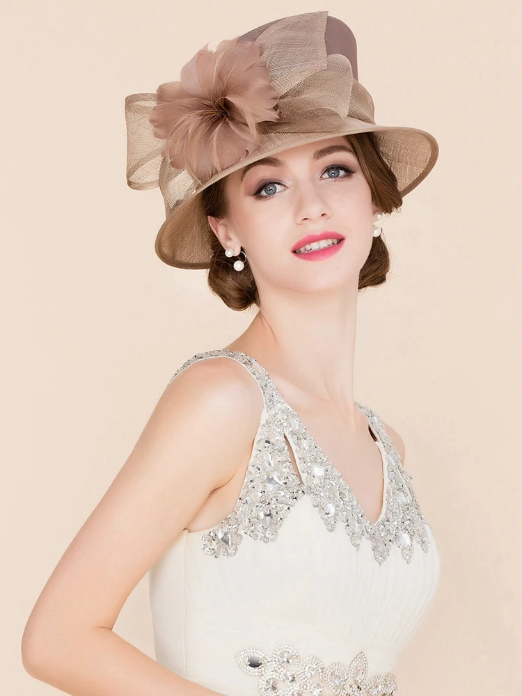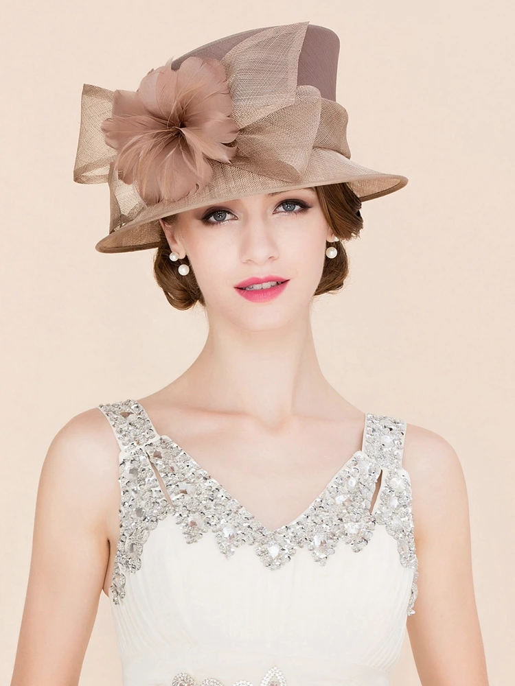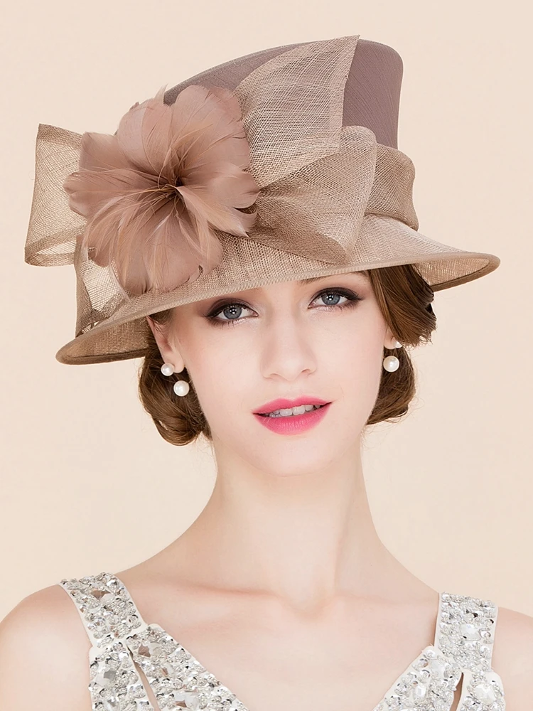 EE 1047 Spring and Summer/Striking/Bowknot/Feather/Floral/Abaca/Elegant/Special Occasion/Flat Cap/Tulle Fabric Hats Headpiece