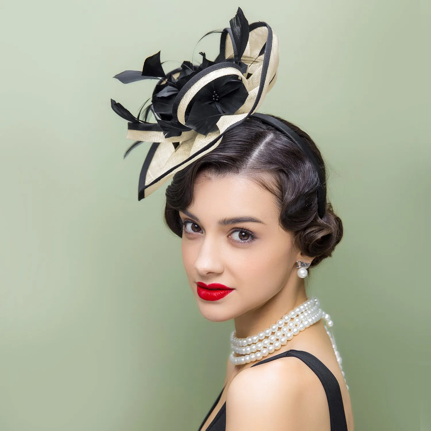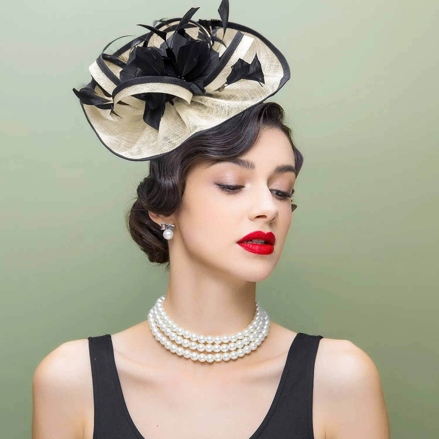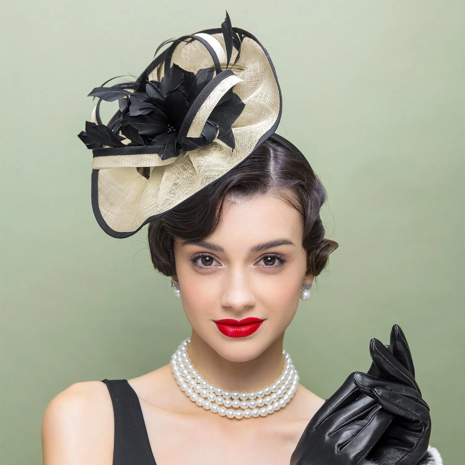 EE 2283 British linen hat hat female elegant flowers feather yarn jockey club