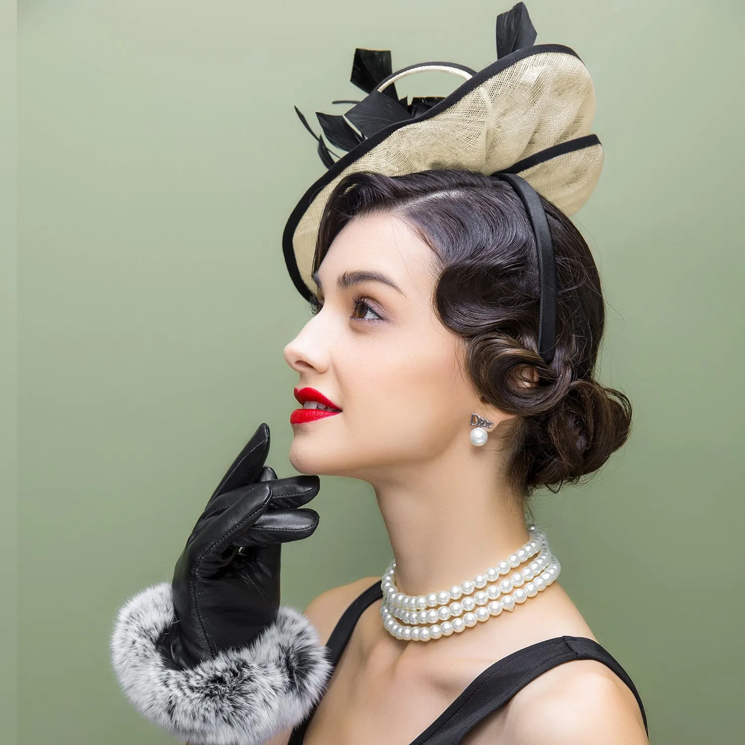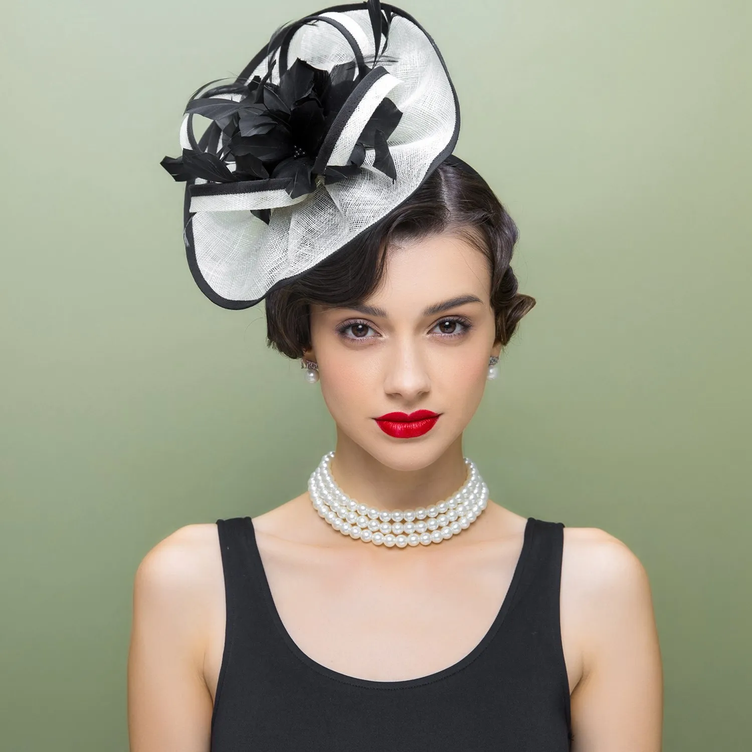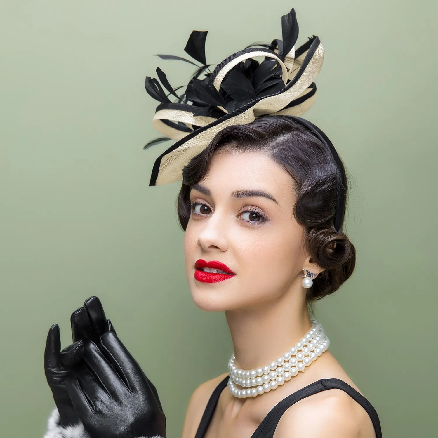 EE 2283 British linen hat hat female elegant flowers feather yarn jockey club