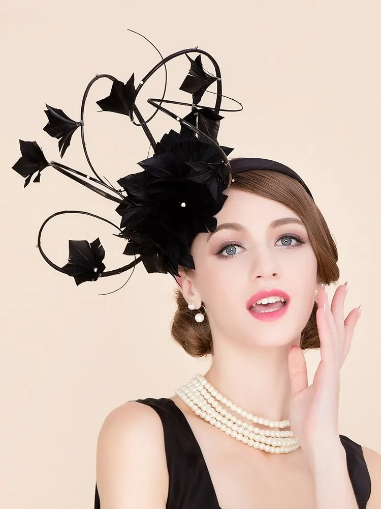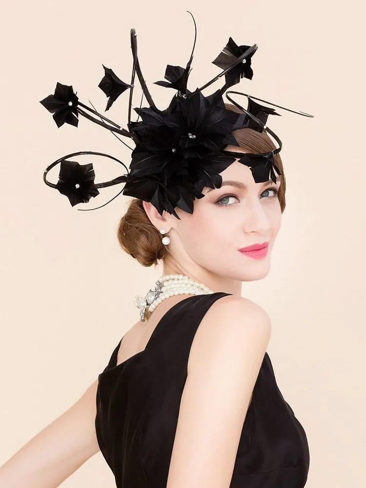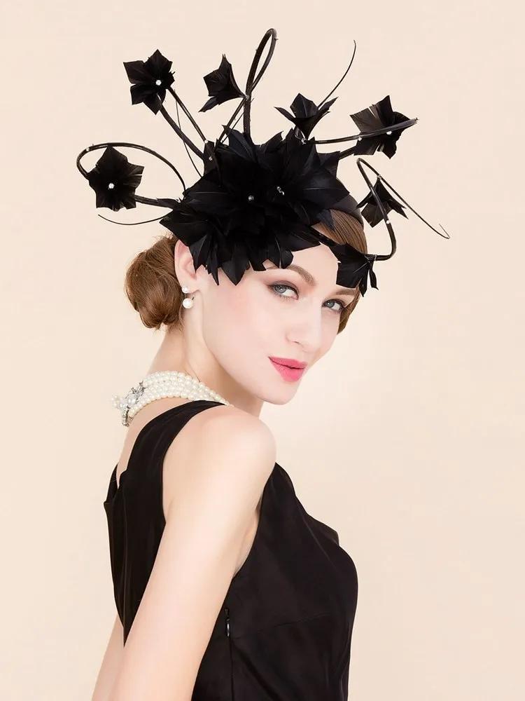 EE 2303 designer duds shows a hat, yarn homburg British elegant yarn feather hat