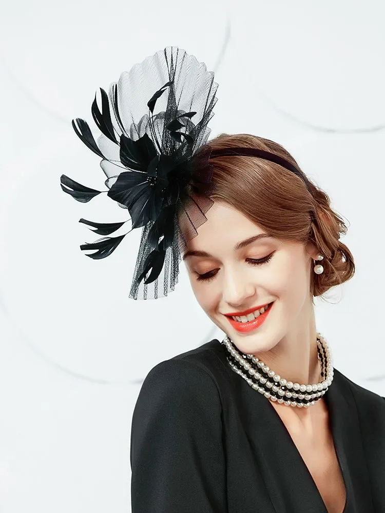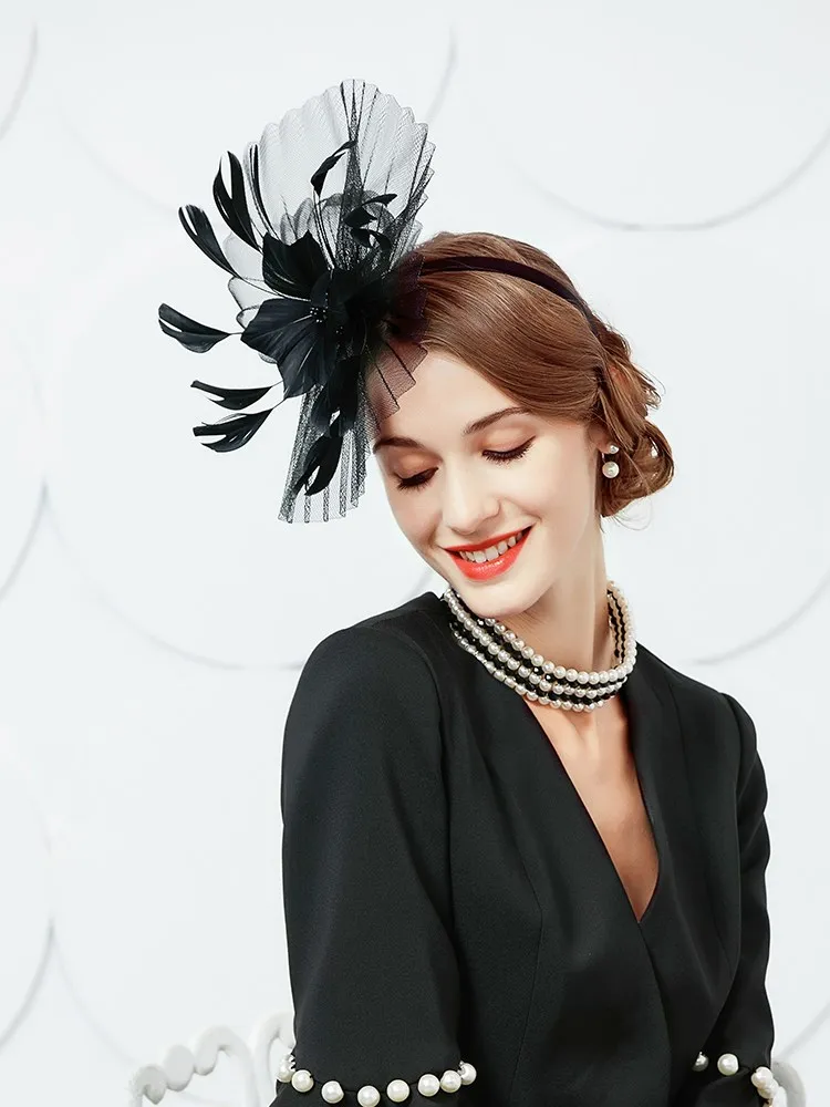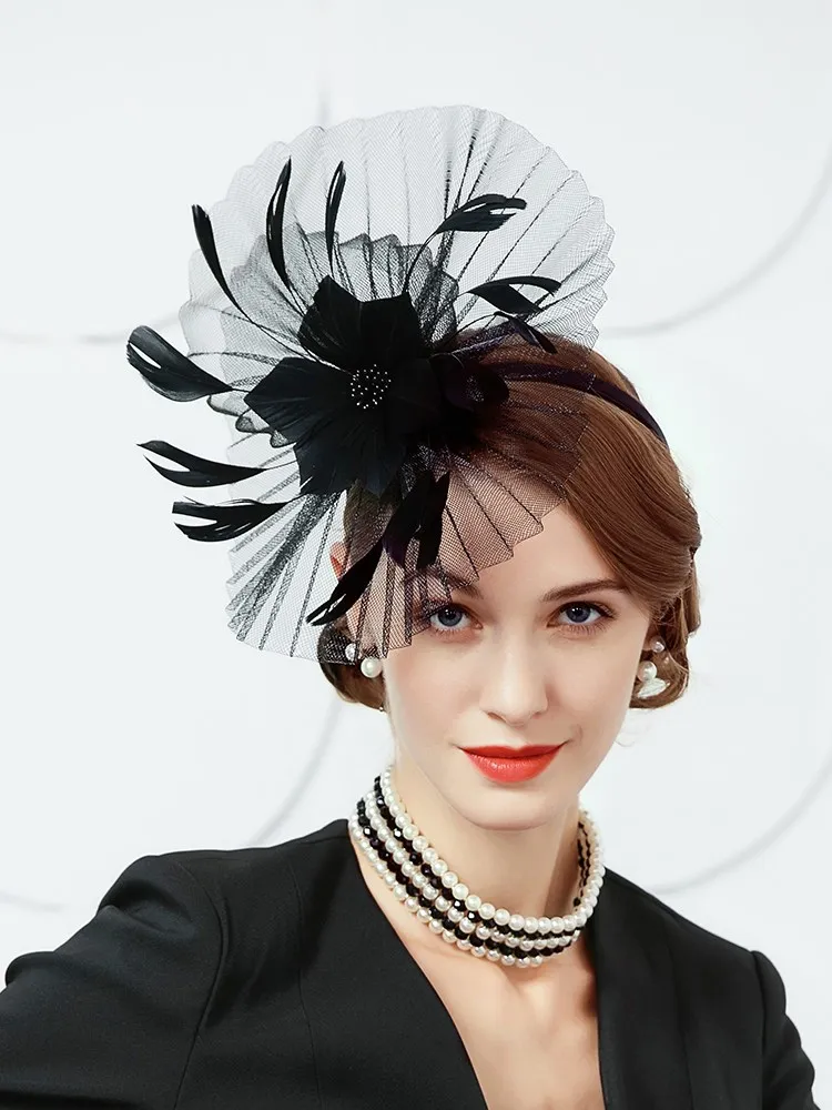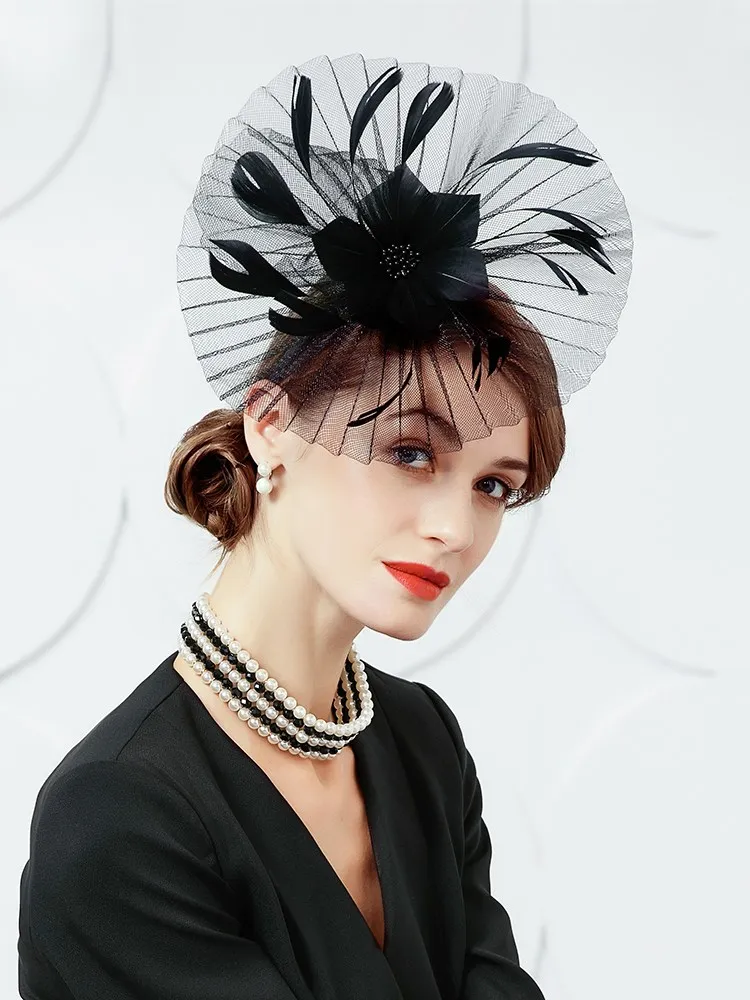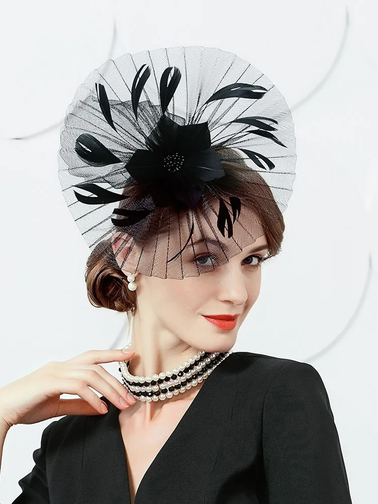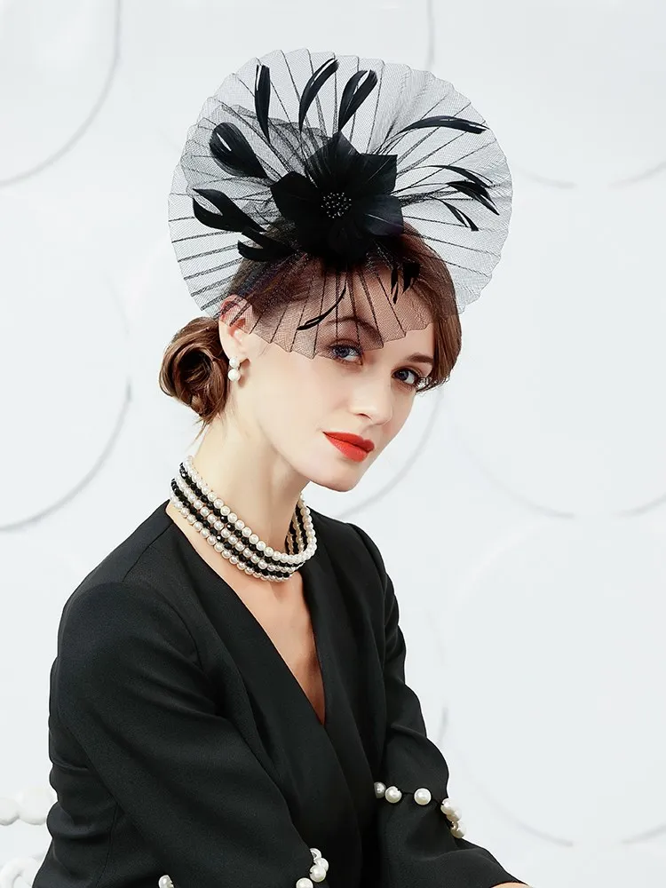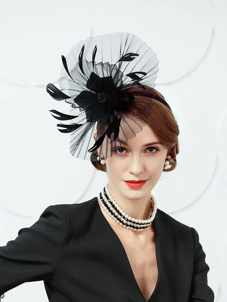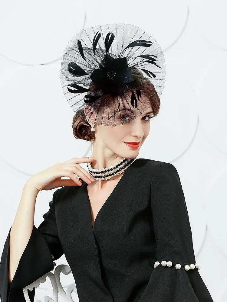 EE 2384 summer new original designer elegant British female summer flowers small feather hat hat