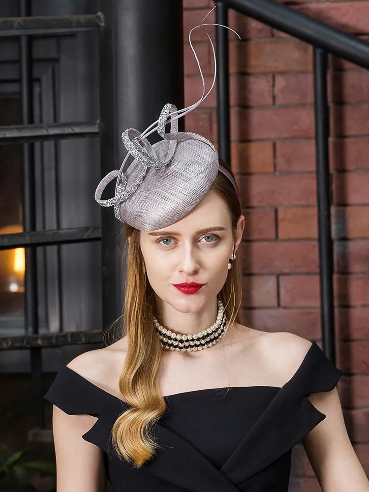 EE 2392 summer new travel elegant British yarn ostrich rod feathers small female summer hat hat