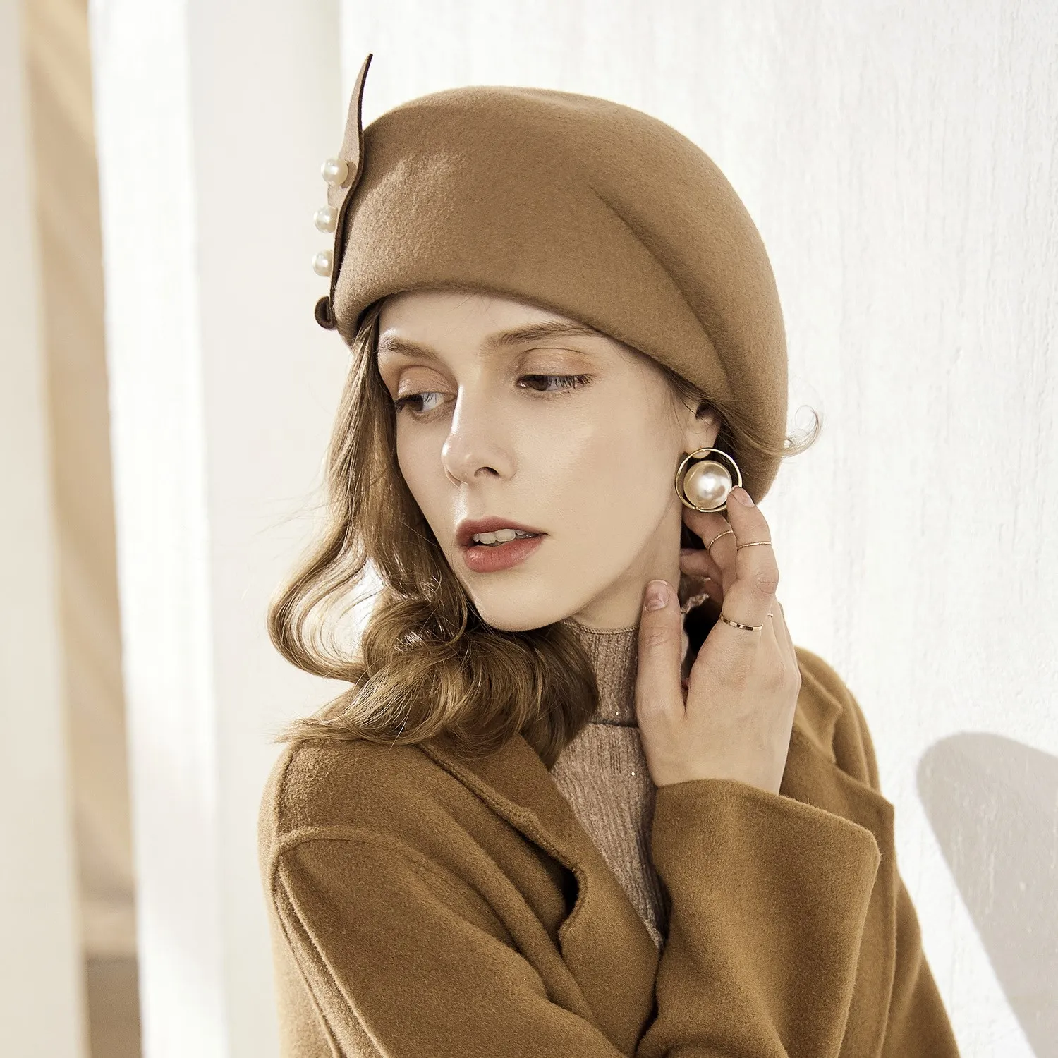 EE 3008 winter hats female han edition of the new party dress hat hat beret pearl decoration