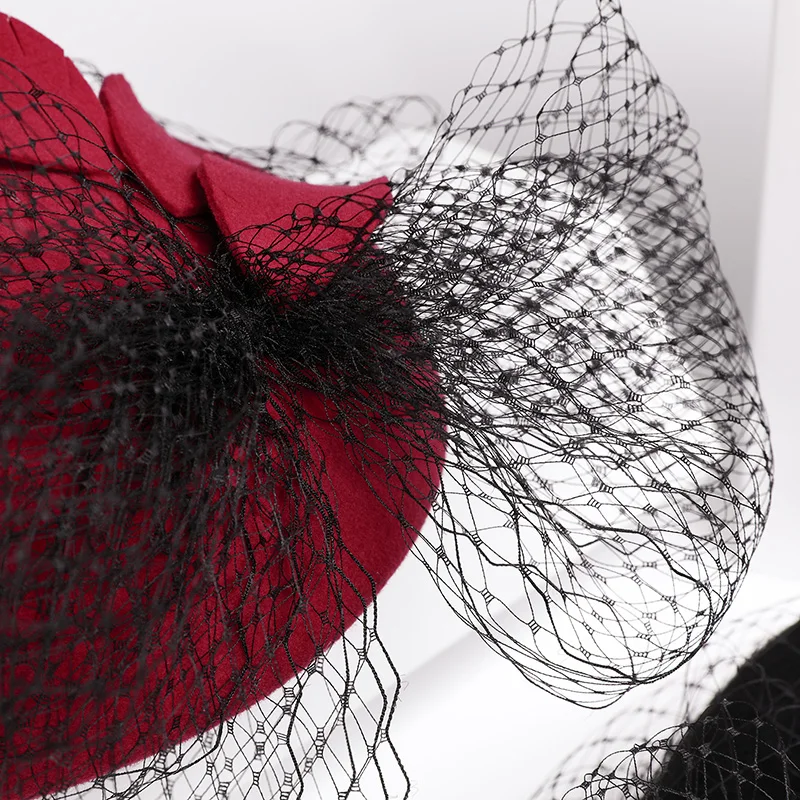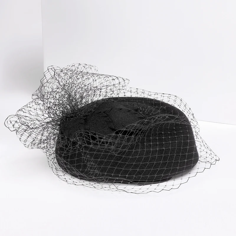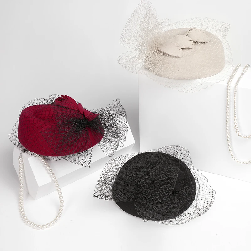 EE 3032 New British Yarn Mesh Woolen Little Top Hat Celebrity Dress Hat Elegant Versatile Hat Women
