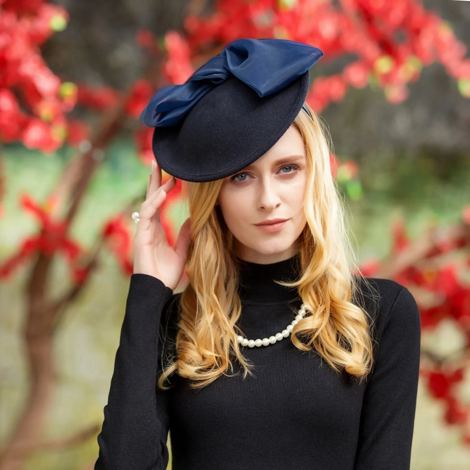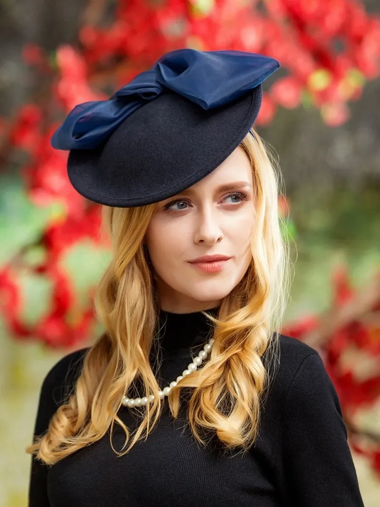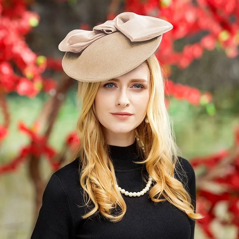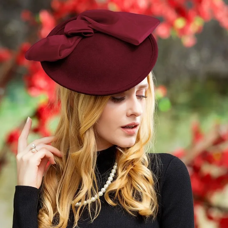 EE 3035 hat female new winter tide restoring ancient ways about British wool homburg joker socialite party dress hats