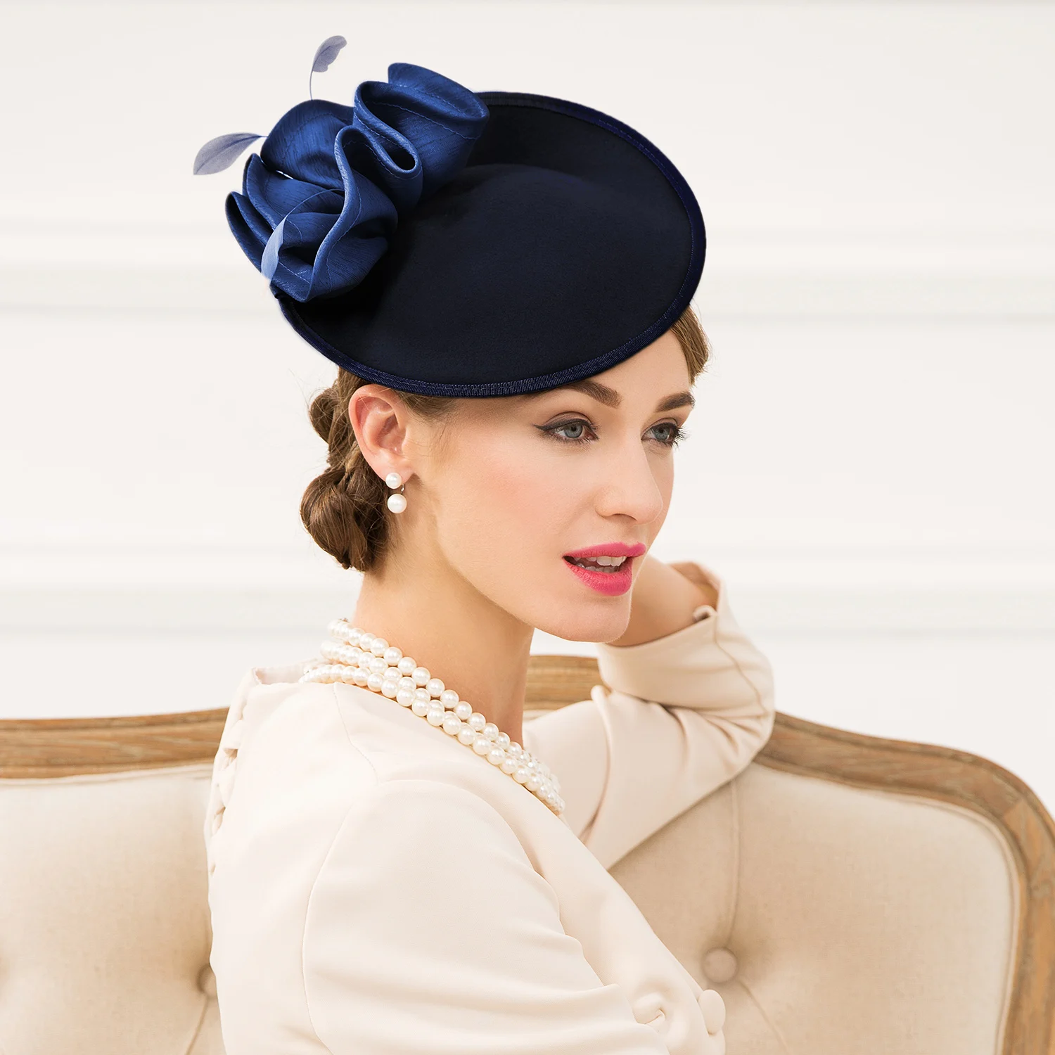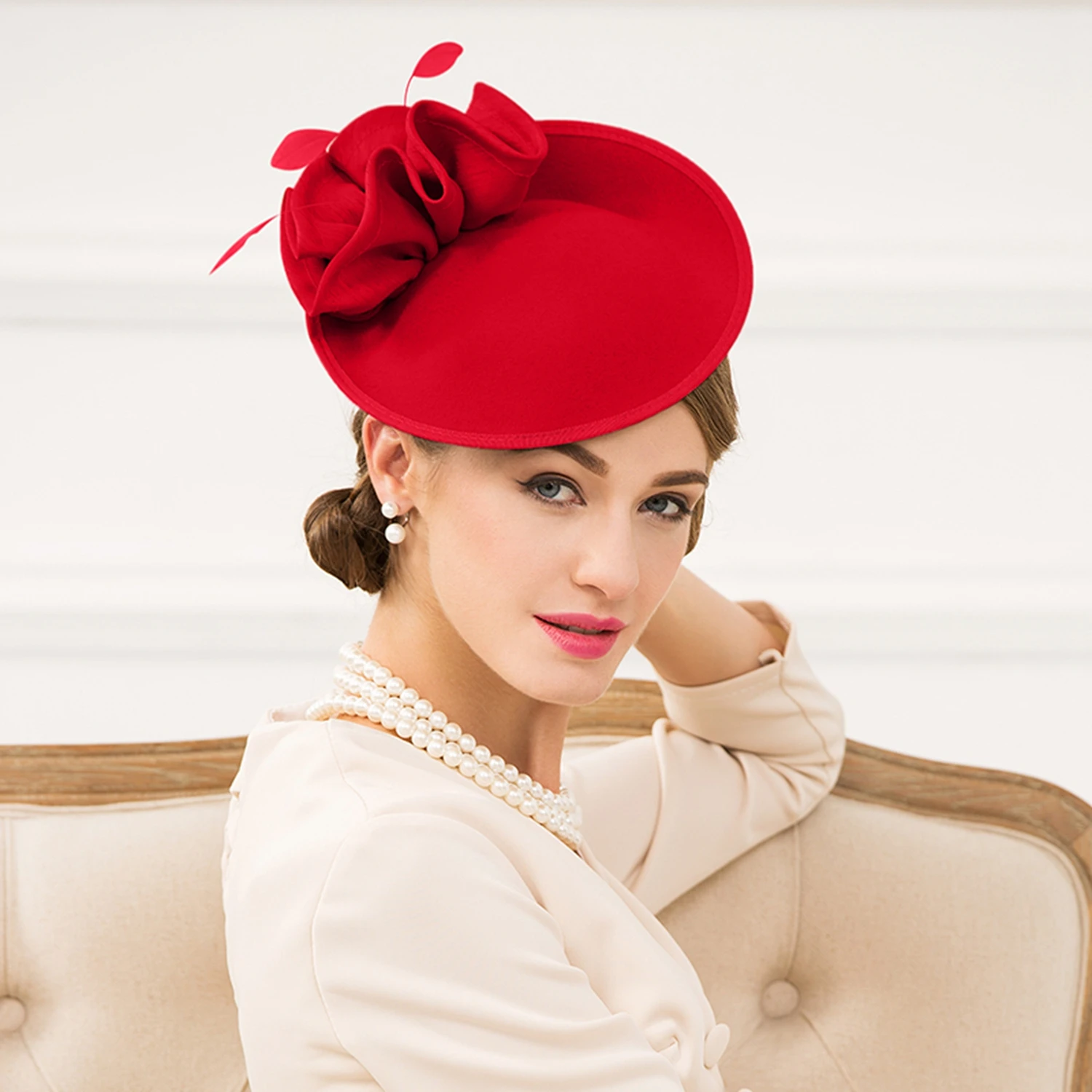 EE 3039 winter/party/racing cap/hat/feather headdress flower wool felt hat
