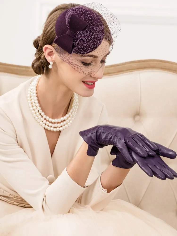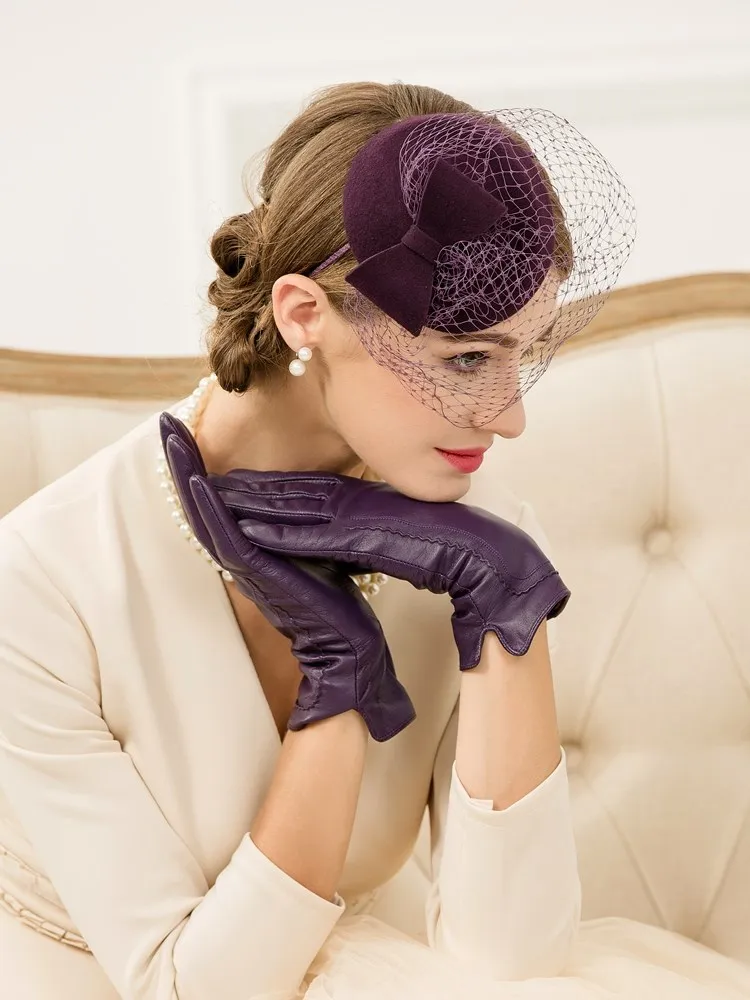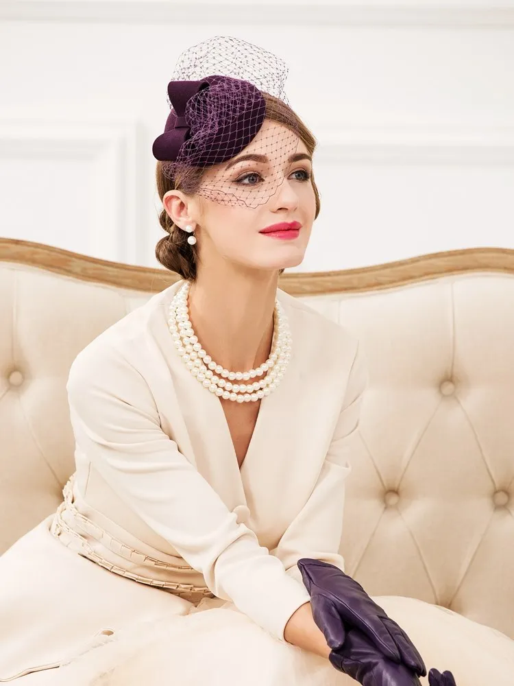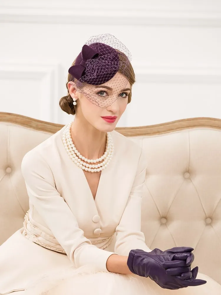 EE 3092 female retro vintage wine red wool hat English party homburg woolen cloth cap
