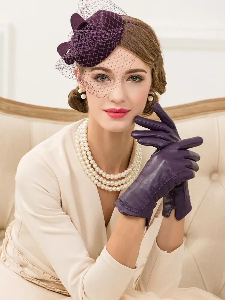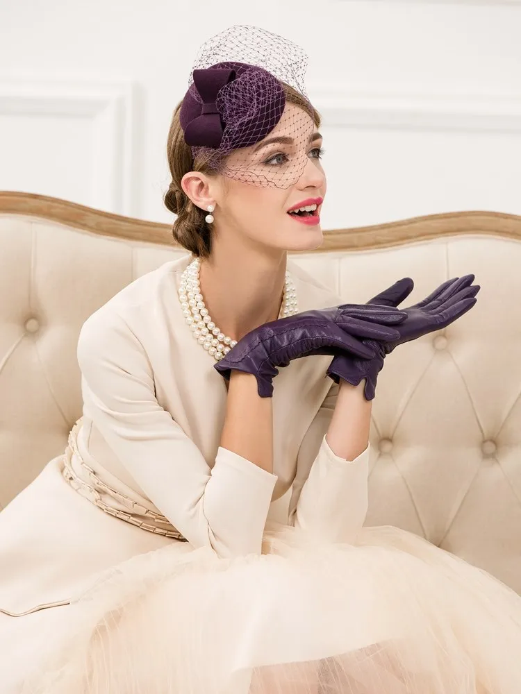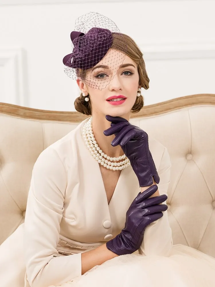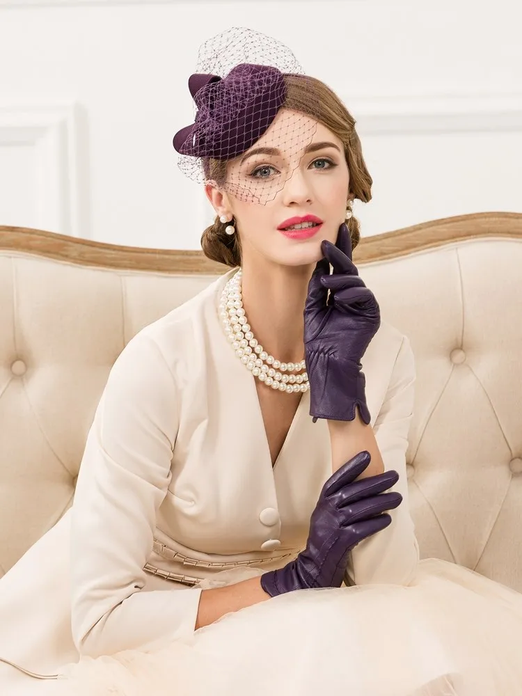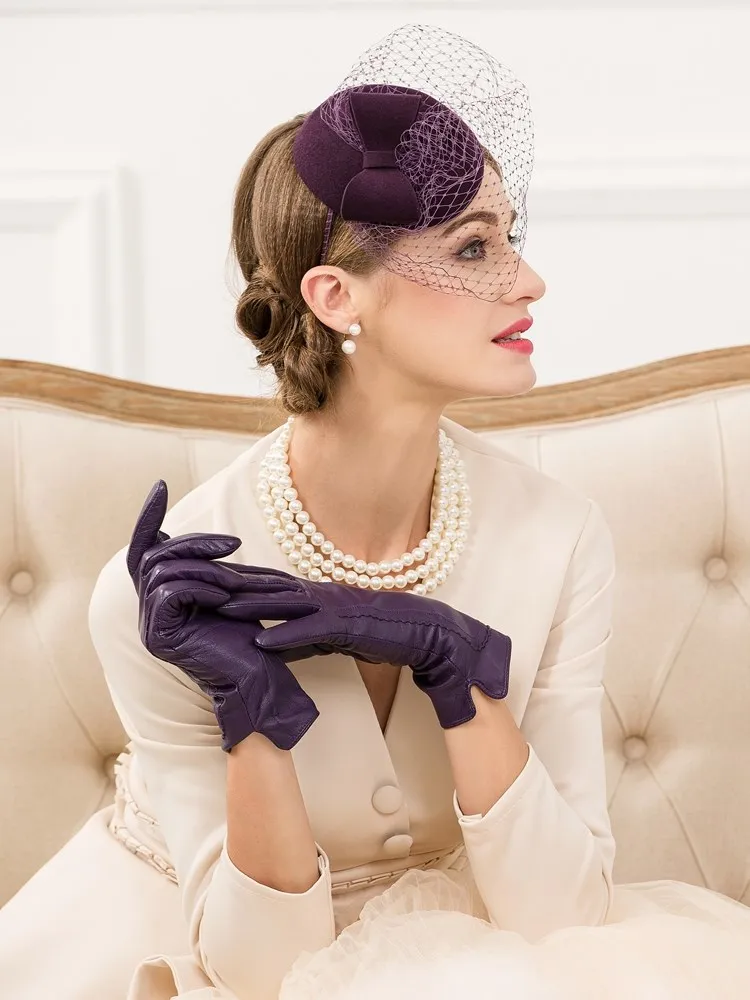 EE 3092 female retro vintage wine red wool hat English party homburg woolen cloth cap