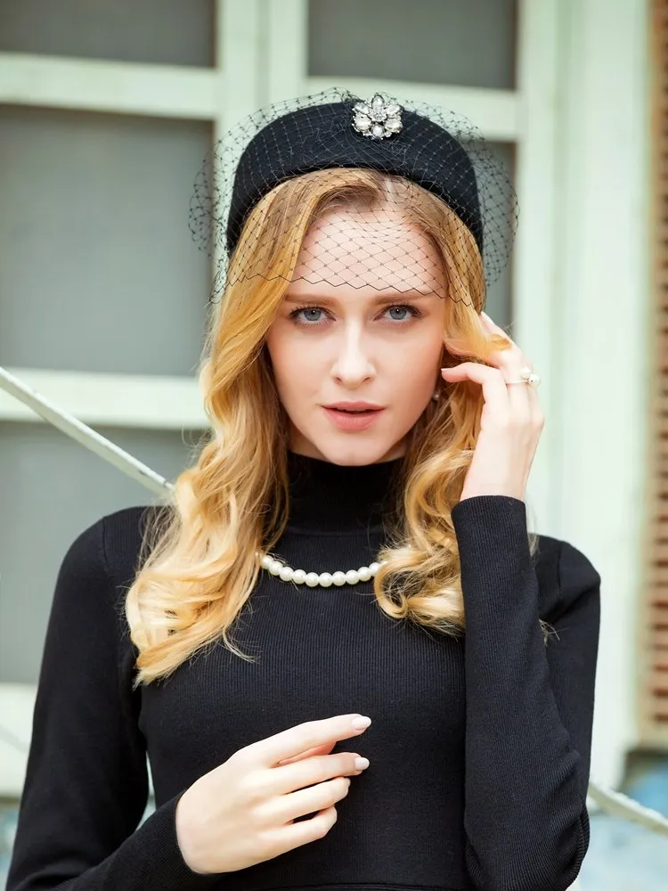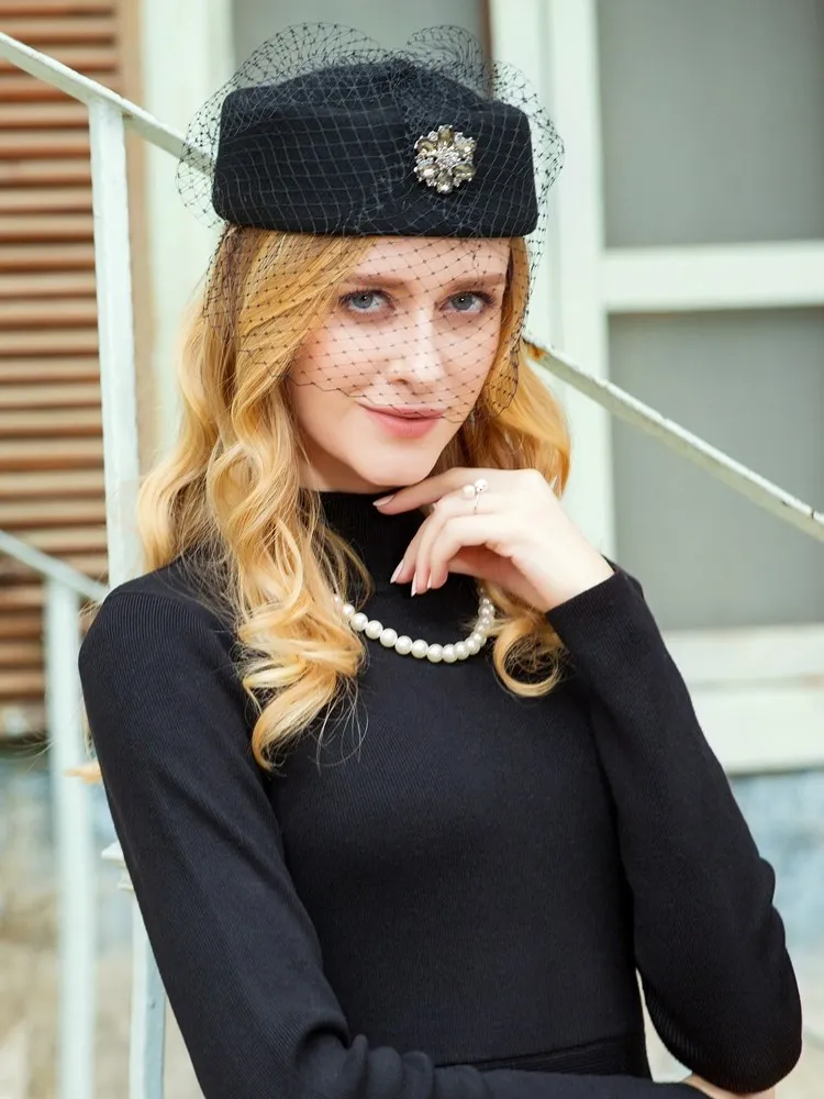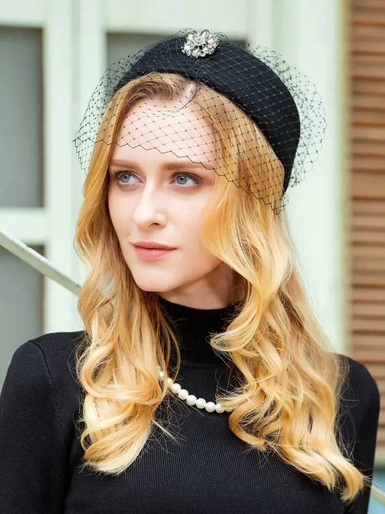 EE 3099 qiu dong small wool hat retro elegant net shamao winter leisure joker hat black woman