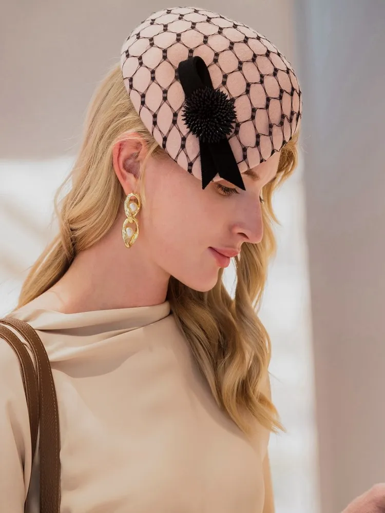 EE 3125 elegant British homburg new winter wool net shamao qiu dong female concave shape restoring ancient ways is ha