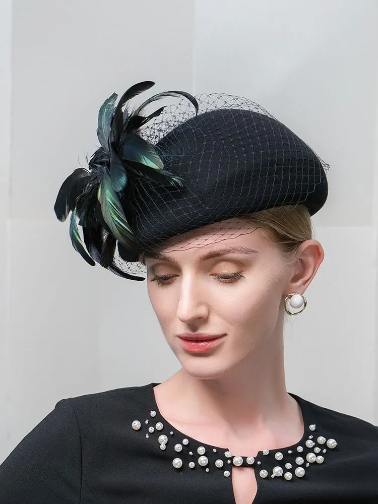 EE 3132 new winter hat gauze restoring ancient ways of England felt trilby female winter pure wool hat