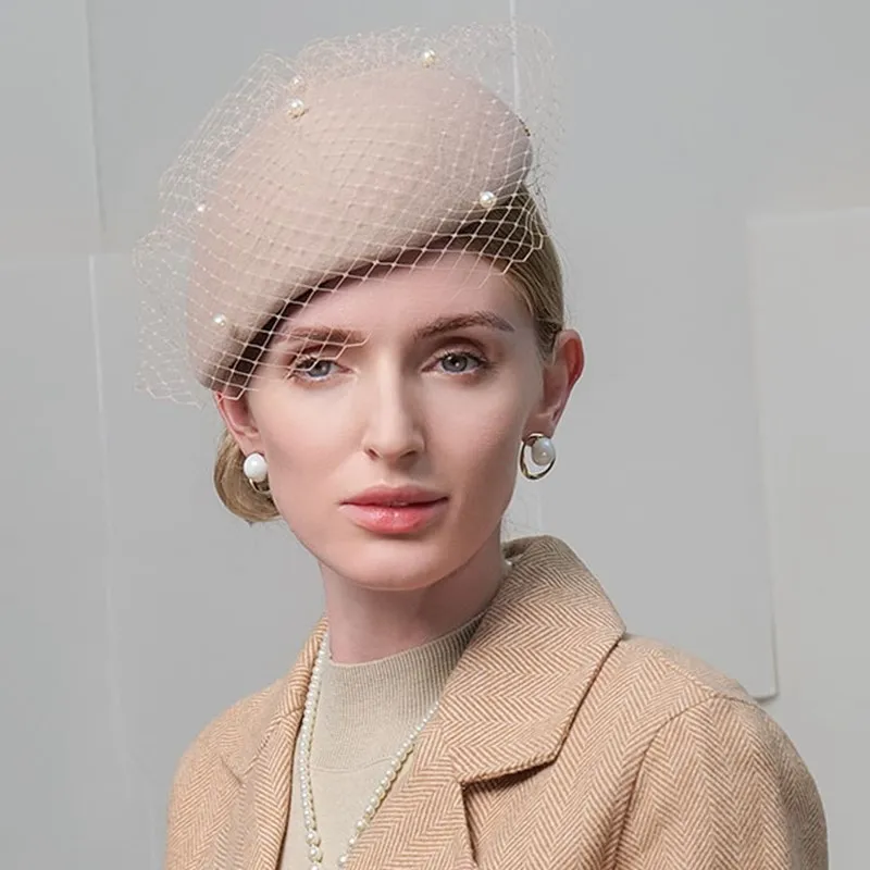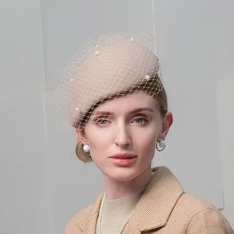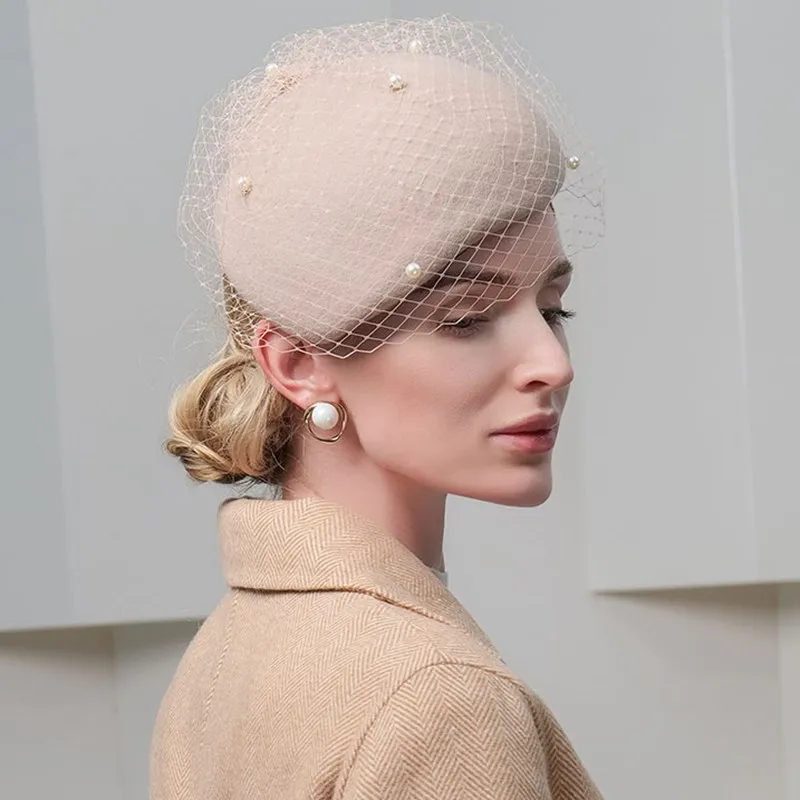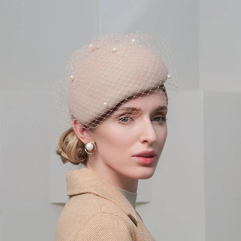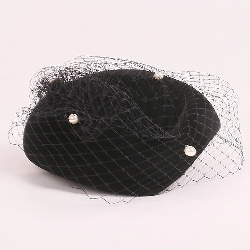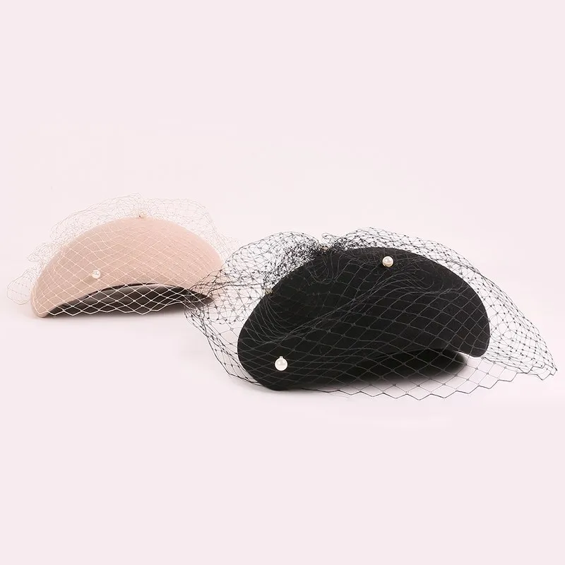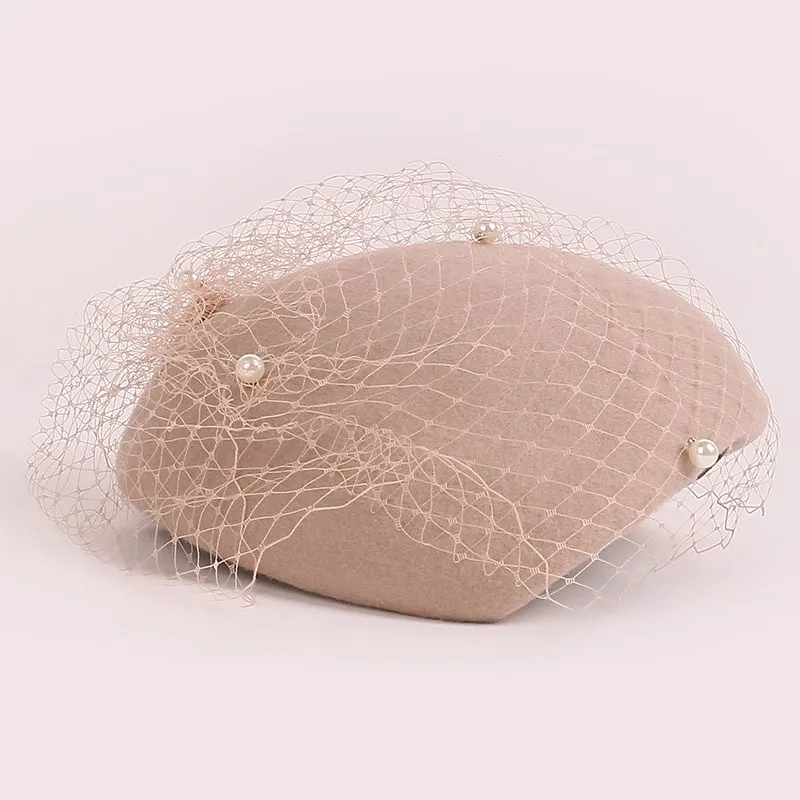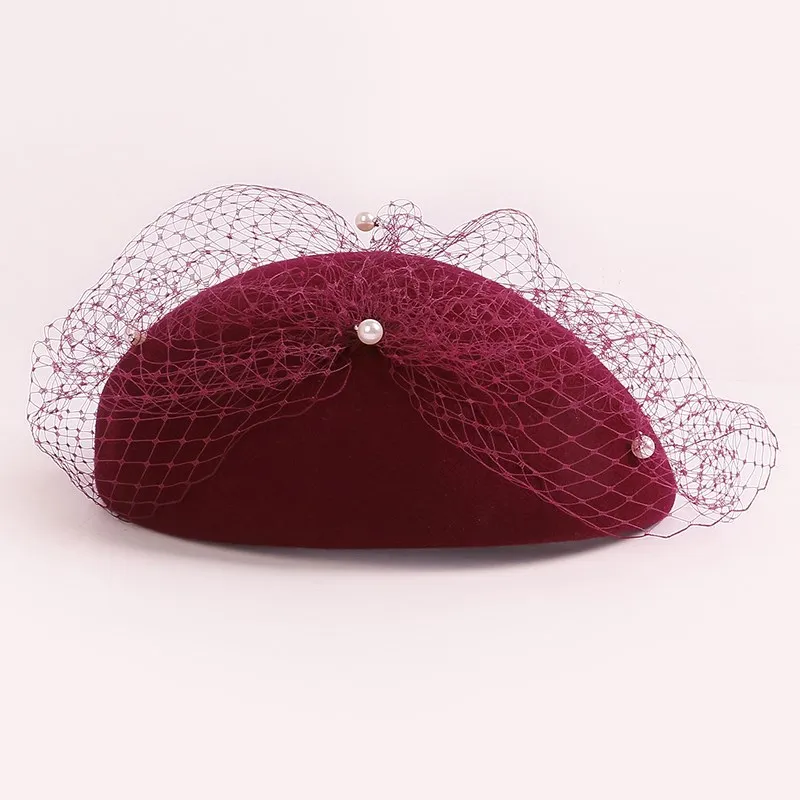 EE 3135 new winter British beret retro elegant cloth net yarn pearl wool hat female winter