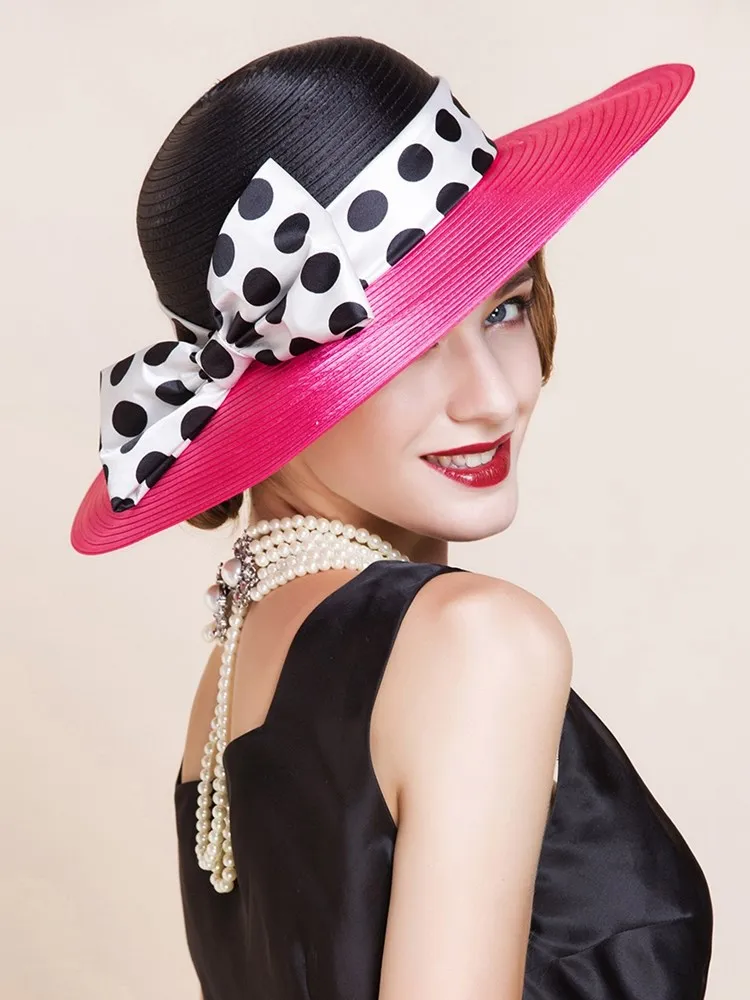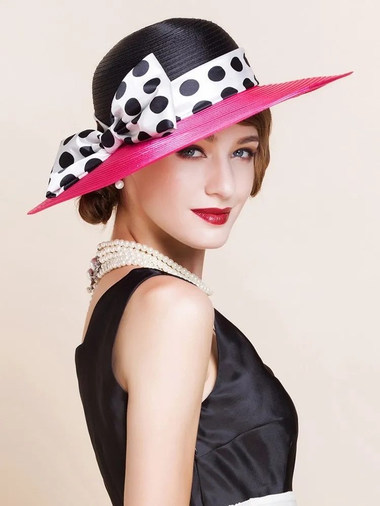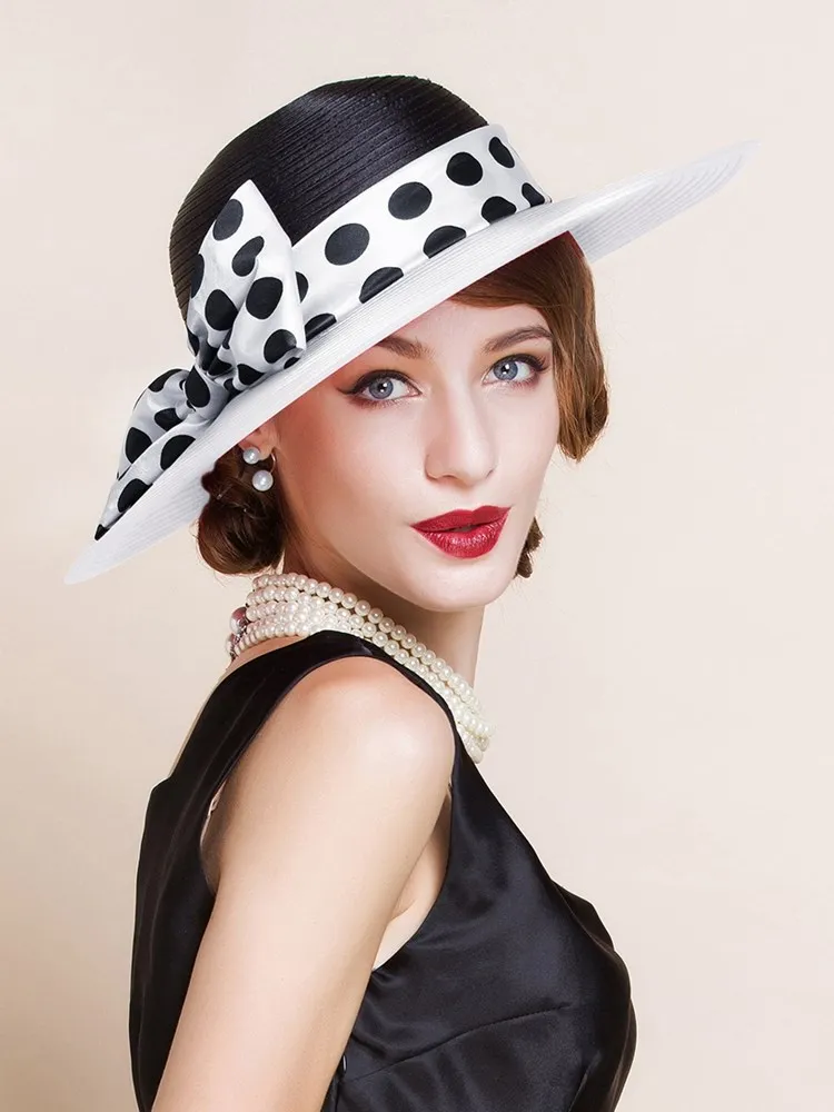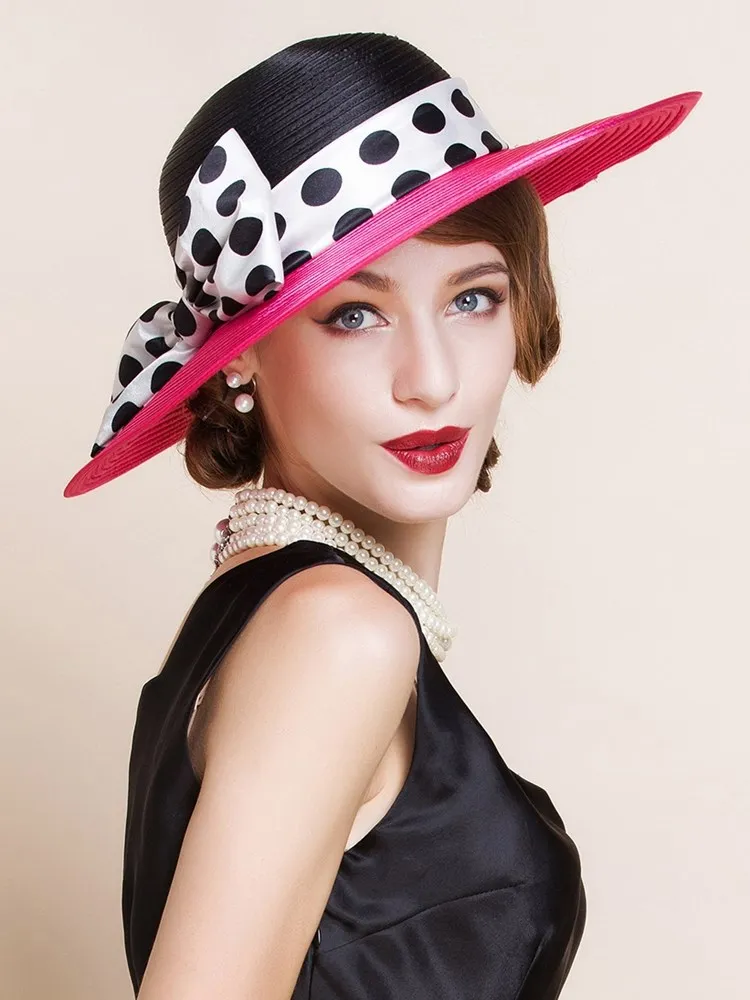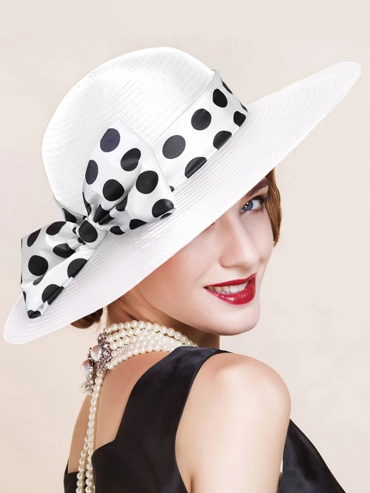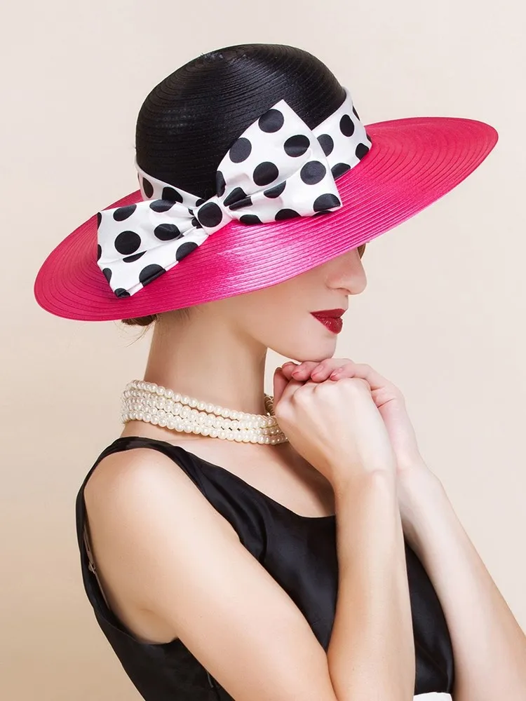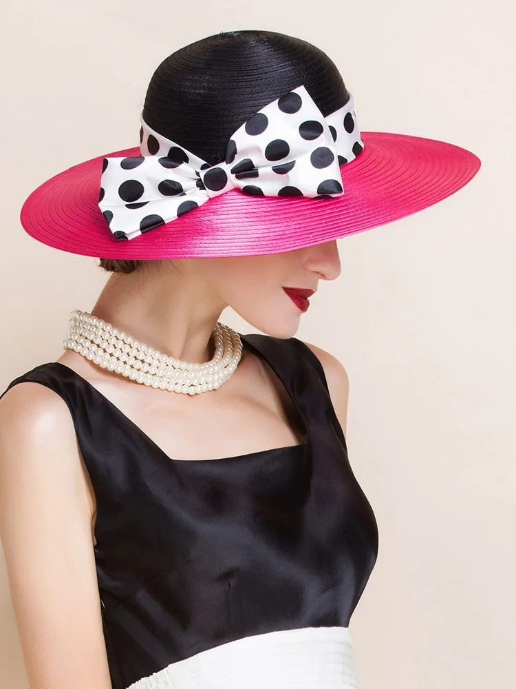 EE 4025 Spring/Summer Dome Bowknot Wave Dot Big Eaves Sunshade Sunscreen Straw Hat English Elegant Hat Female Summer