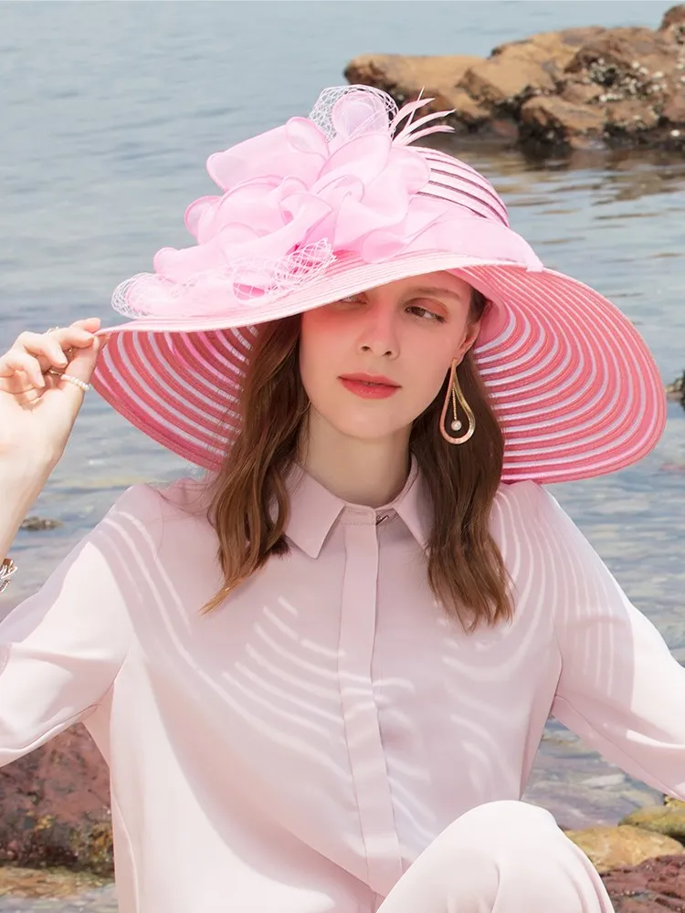 EE 4038 New Organza Top Hat Versatile British Jockey Club Women's Hat Wide brim White