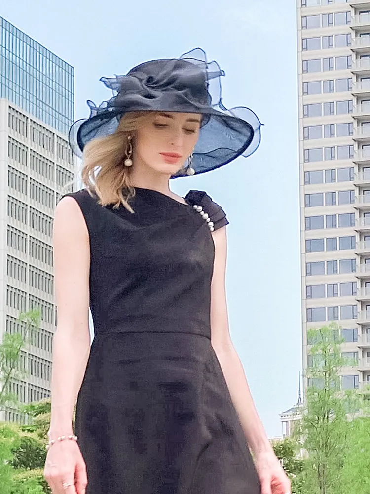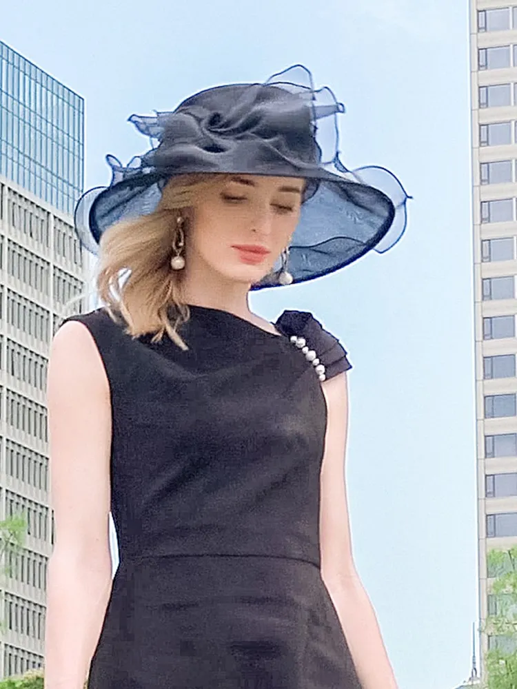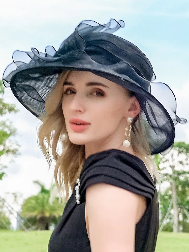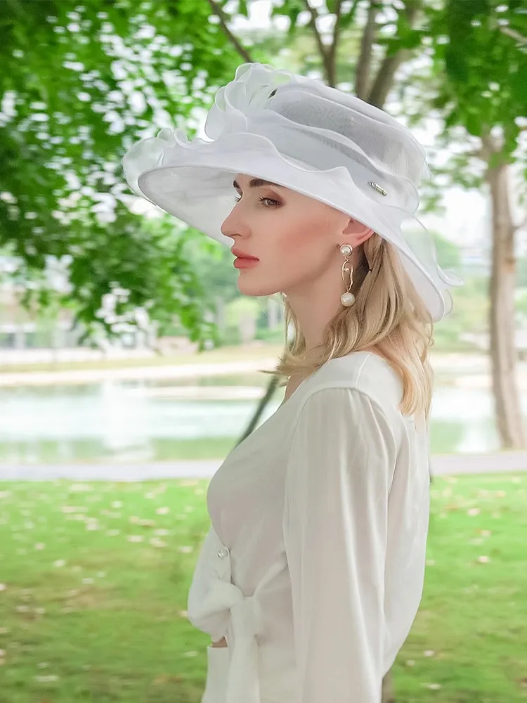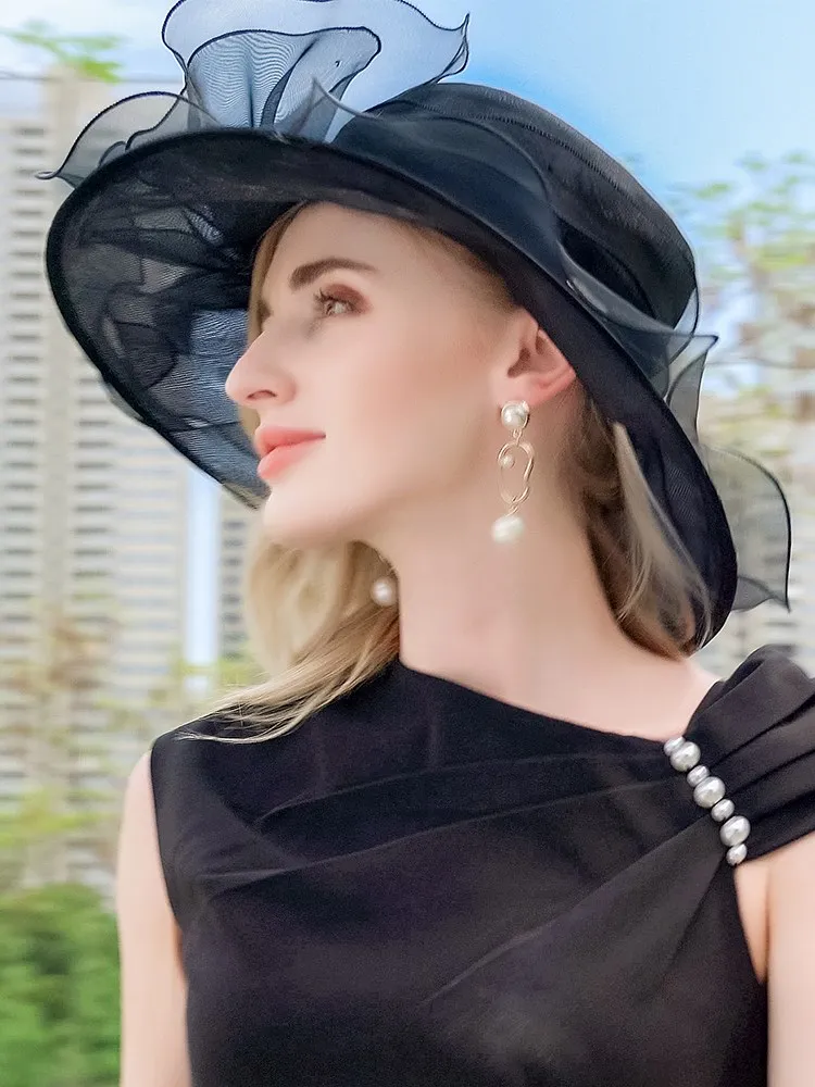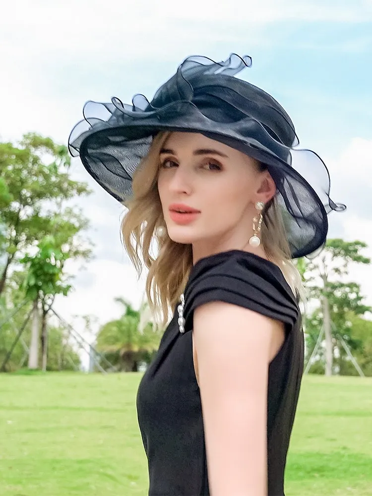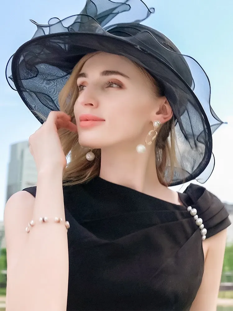 EE 4054 Summer New Organza Hat Beach Tour Bowtie Top Hat