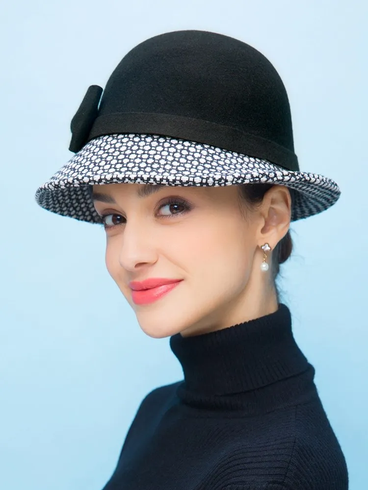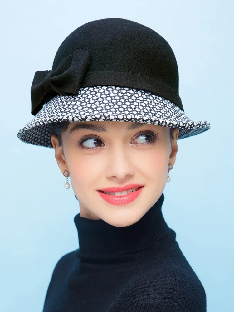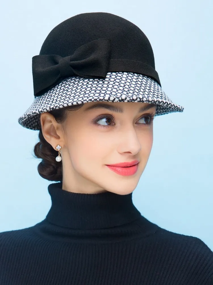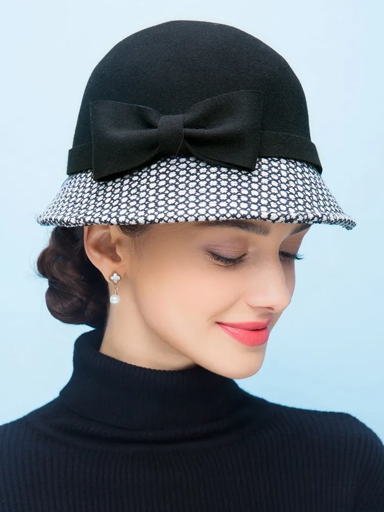 EE 5002 Autumn and winter top hat Fashion women's woolen hat casual woolen equestrian hat British dome winter hat