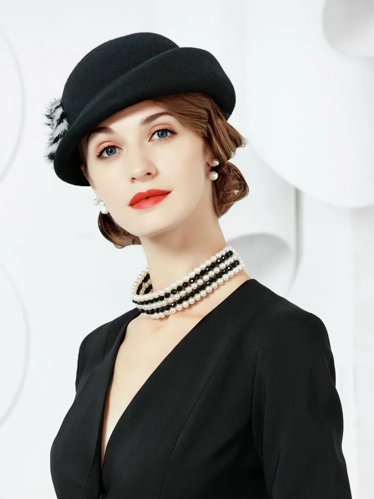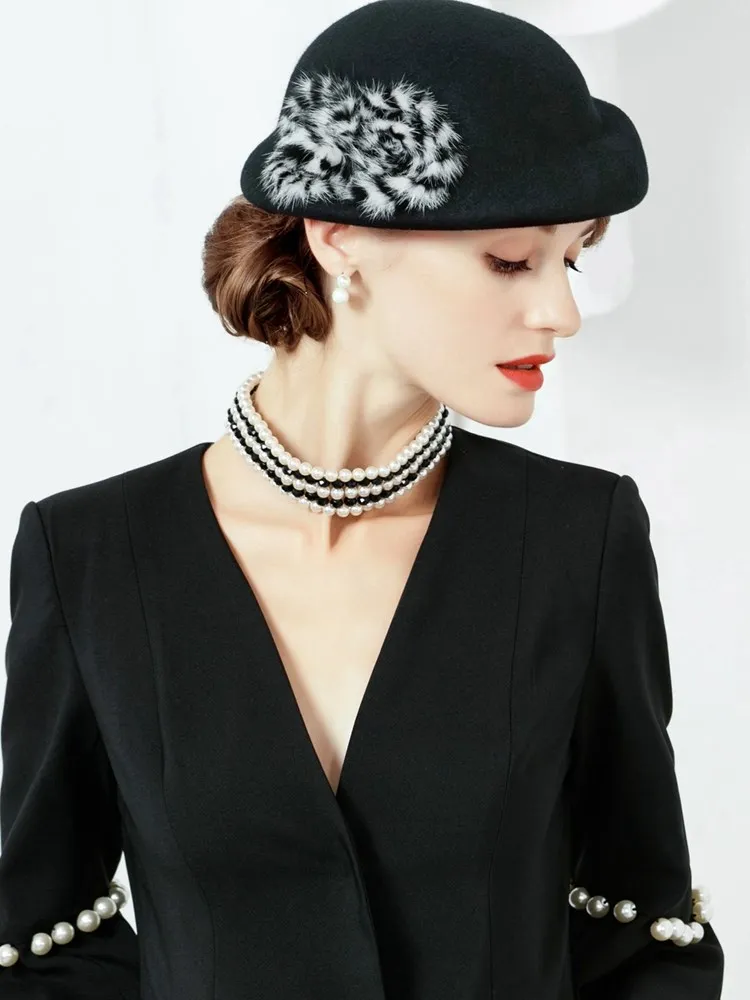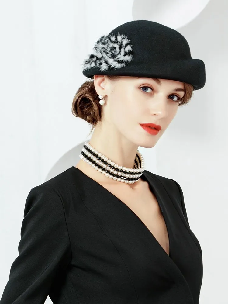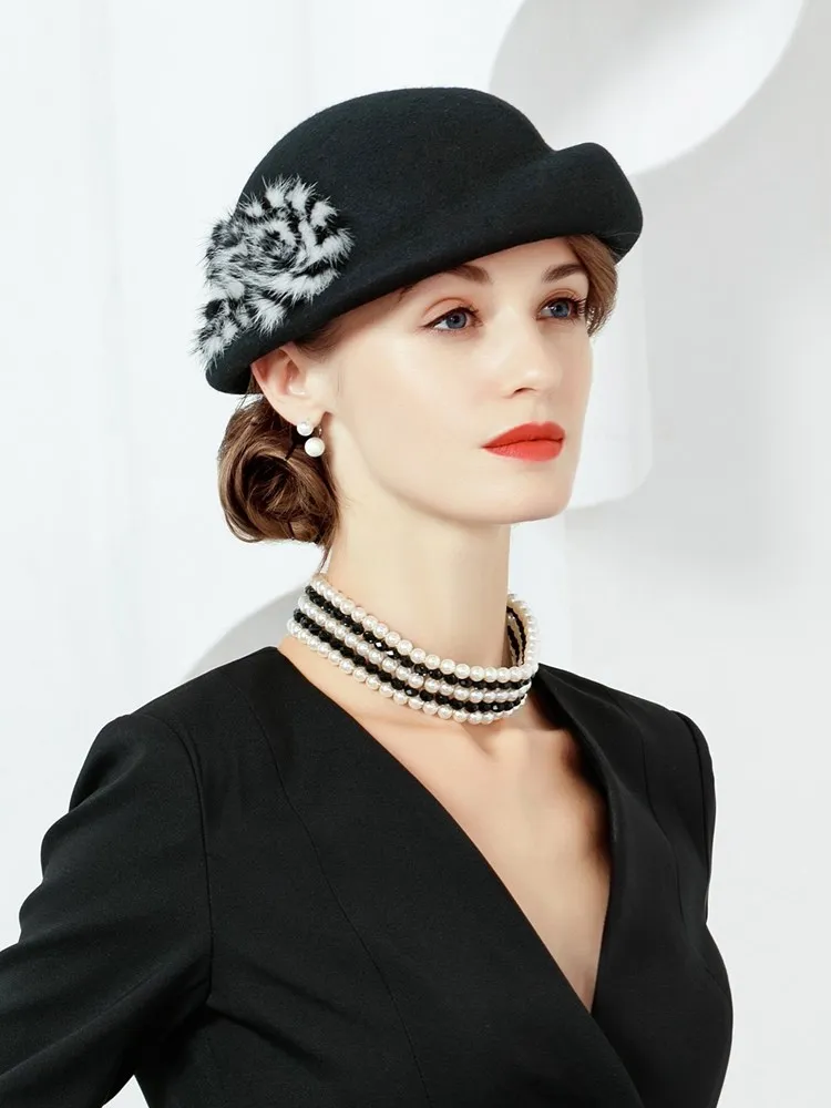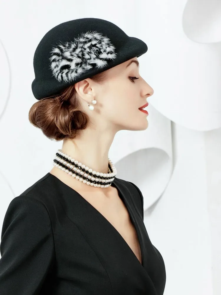 EE 5049 Autumn and winter English wool small top hat Korean version of fashionable woolen beret retro winter hat woman