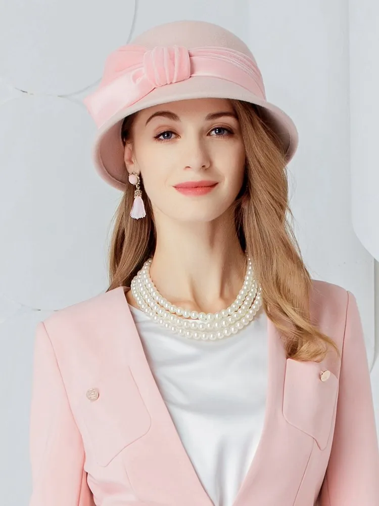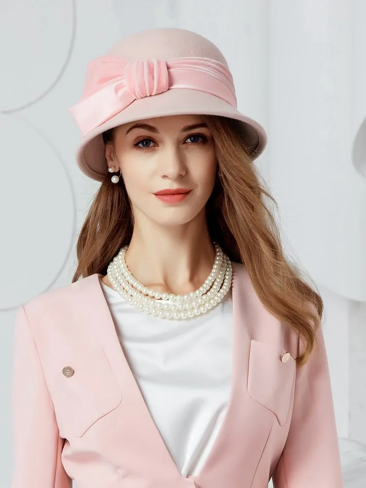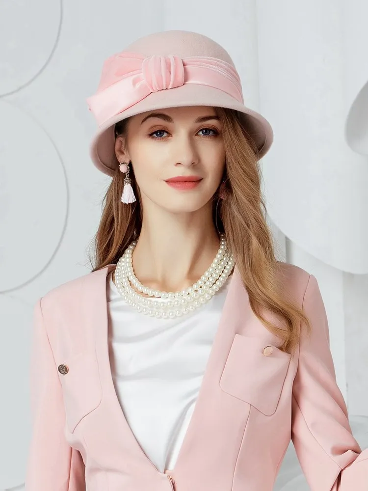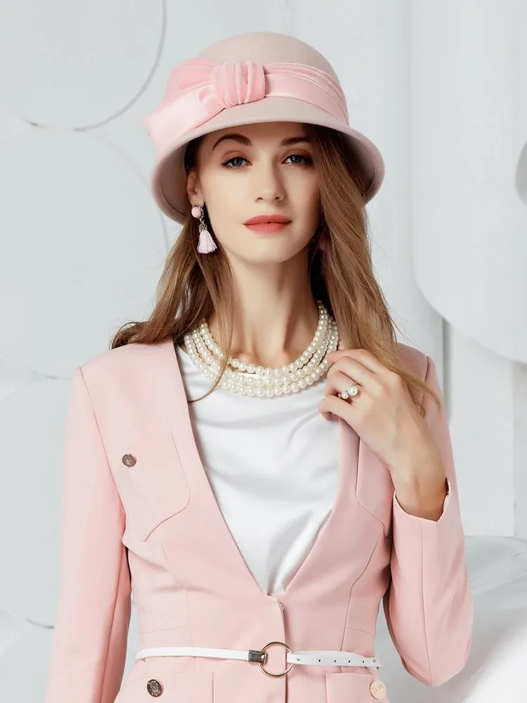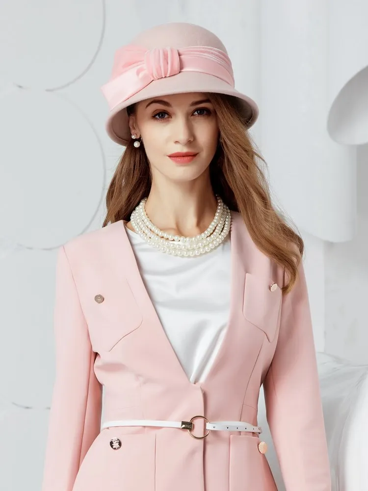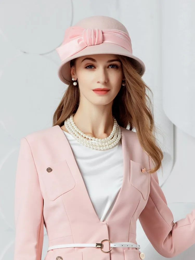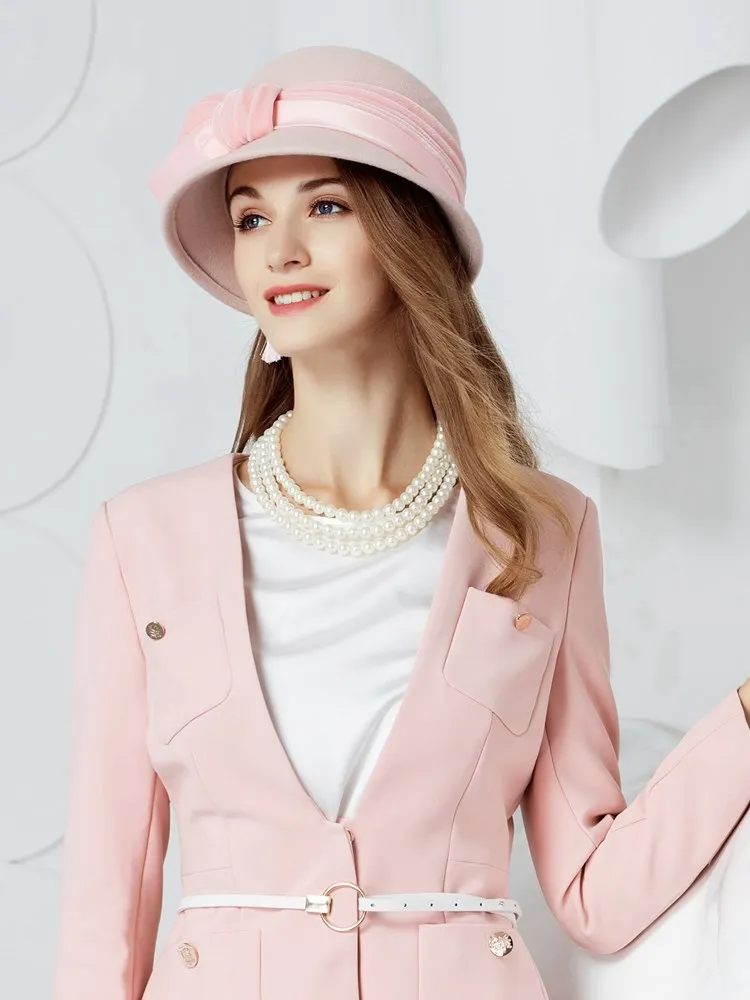 EE 5077 Autumn and winter on the new casual pink hat women's winter women's woolen hat English woolen top hat