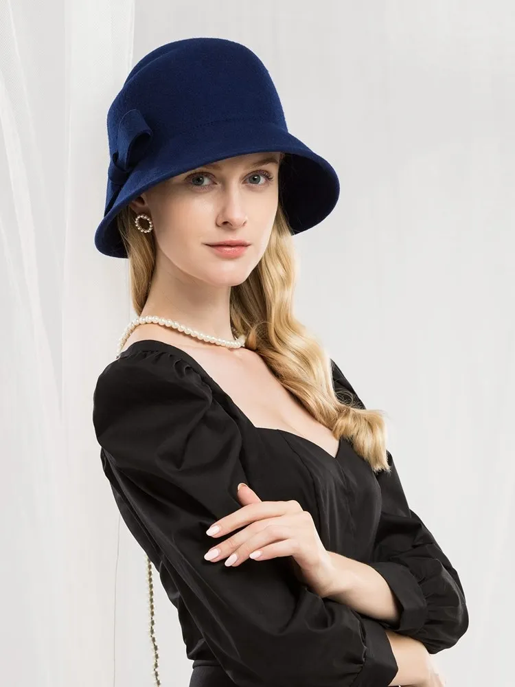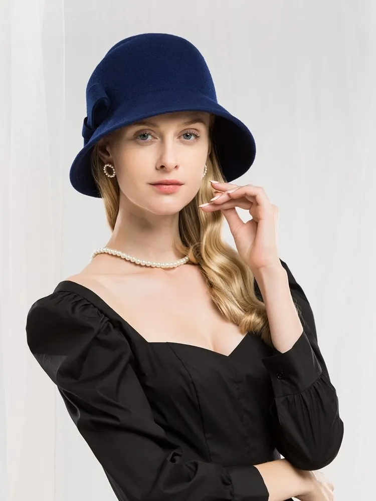 EE 5078 hat women's autumn new spring and autumn woolen hat British vintage elegant winter adult top hat