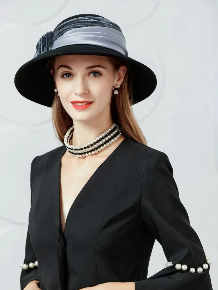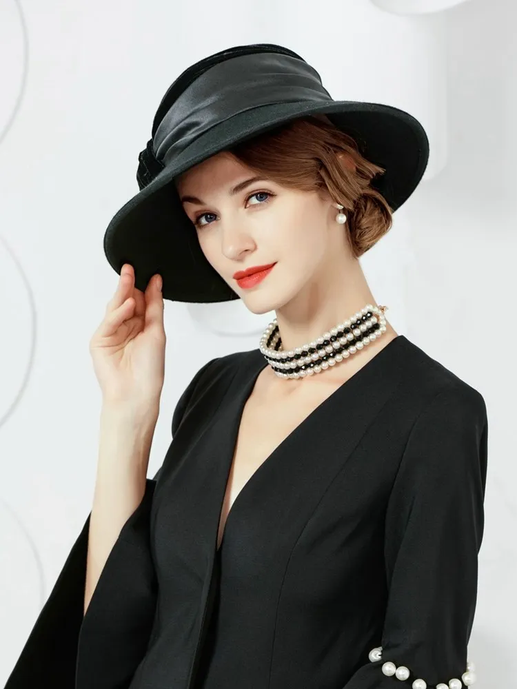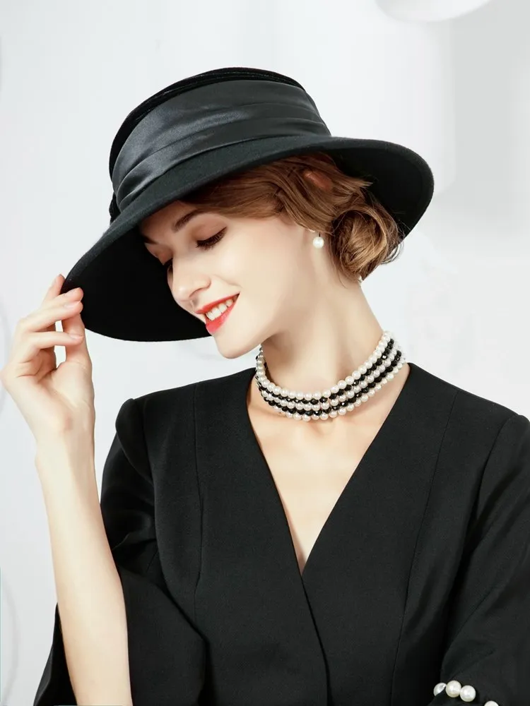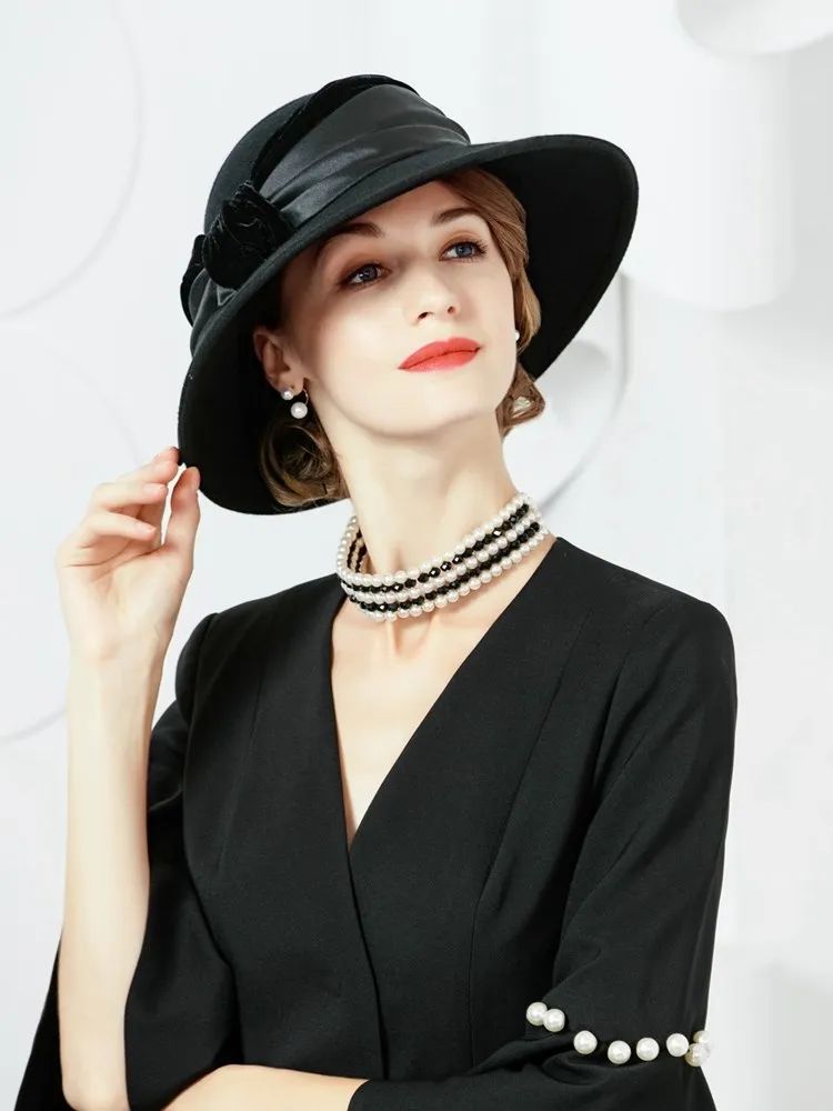 EE 5087 Autumn/Winter British Wool Hat Wide brim Elegant Versatile Wool Hat Autumn/Winter Women's Fashion Korean Edition