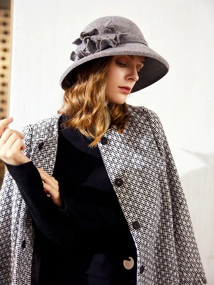 EE 5099 [Wool] Autumn new domed flower woolen hat travel all matching hat female
