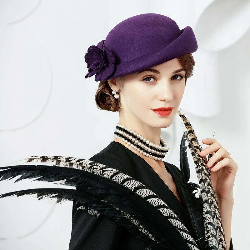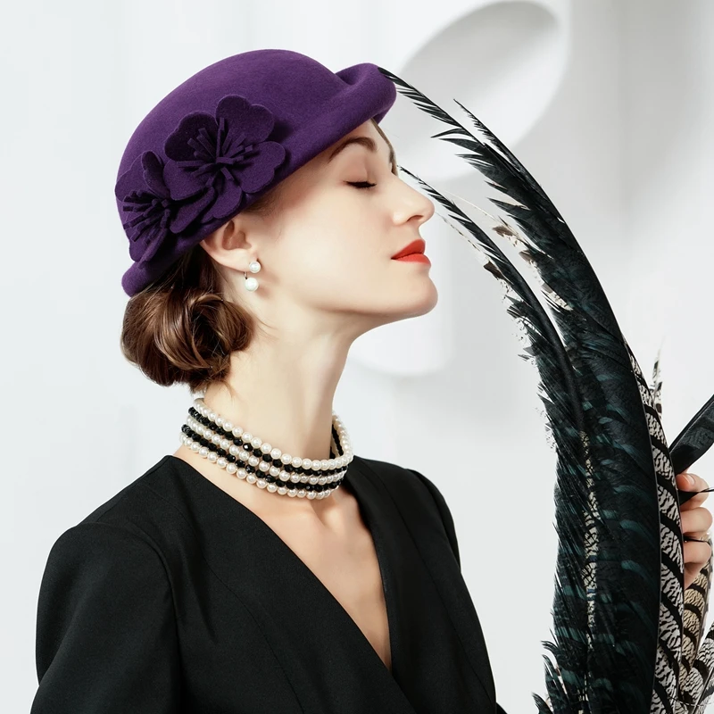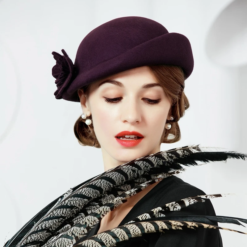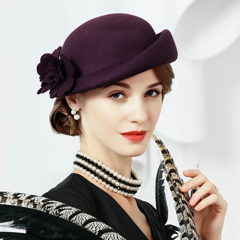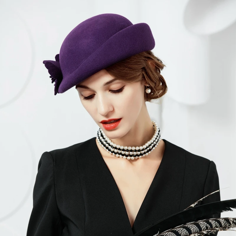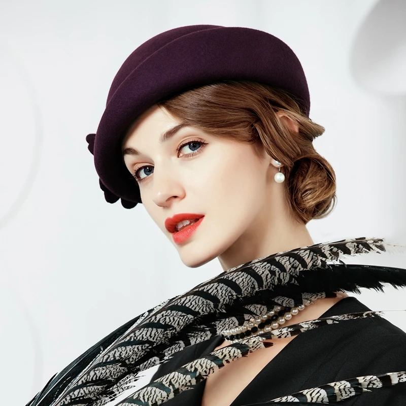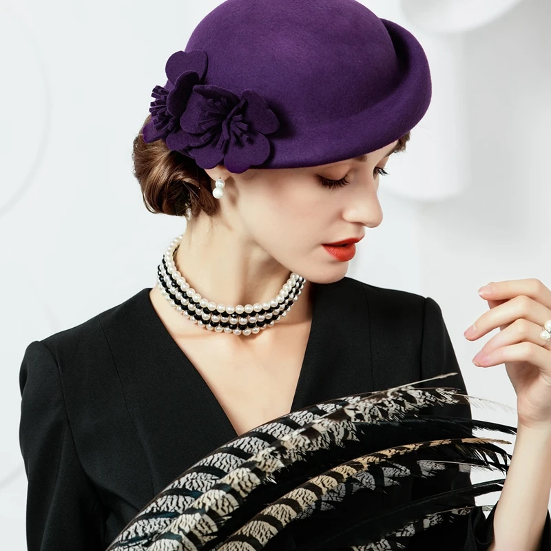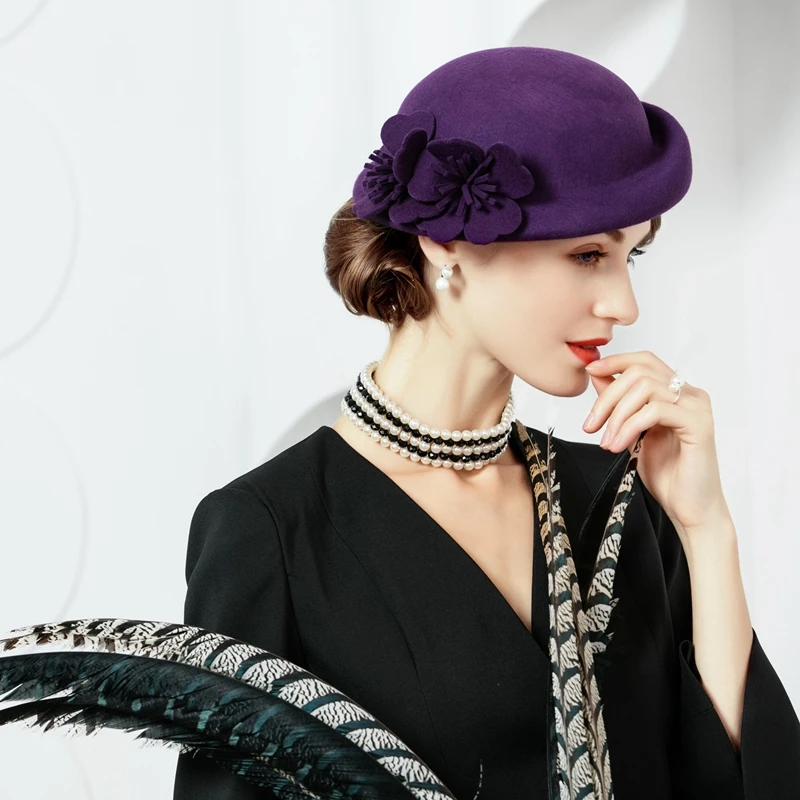 EE 5108 Autumn and Winter/Vintage/100% Australian Wool Felt/Delicate/Floral/Ladies Tea Party/Party/Beret/Wool Felt Hat