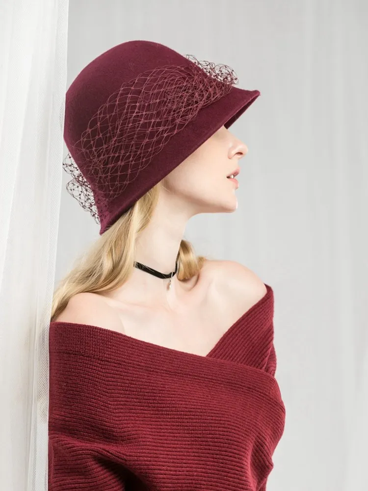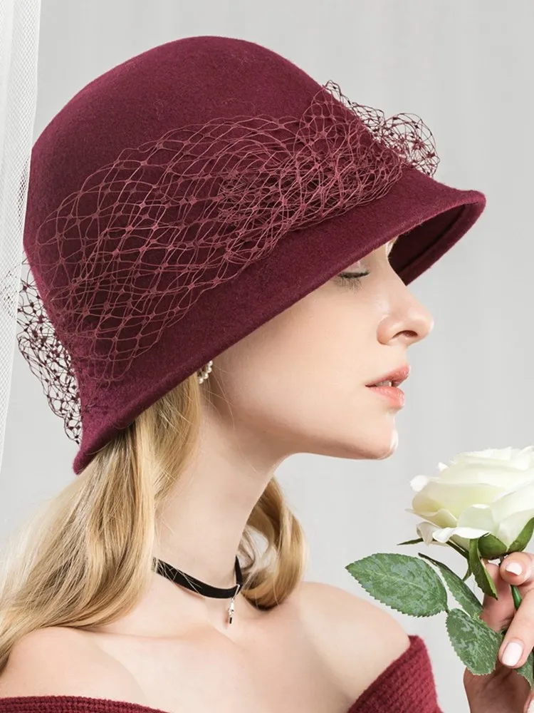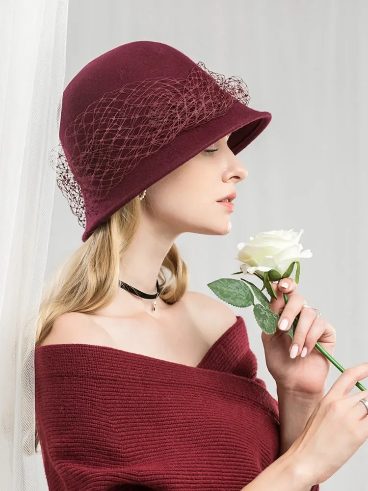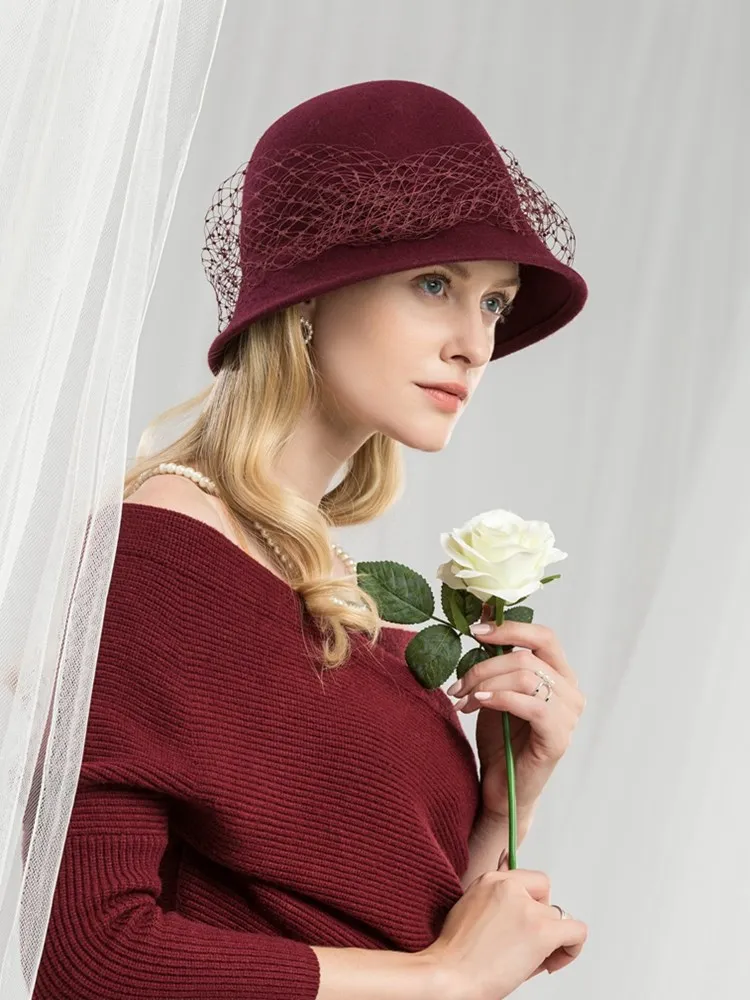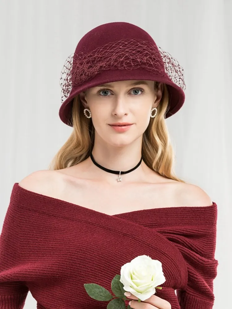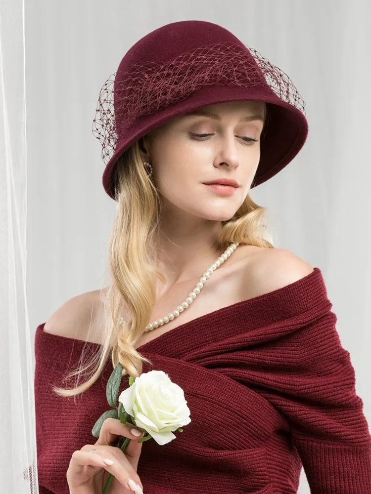 EE 5114 new winter hat for women British woolen gauze net celebrity banquet adult top hat
