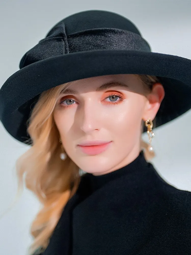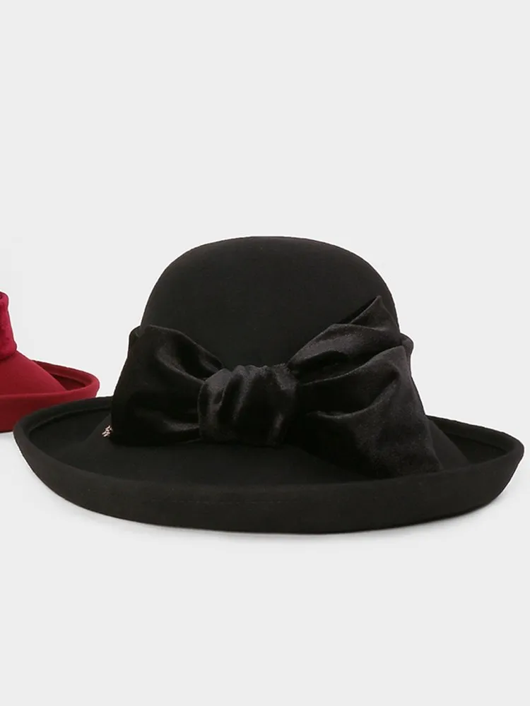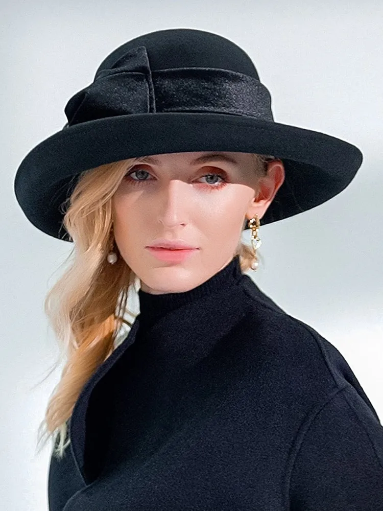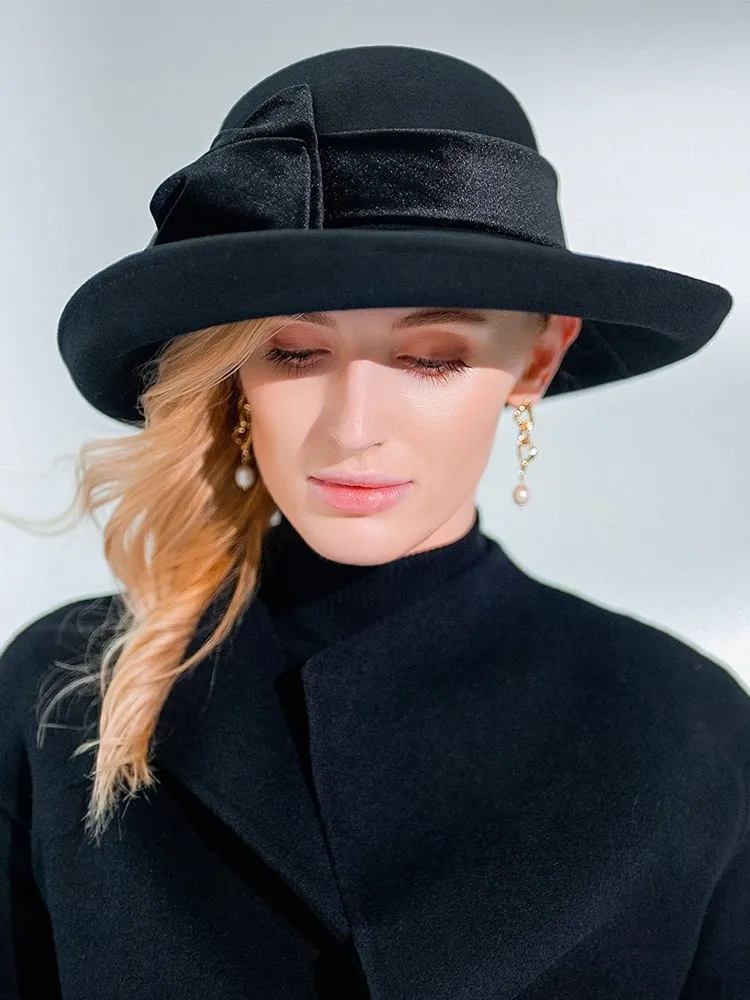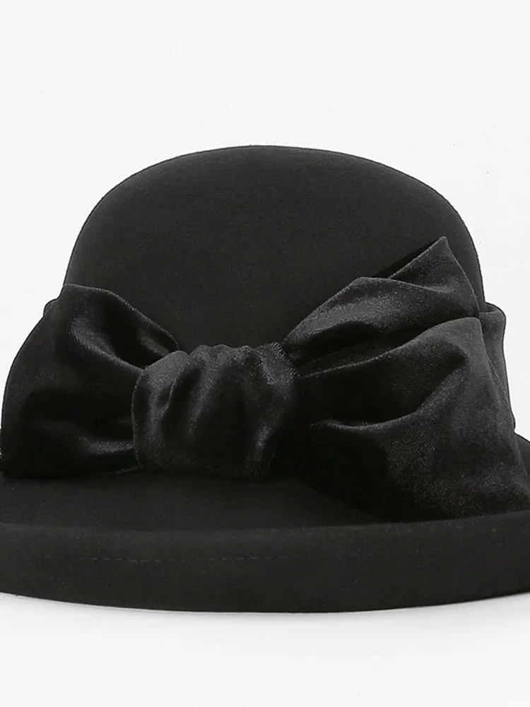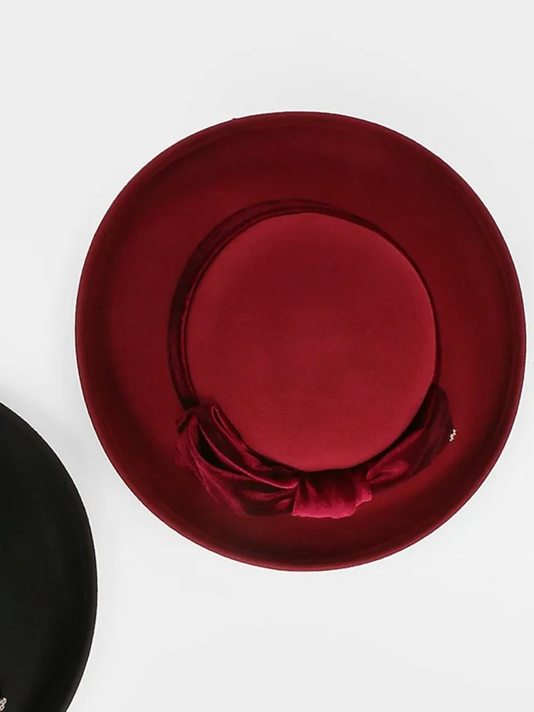 EE 5124 Autumn and Winter New Bow Elegant Wool Top Hat British Versatile Wool Women's Top Hat