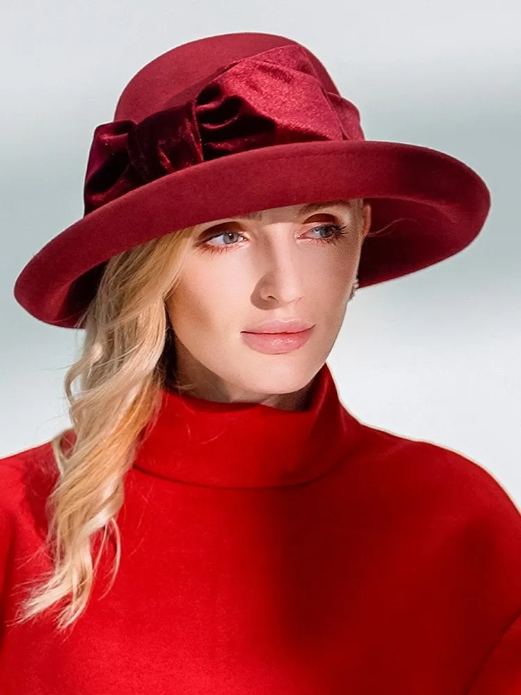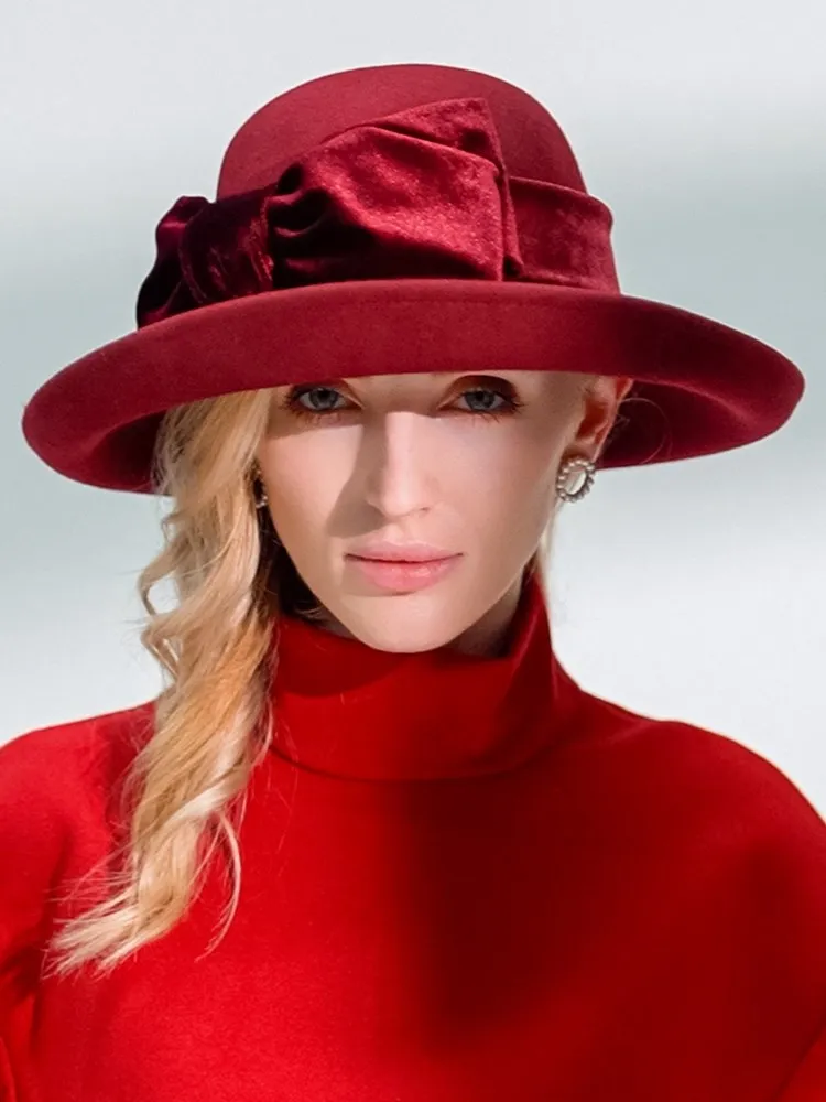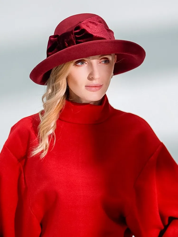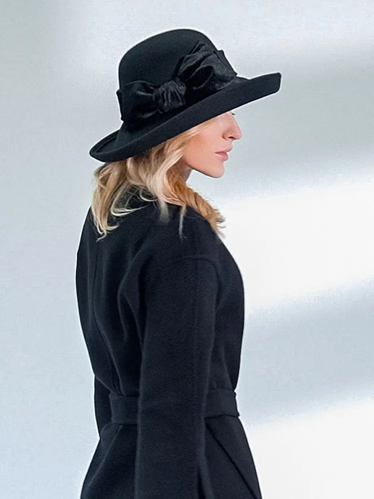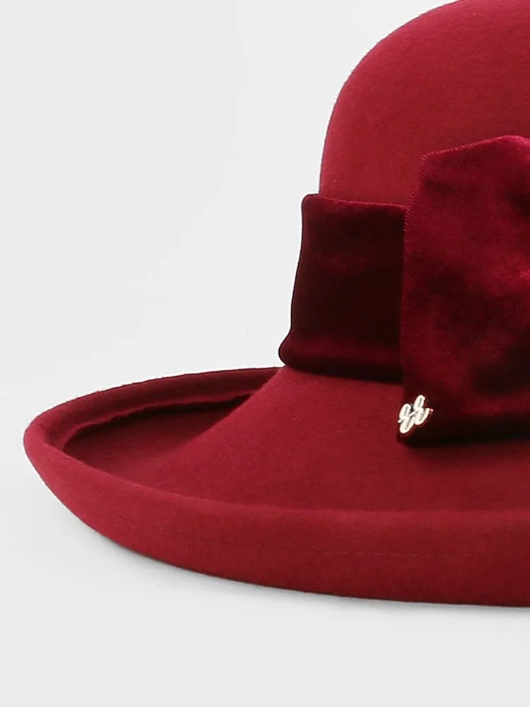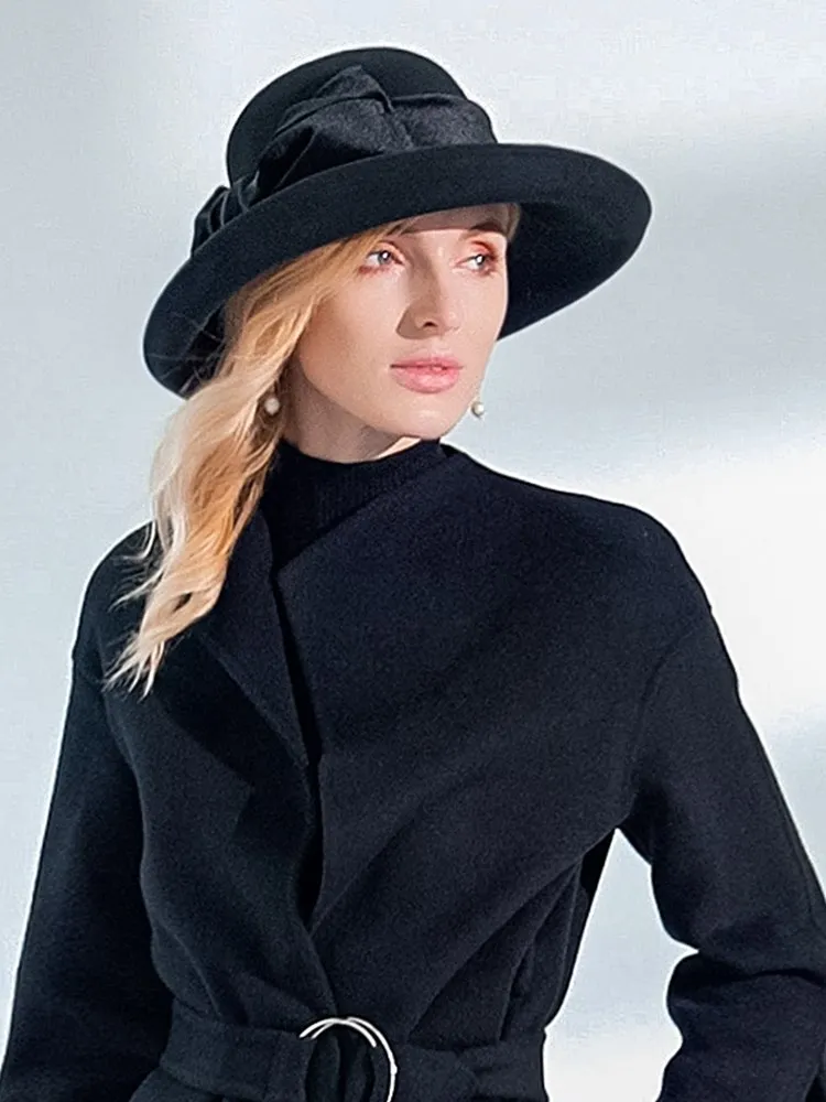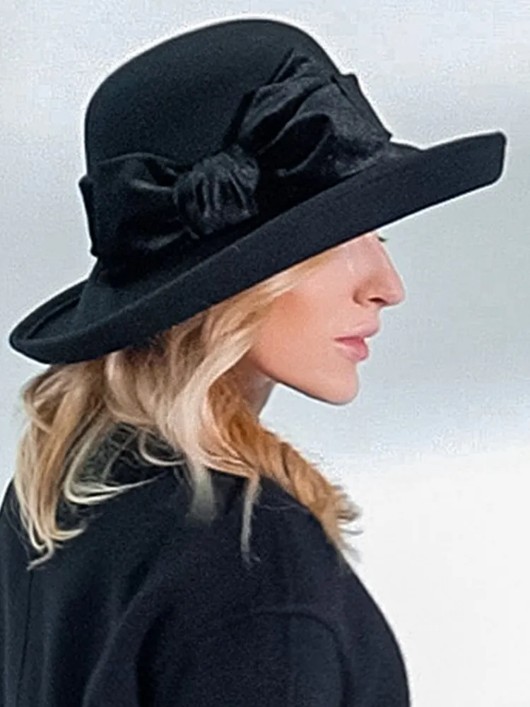 EE 5124 Autumn and Winter New Bow Elegant Wool Top Hat British Versatile Wool Women's Top Hat