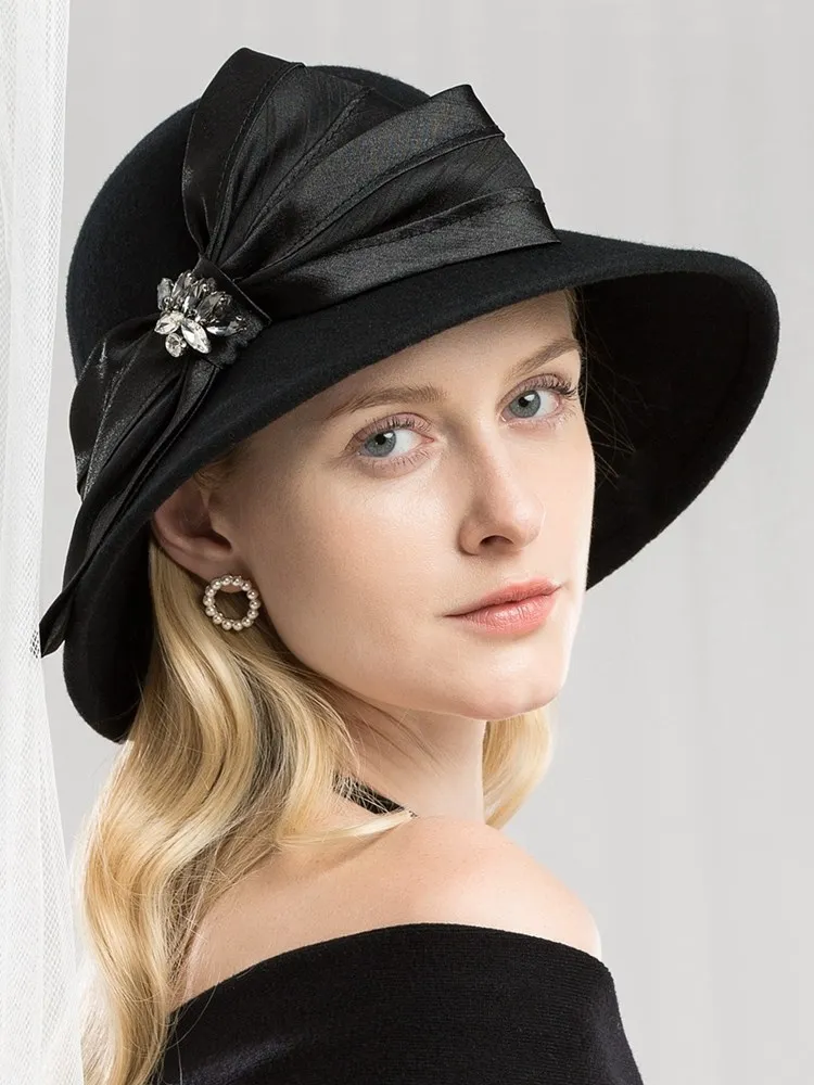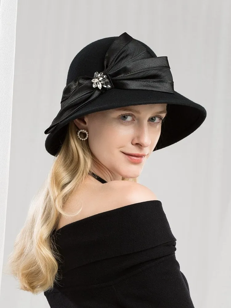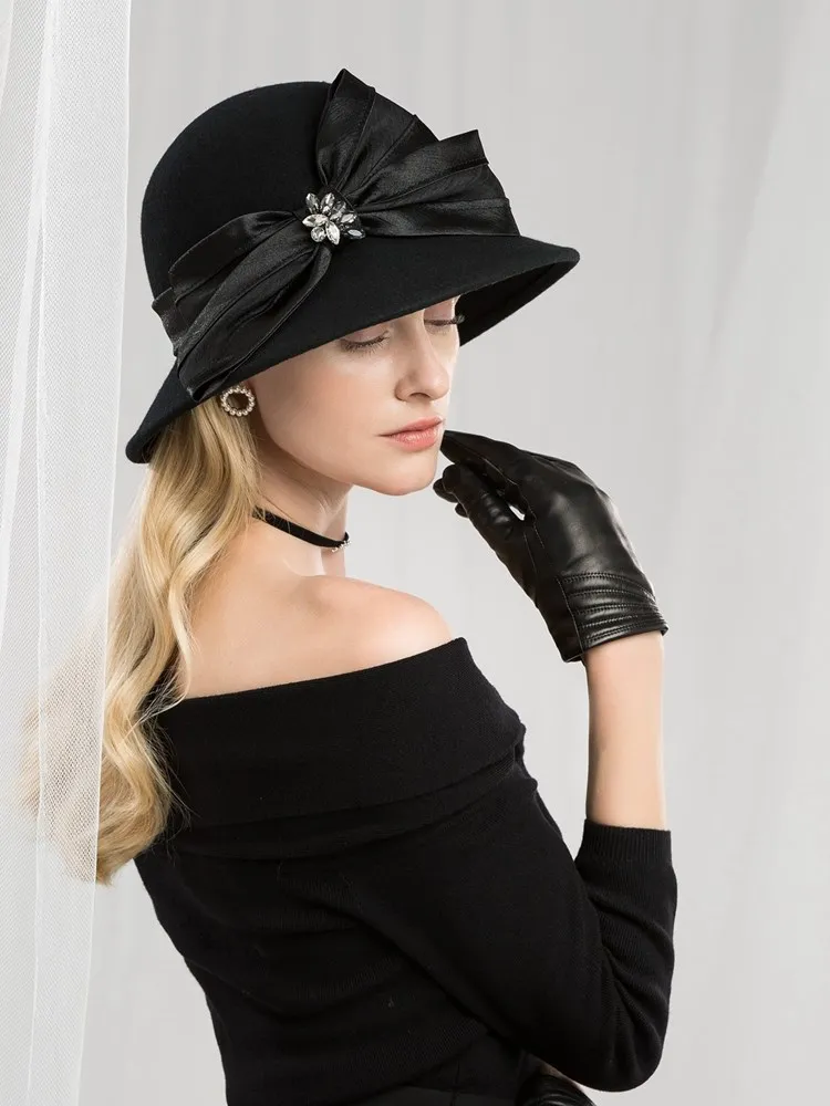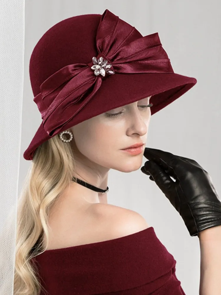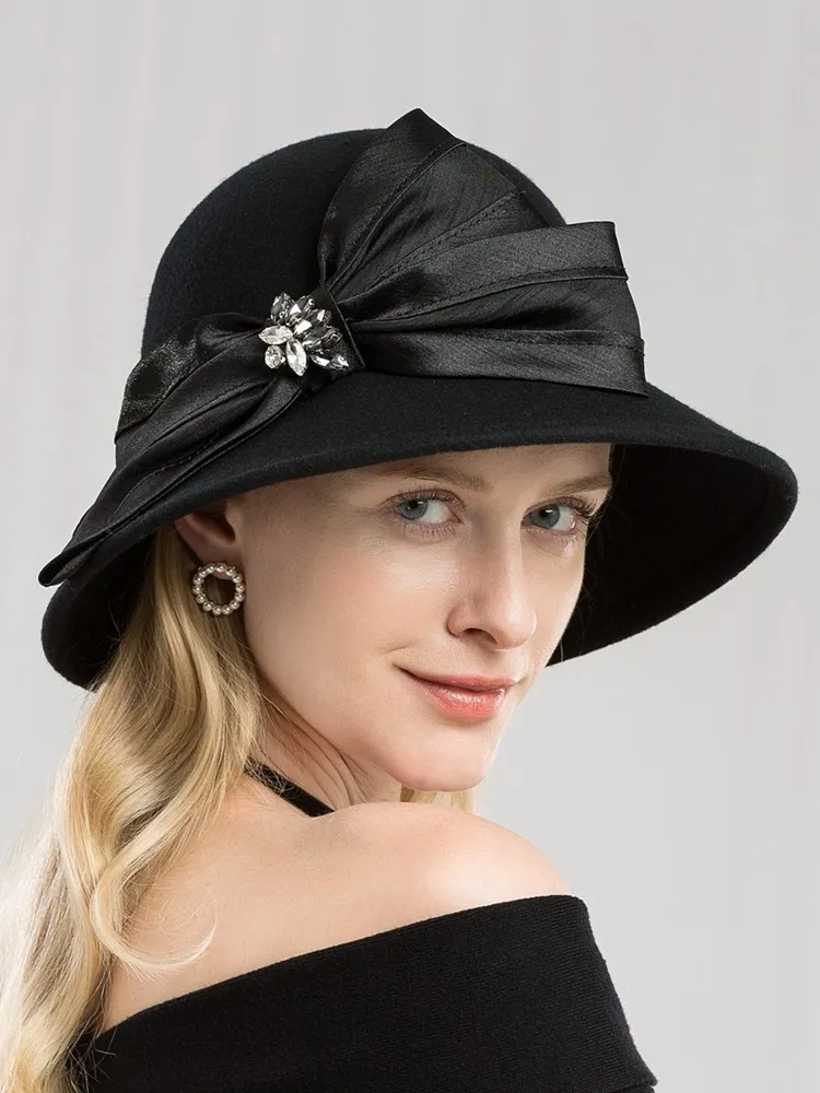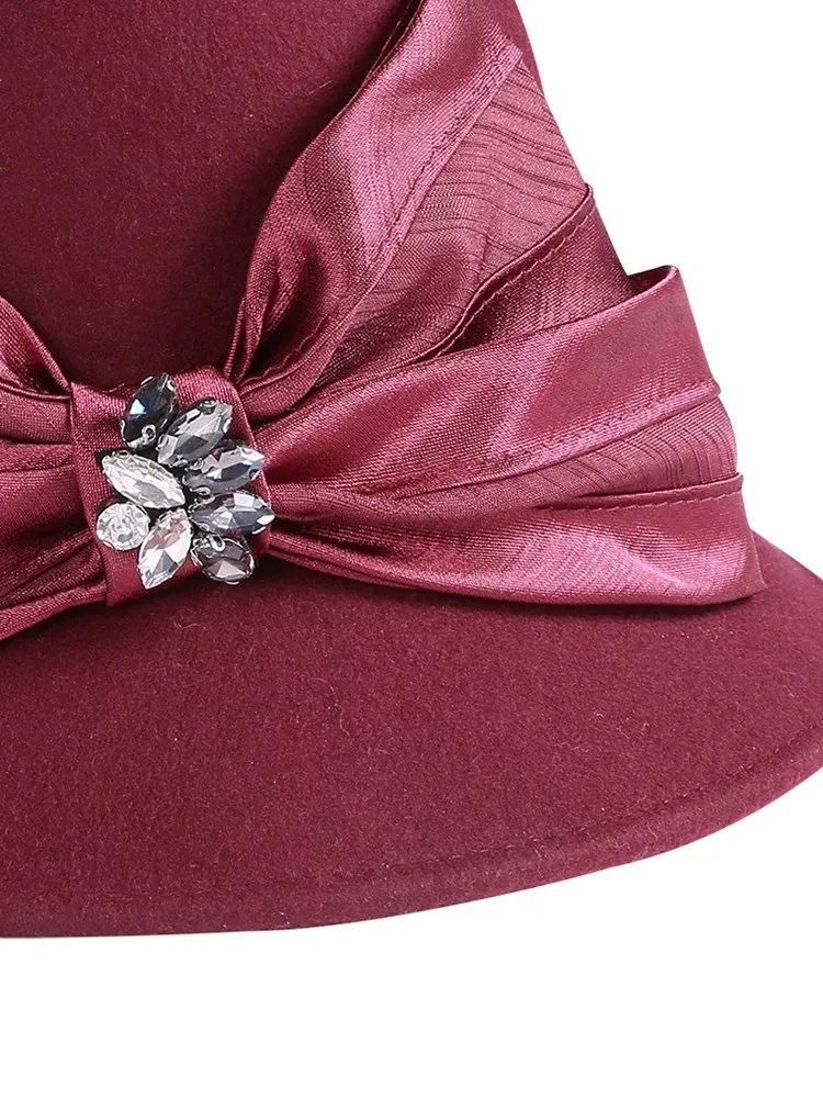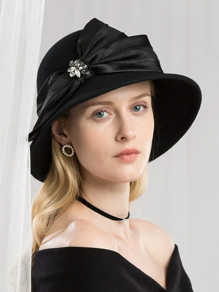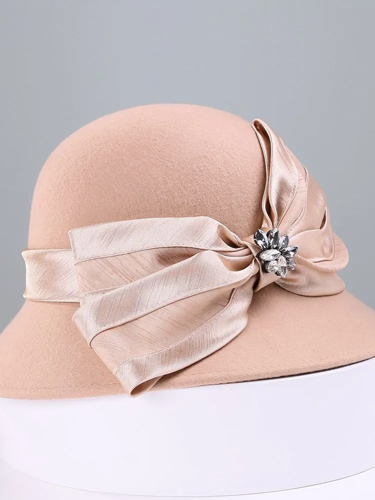EE 5167 bowknot adornment new winter diamond dome aristocratic temperament eaves wool hat in the wind