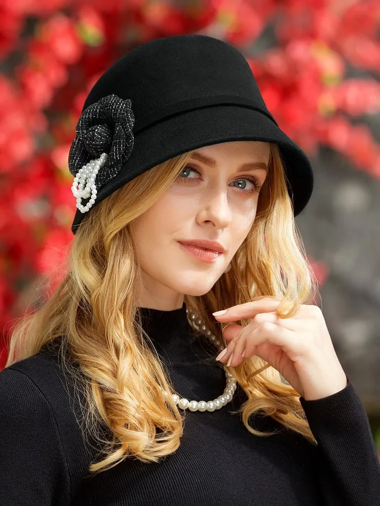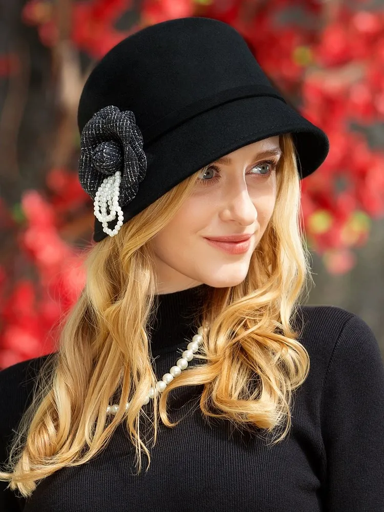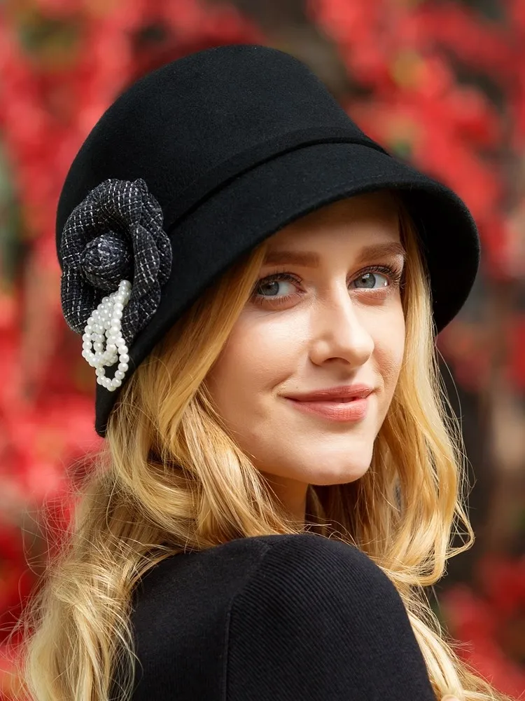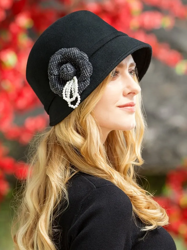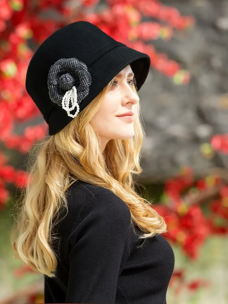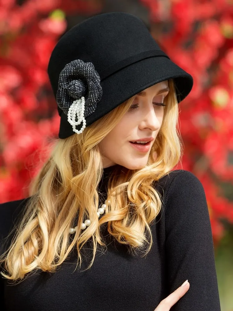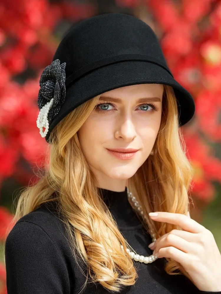 EE 5178 hat Women's winter new wool top hat sweet and cute winter warm ladies winter black hat