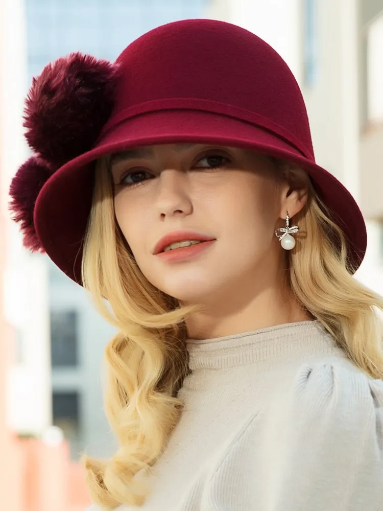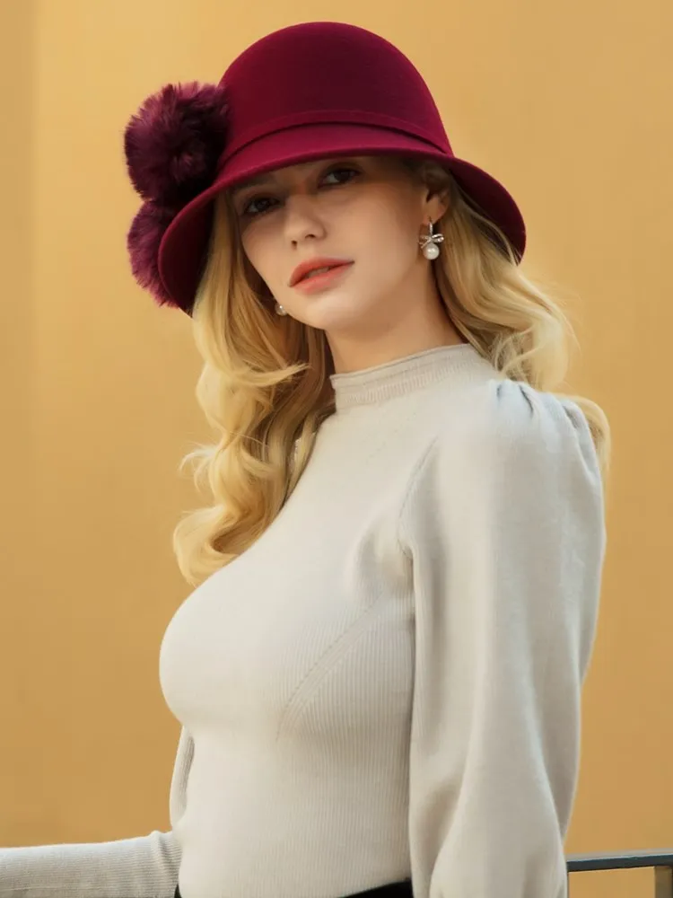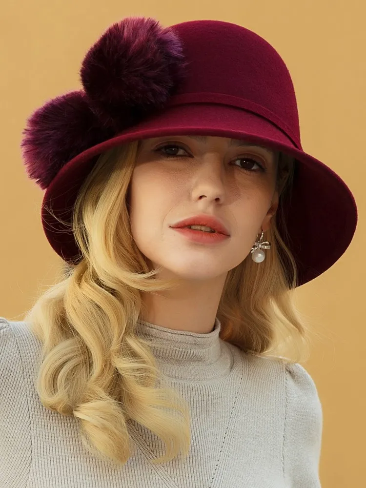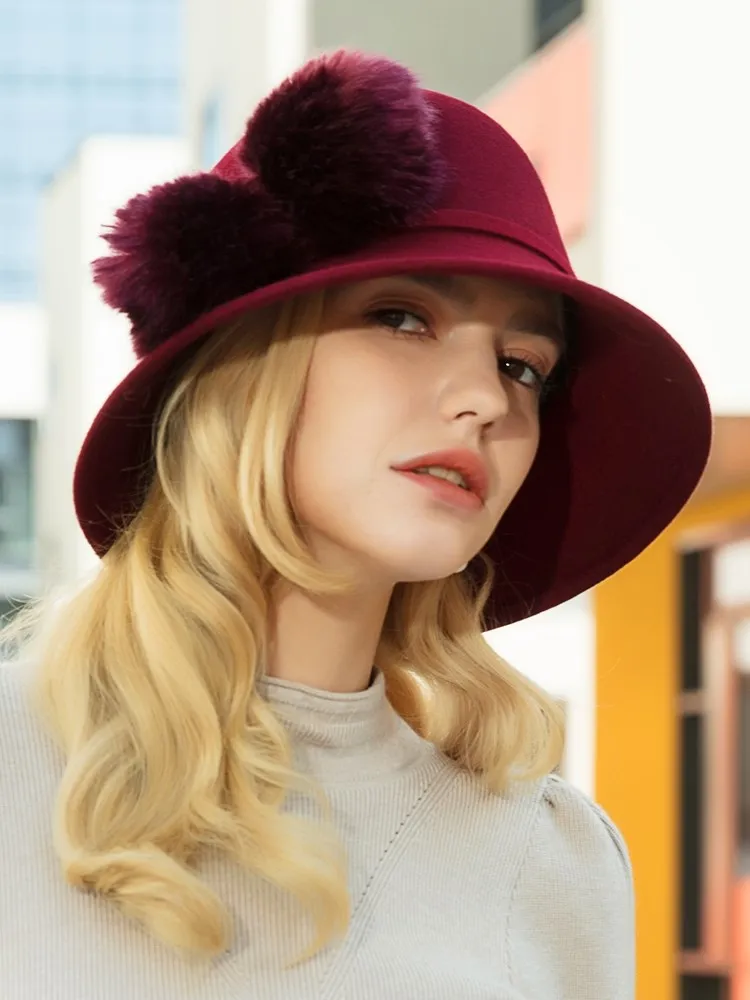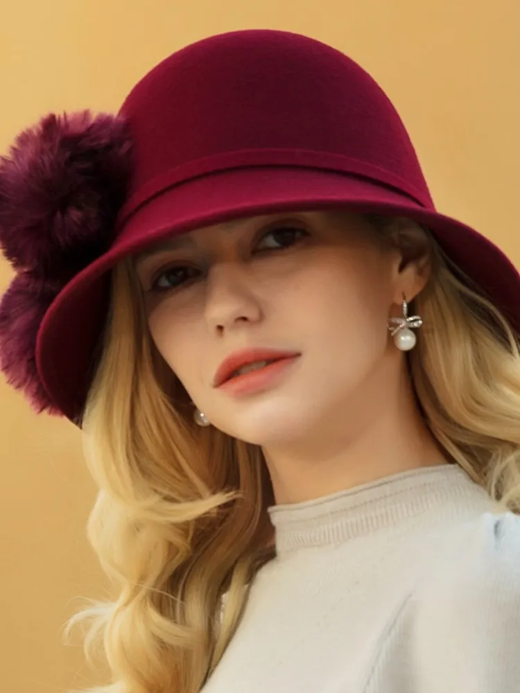 EE 5185 Autumn/Winter Wool Hat Adjustable Elegant Fisherman Hat Versatile Winter Warm Red Nizi Hat Female