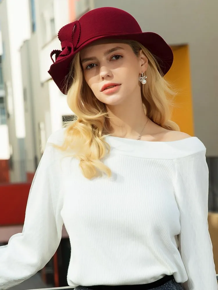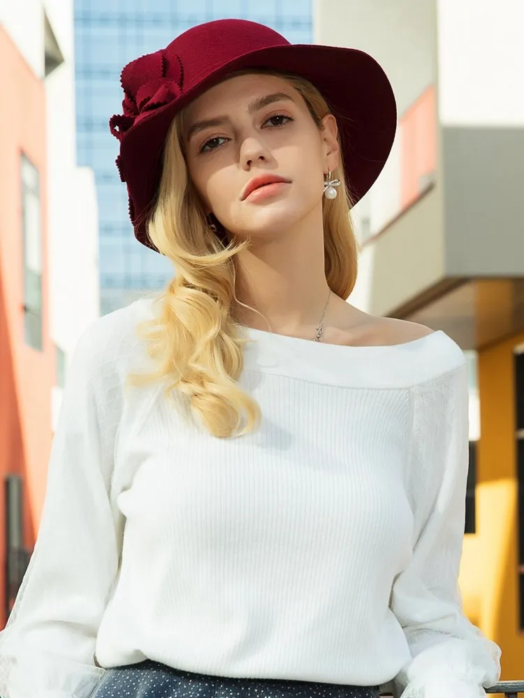 EE 5198 wool retro top hat British girl winter new British woolen hat elegant with all European and American hat women