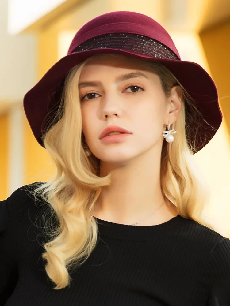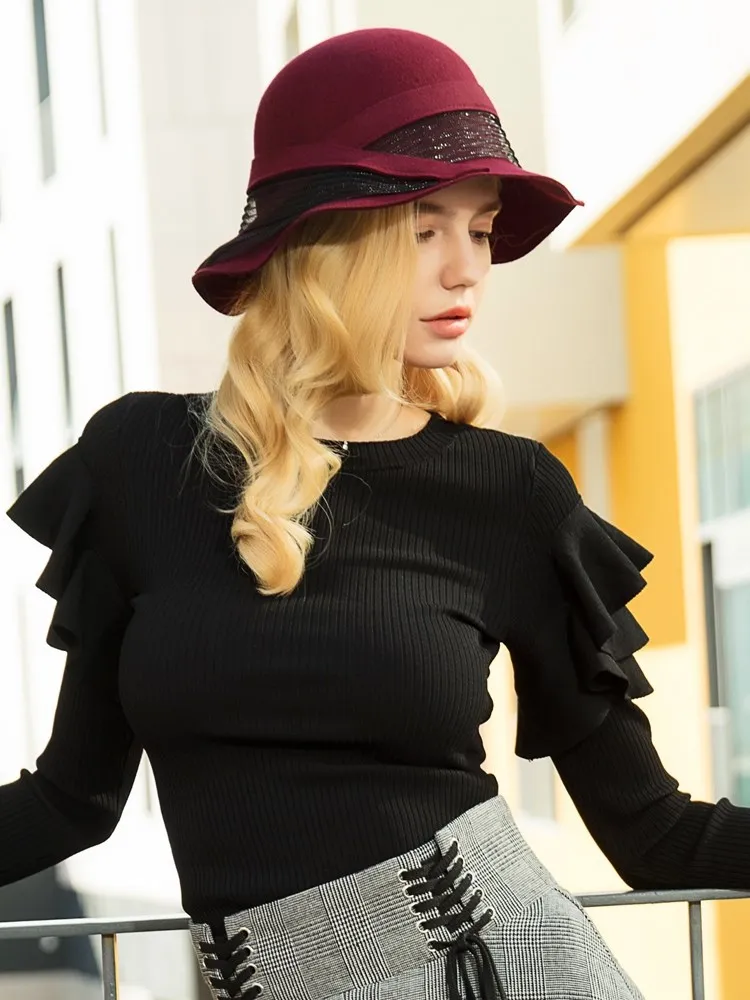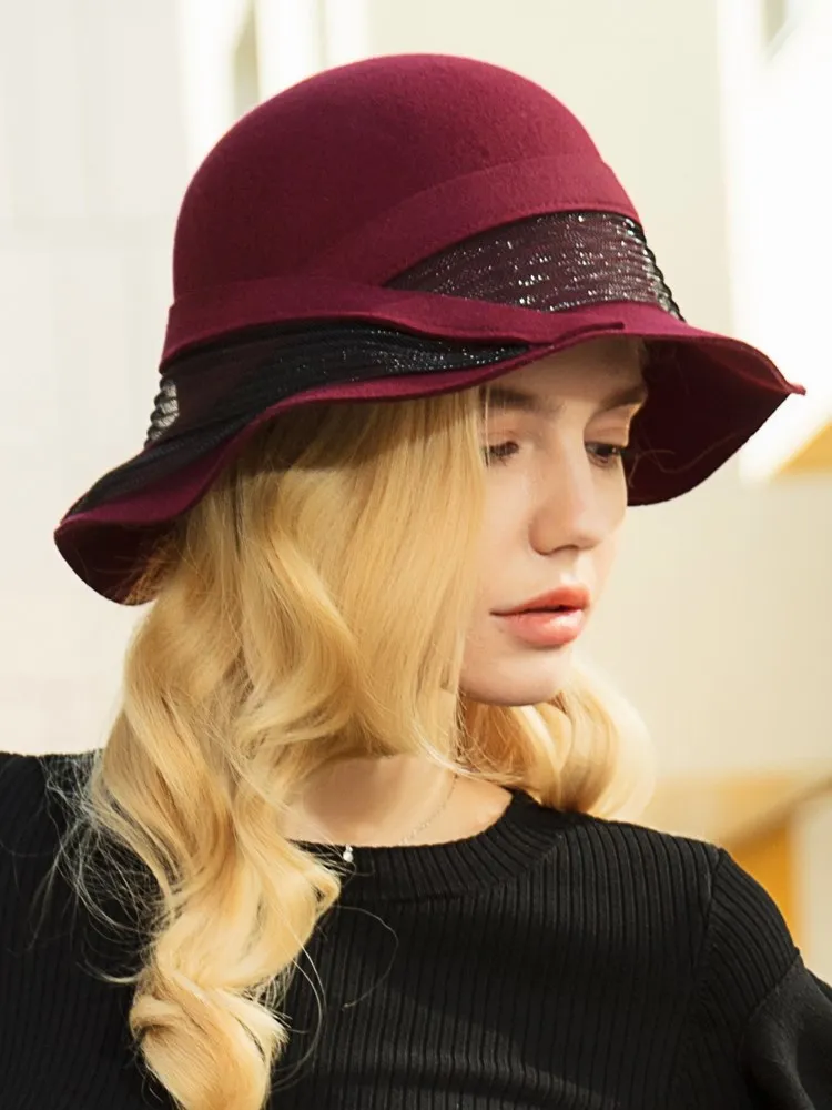 EE 5207 autumn and winter new English wool top hat elegant everything wavy eaves warm hat woman
