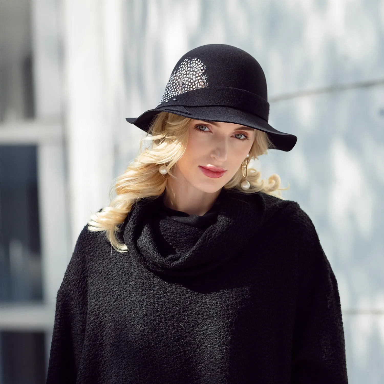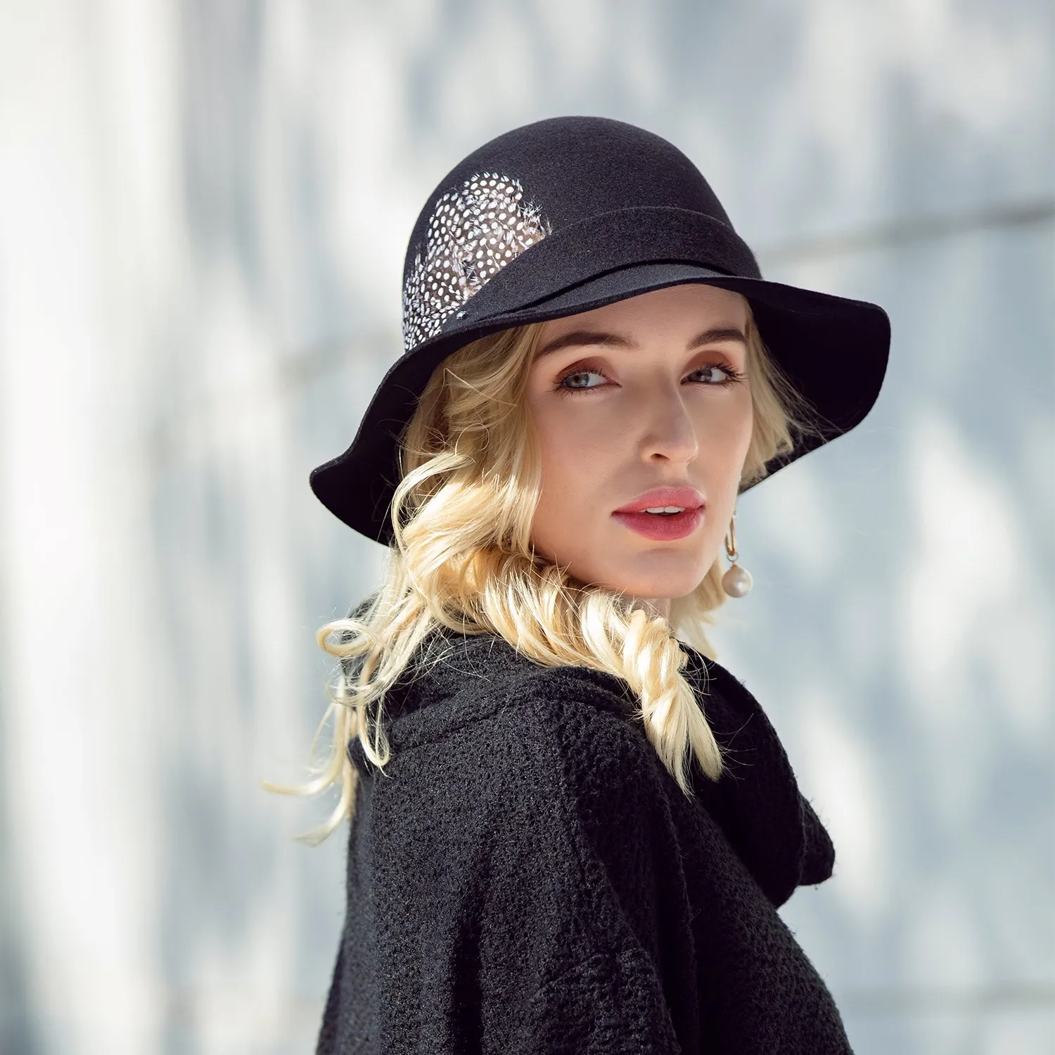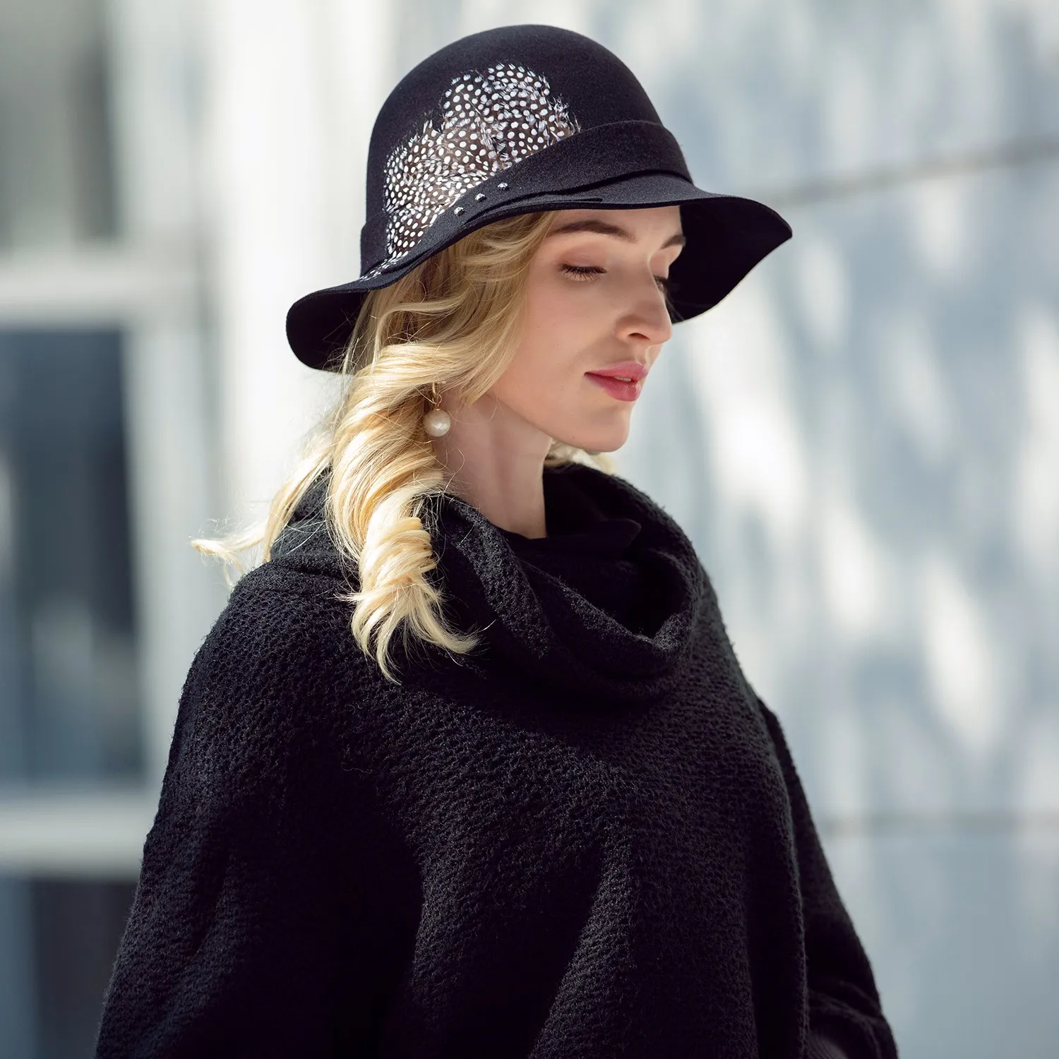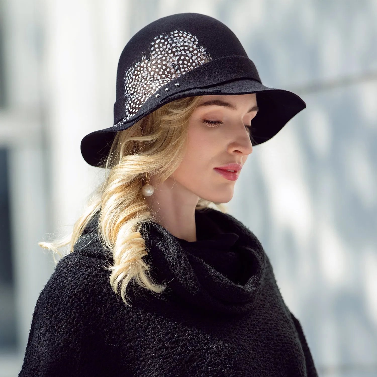 EE 5211 new winter wool hat joker hat English elegant female feather hat