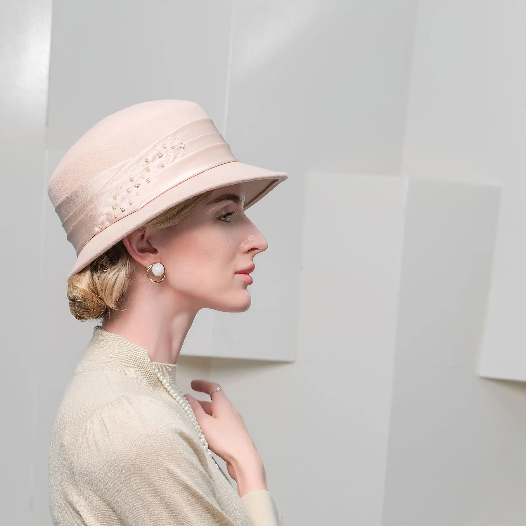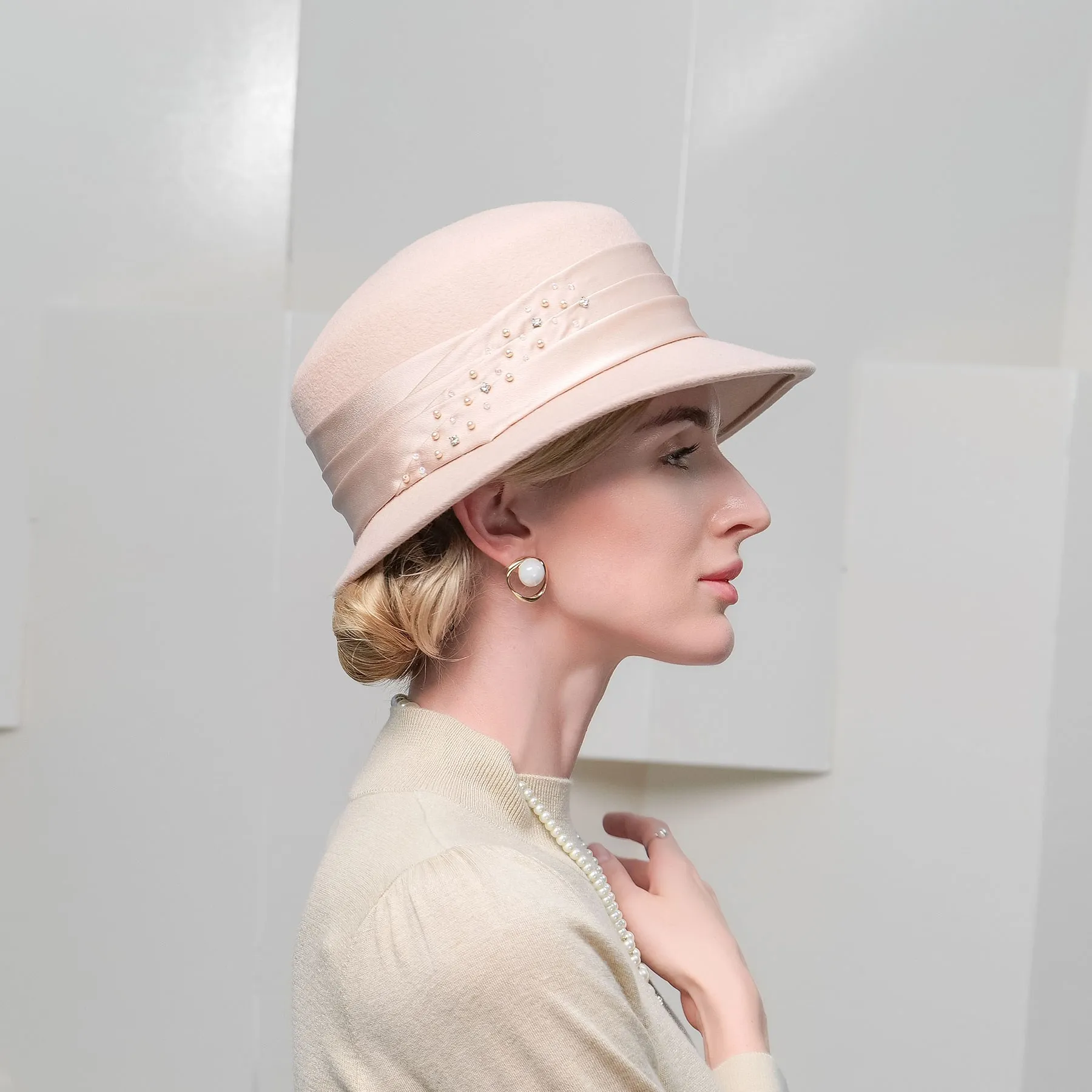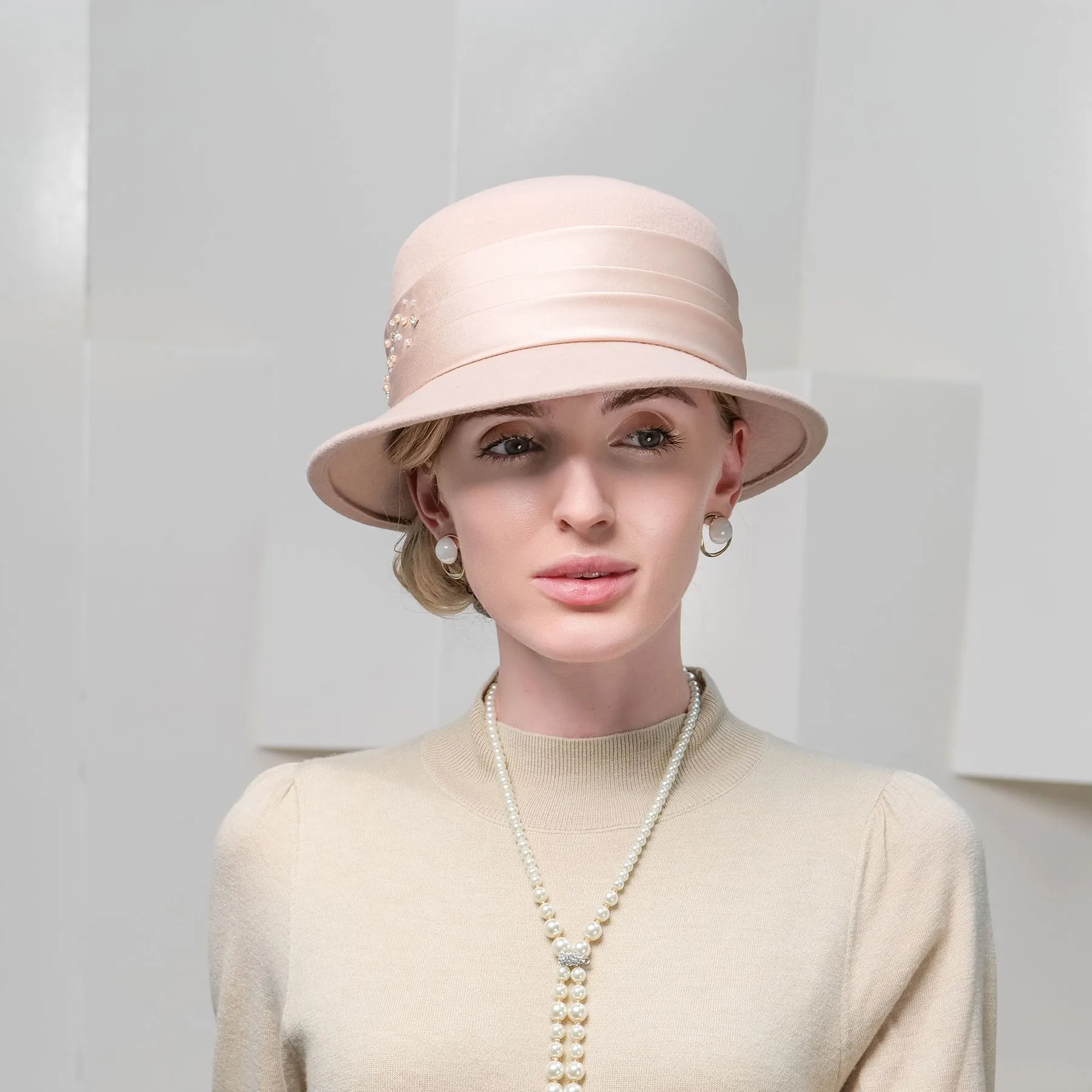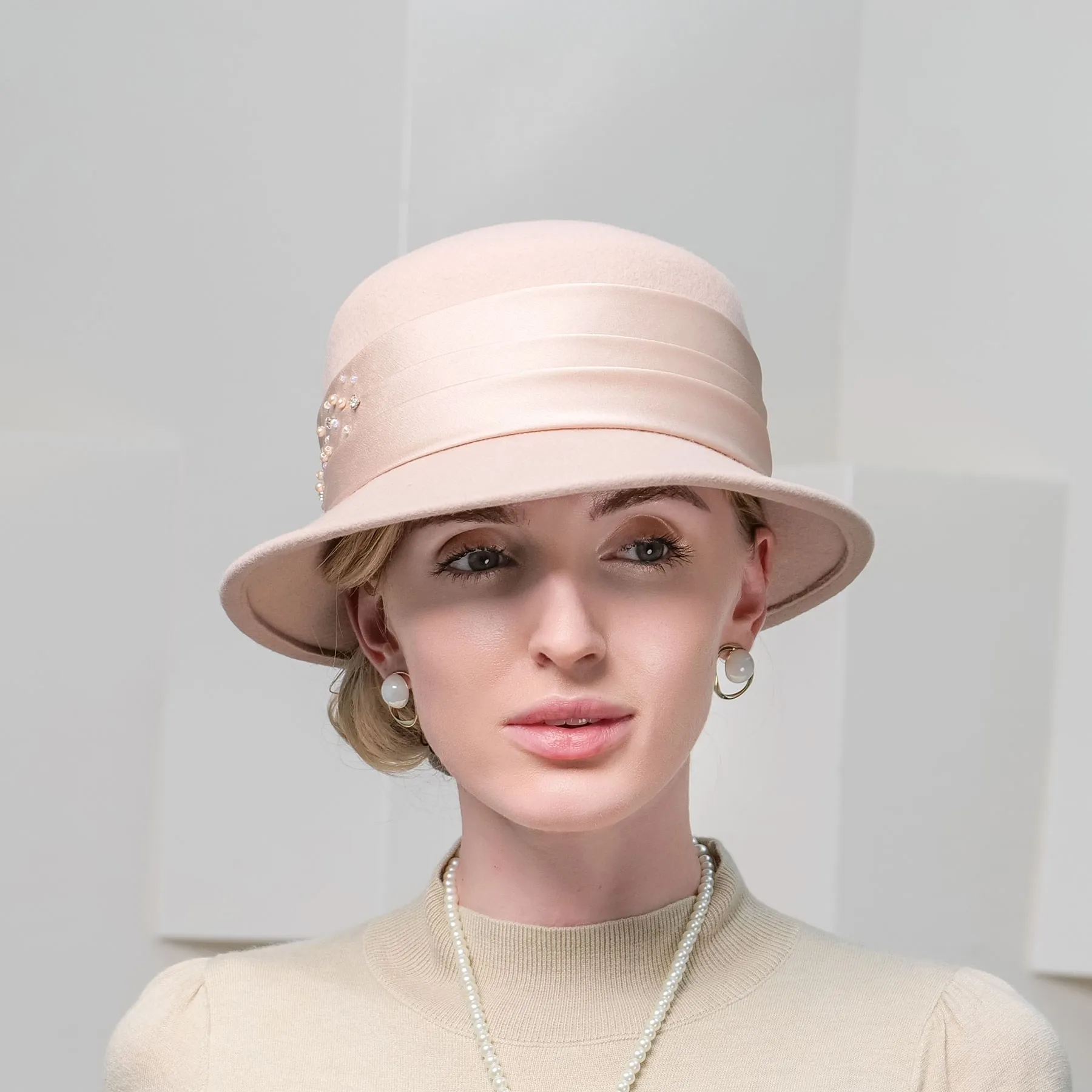 EE 5213 new winter elegant pearl decoration banquet pure wool hat felt trilby female hat in winter