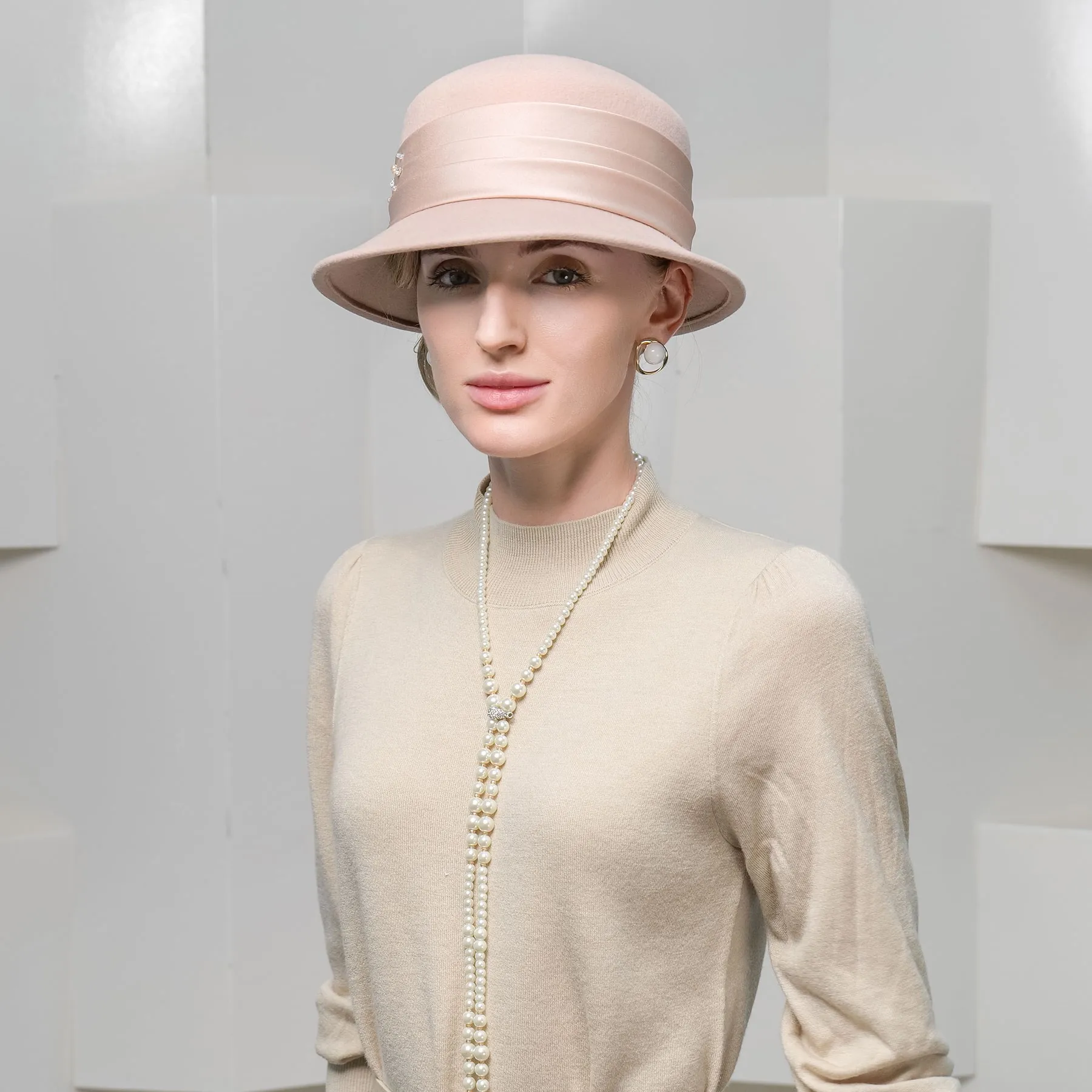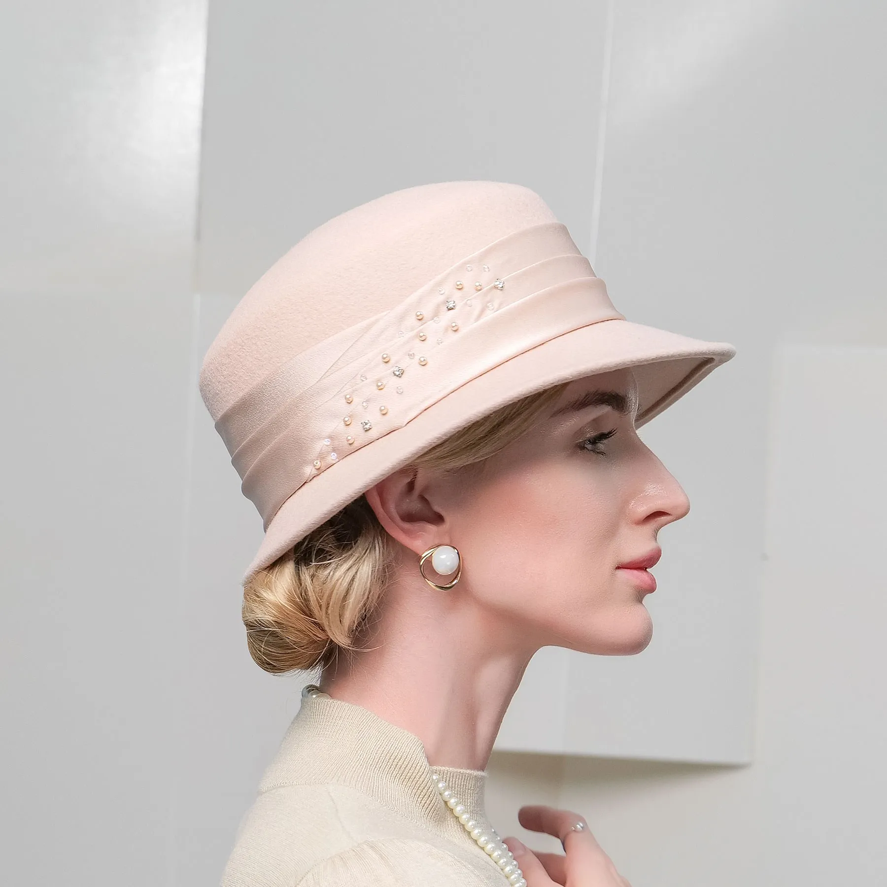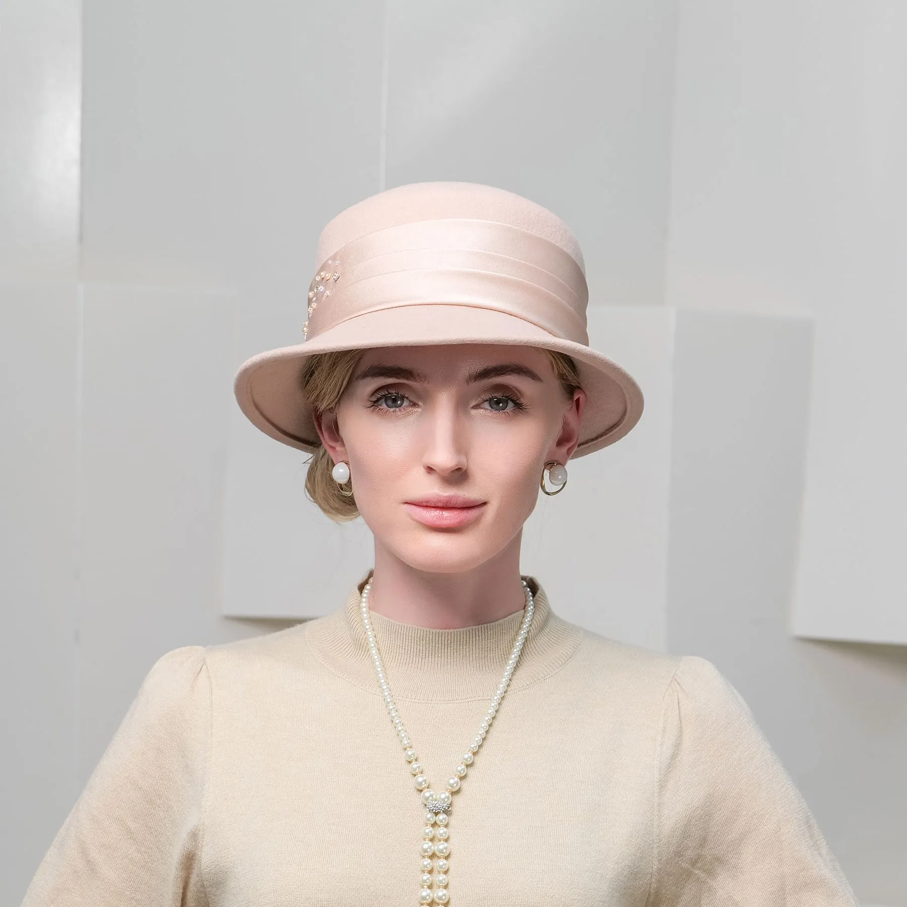 EE 5213 new winter elegant pearl decoration banquet pure wool hat felt trilby female hat in winter