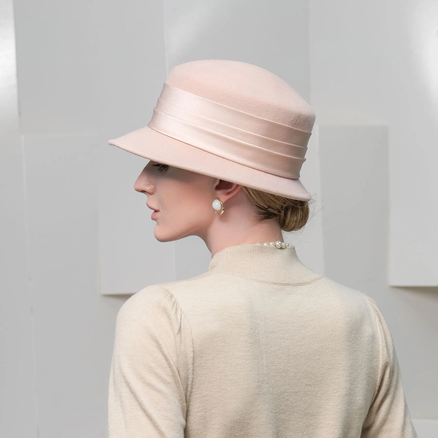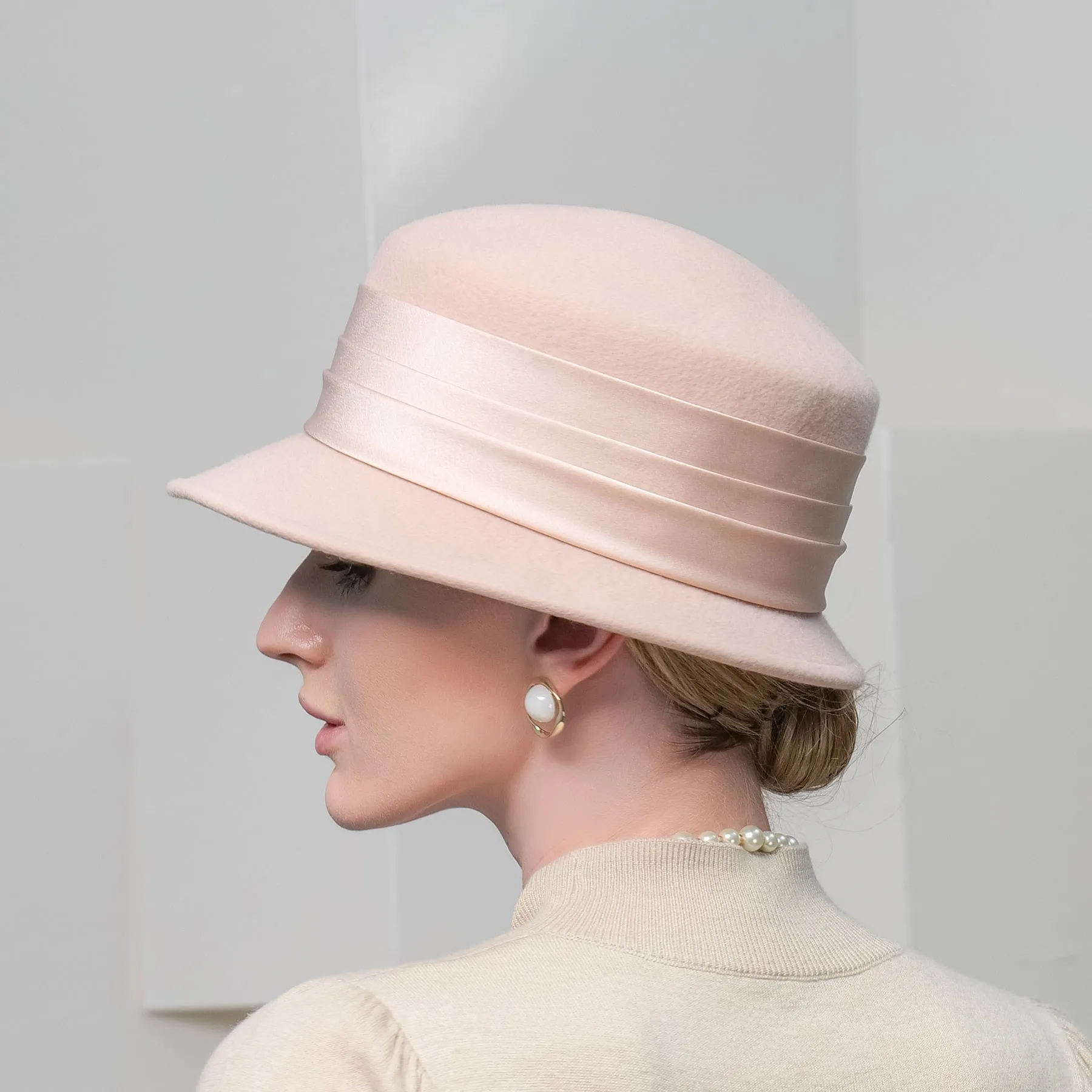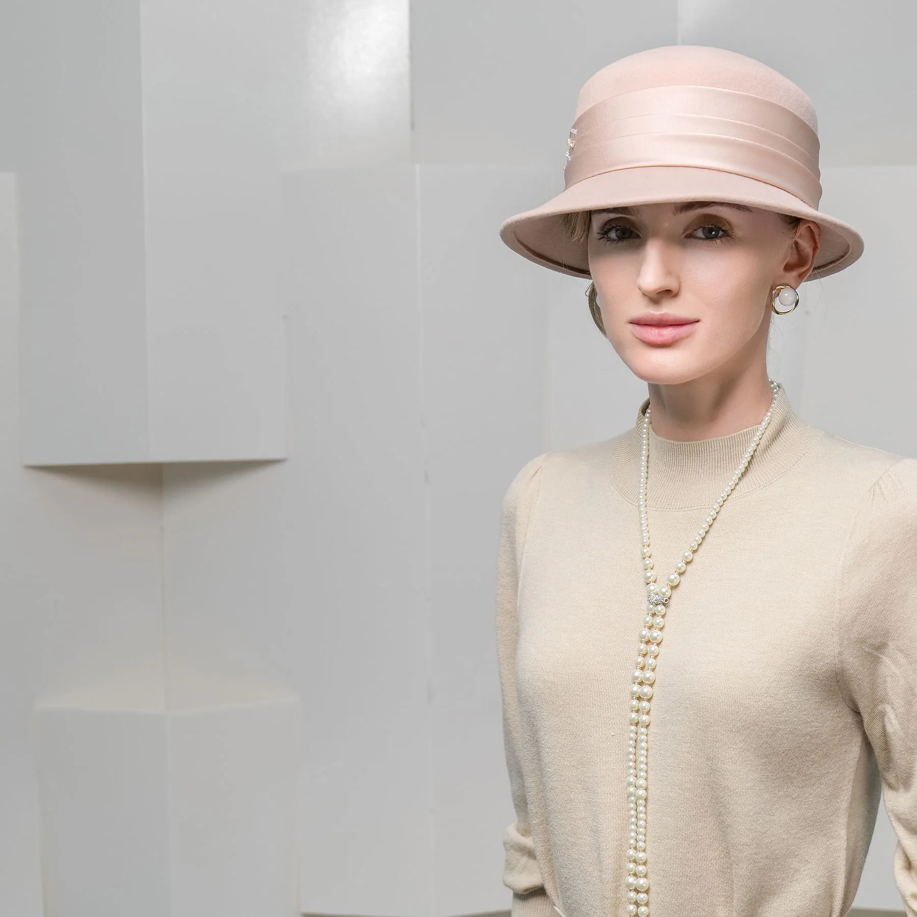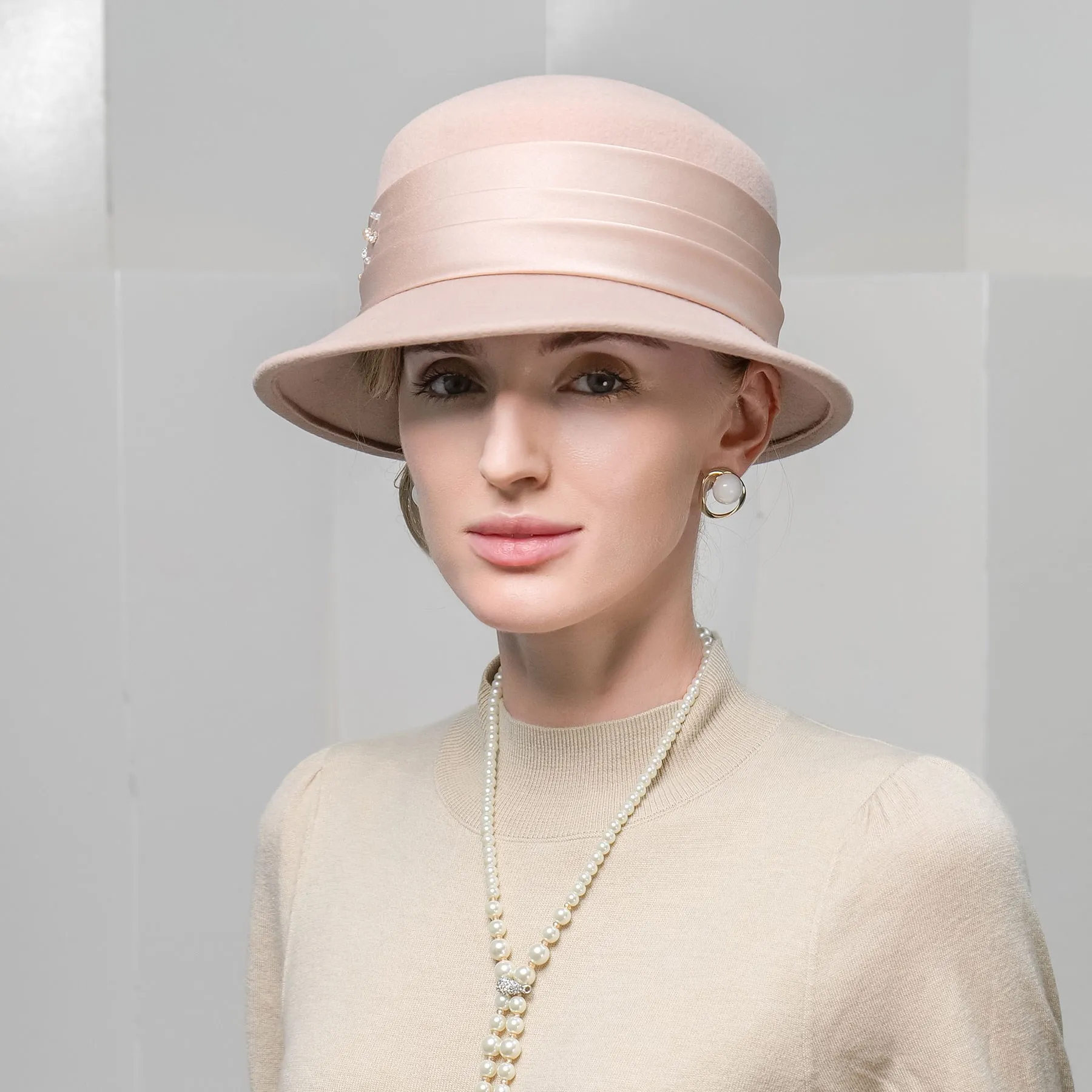 EE 5213 new winter elegant pearl decoration banquet pure wool hat felt trilby female hat in winter