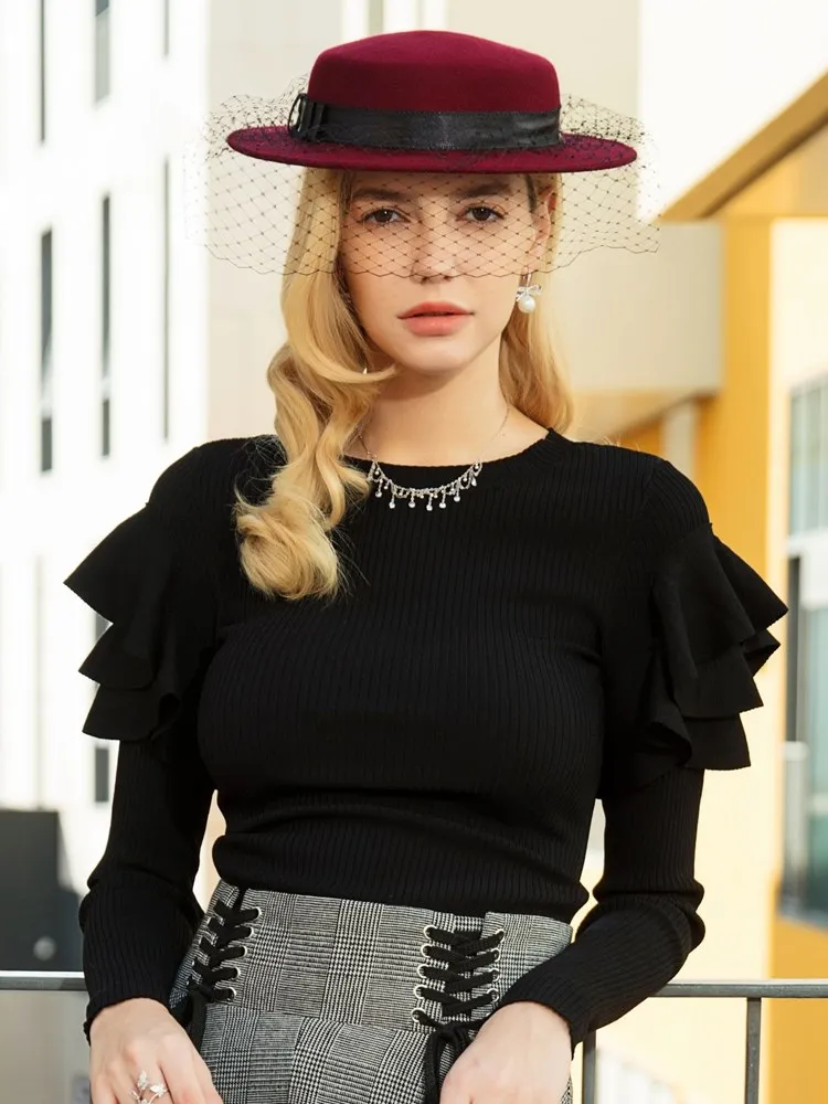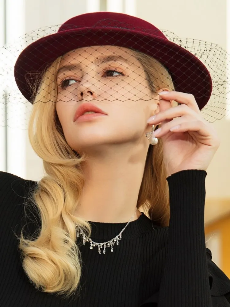 EE 5226 spring new woolen top hat yarn net hat women elegant everything with a little girl top hat