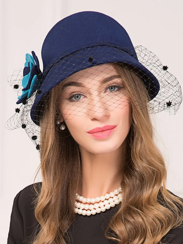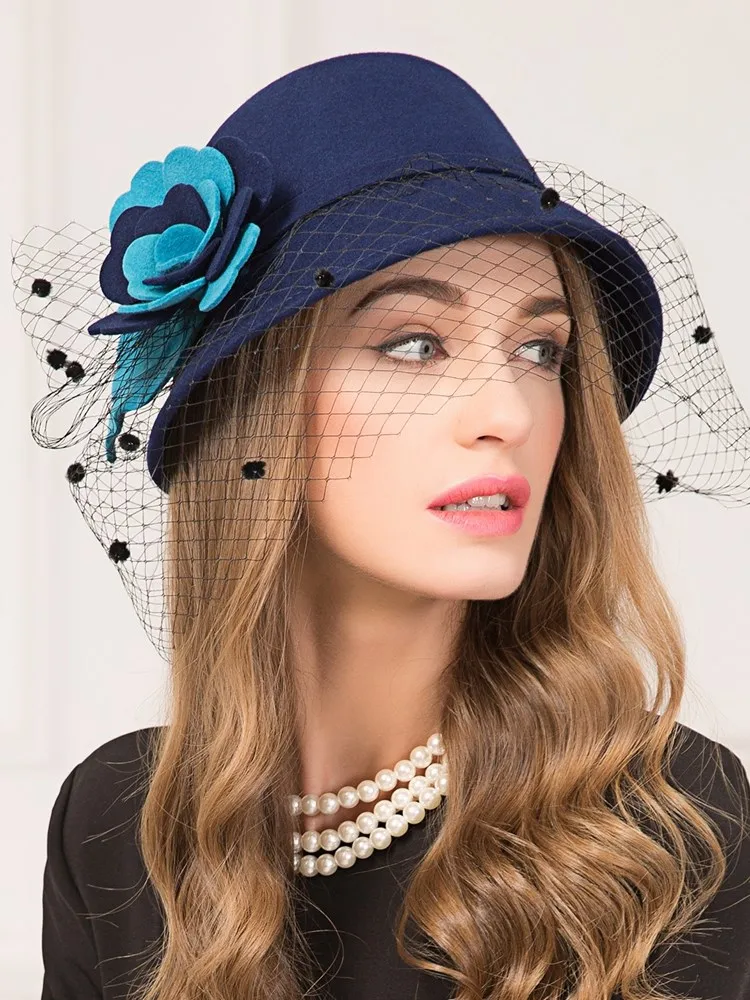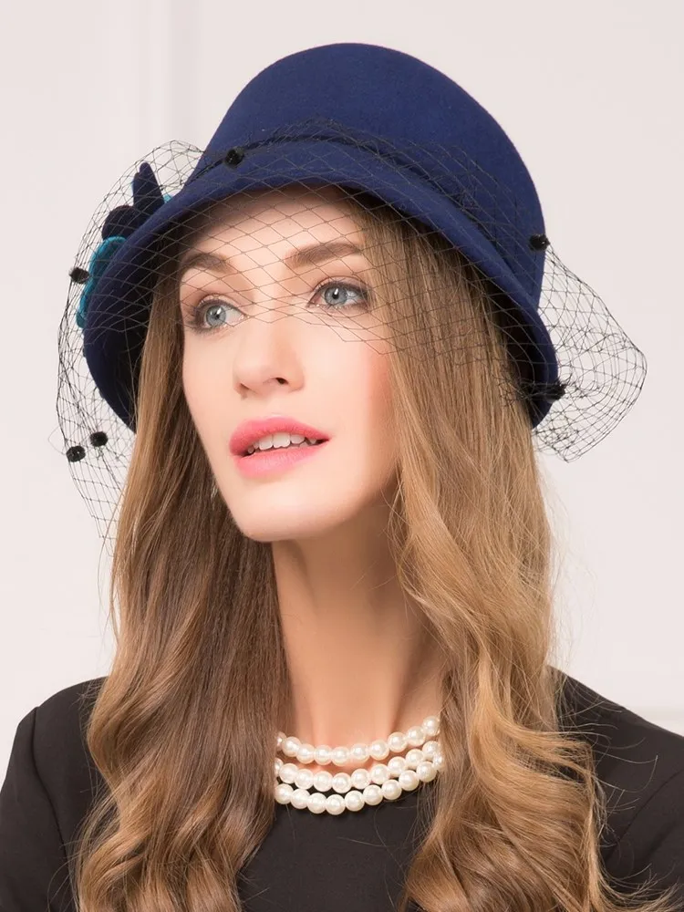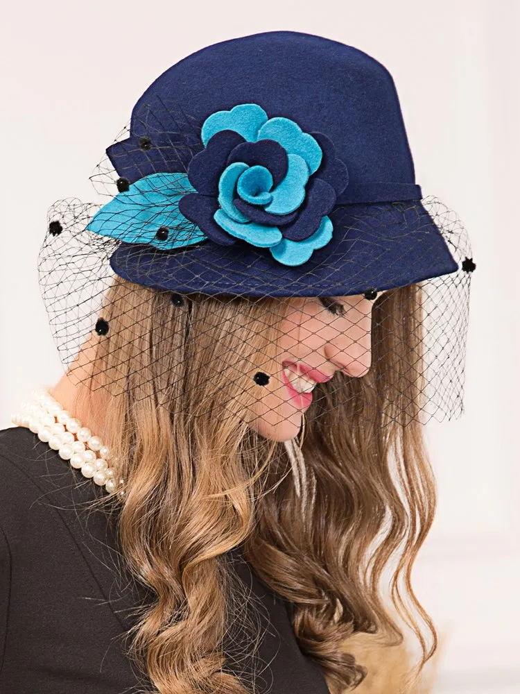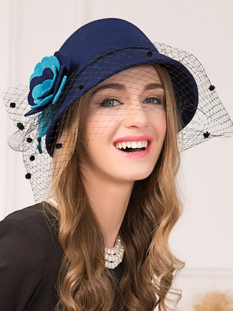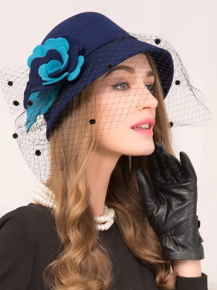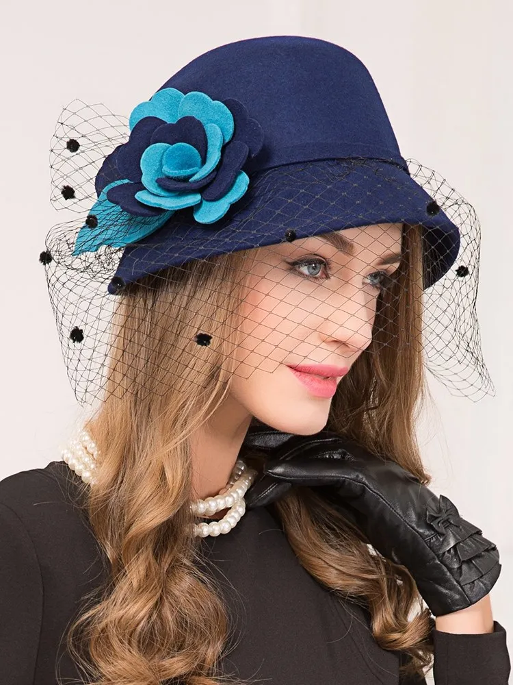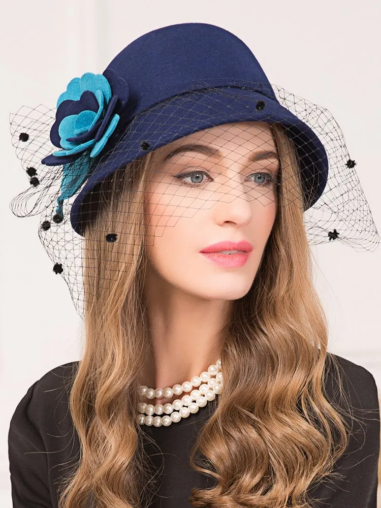 EE 5227 new hat women's autumn wool felt hat winter shopping flower ladies small top hat travel woolen hat