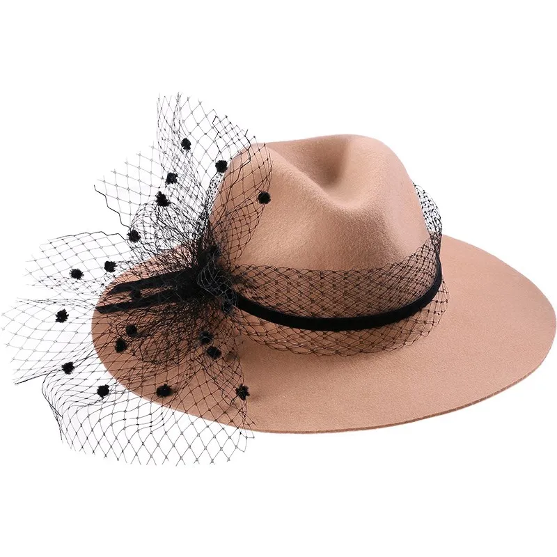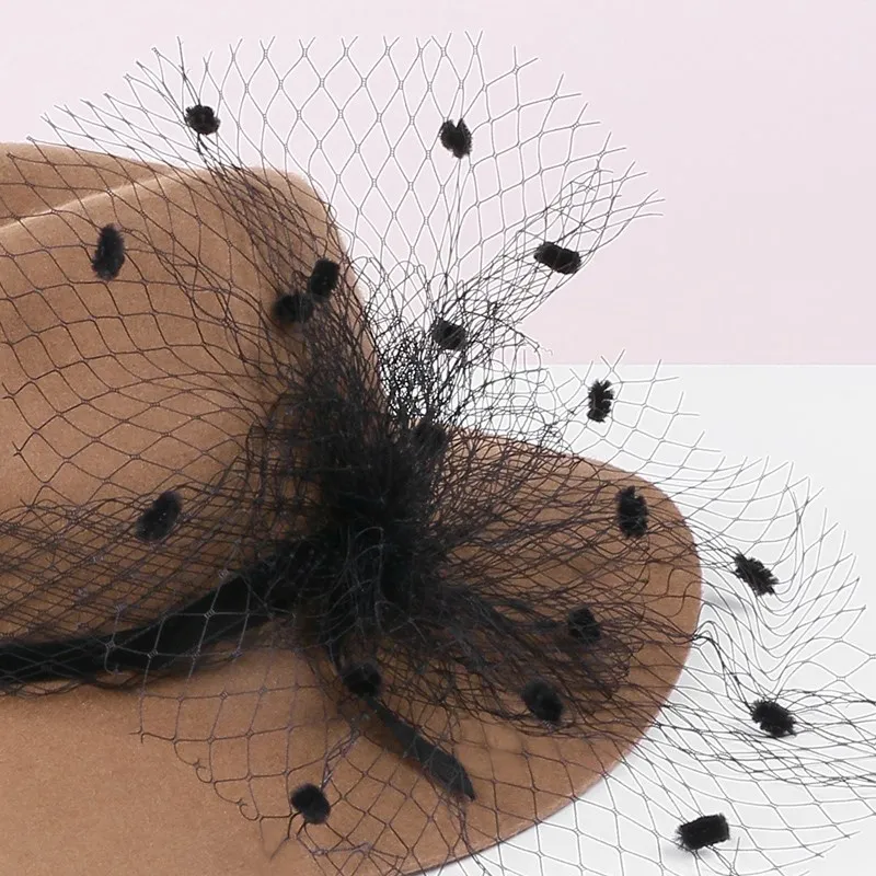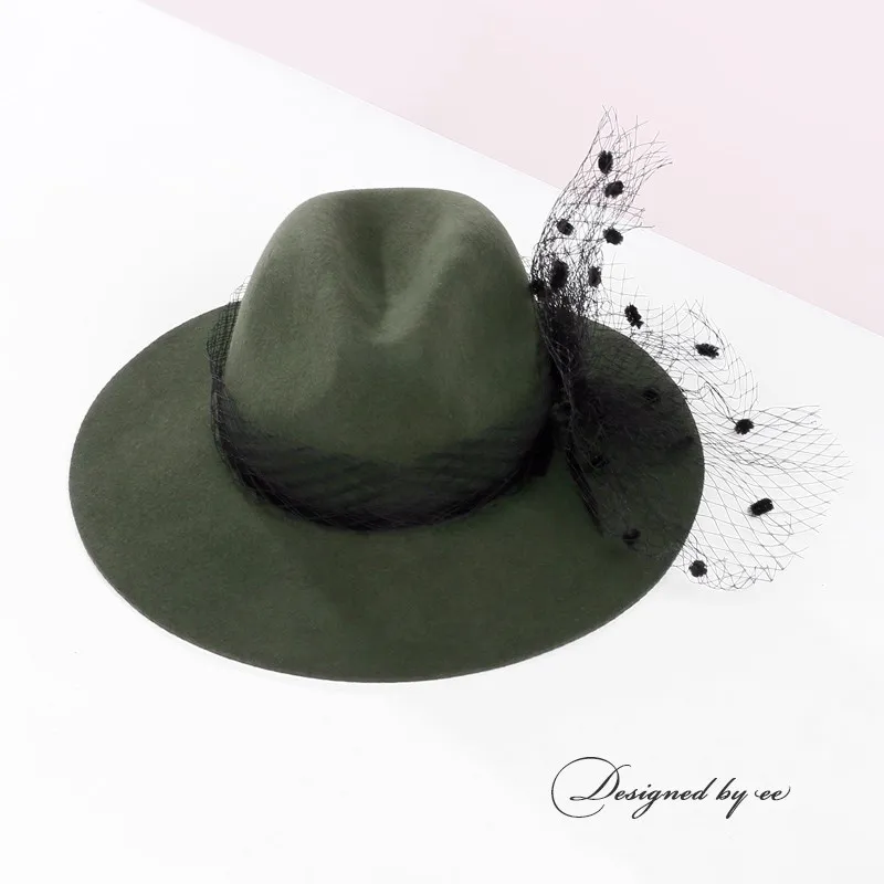 EE 5243 Wool adult top hat Australian wool Jazz hat large brim vintage mesh elegant winter hat lady