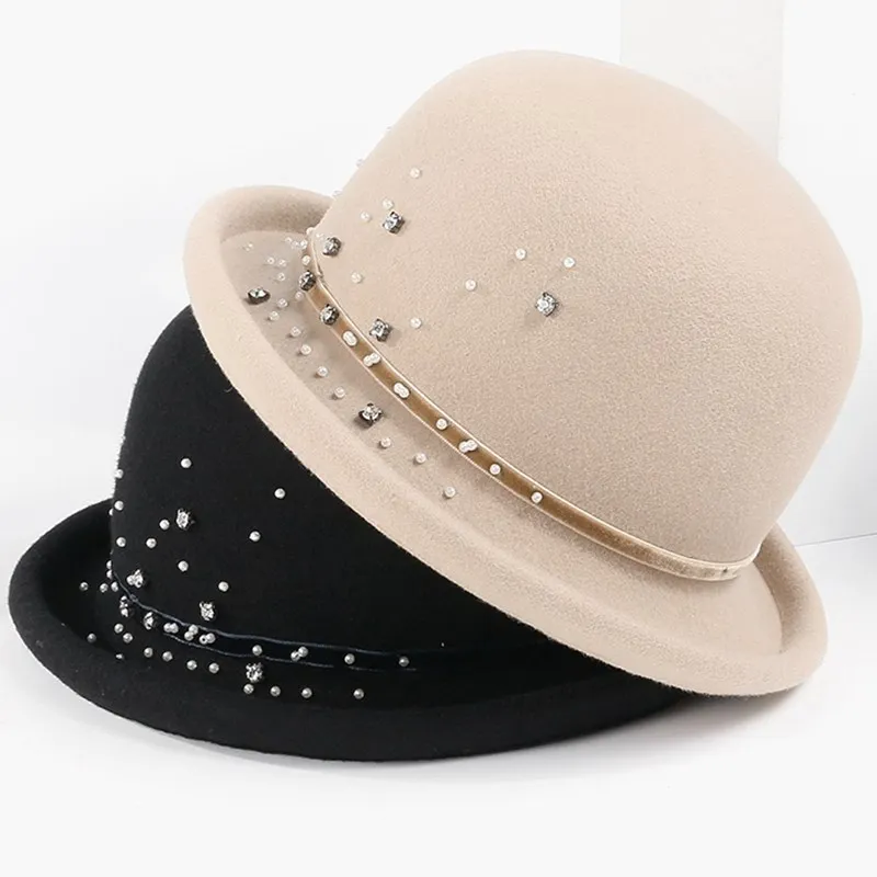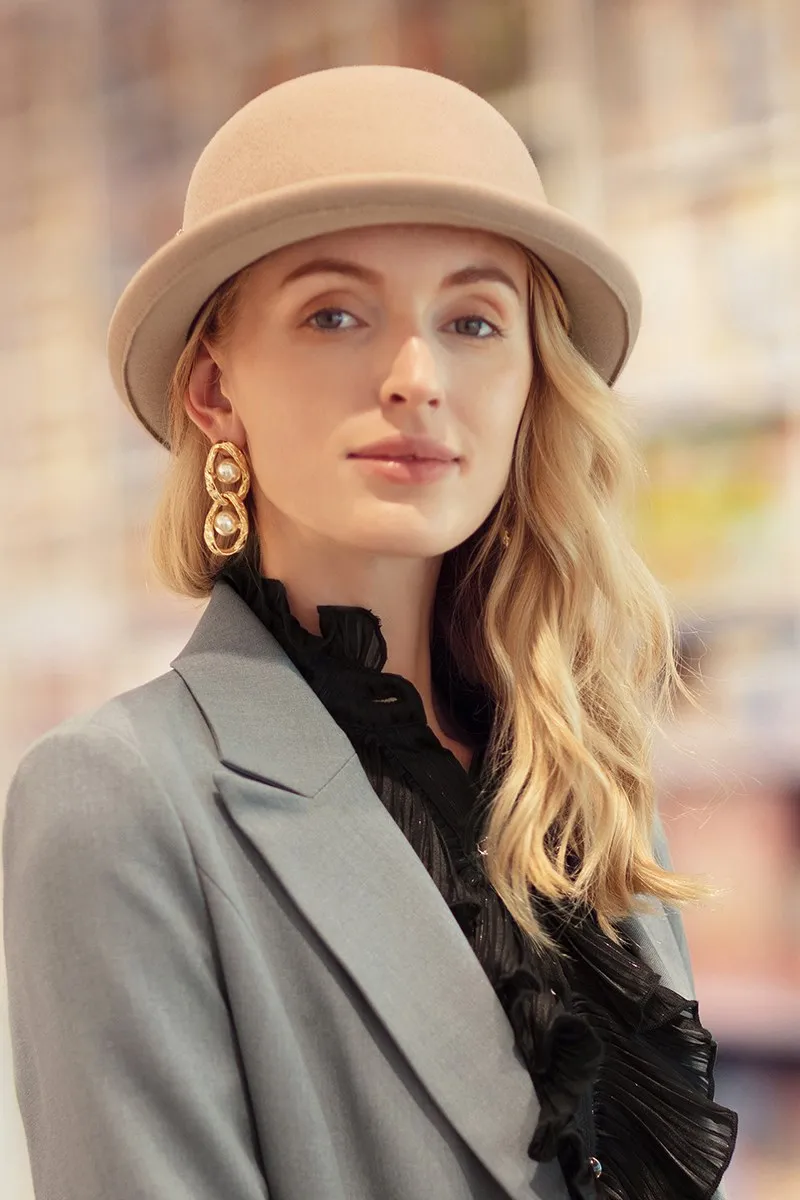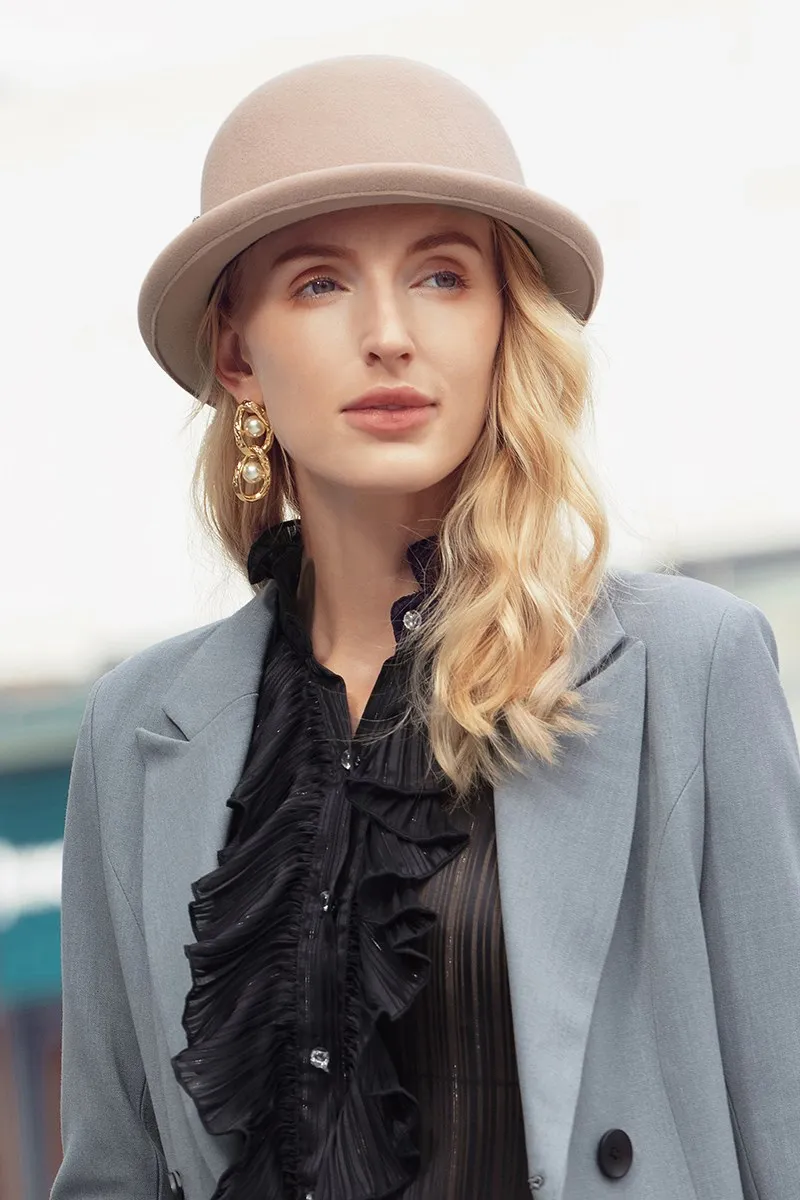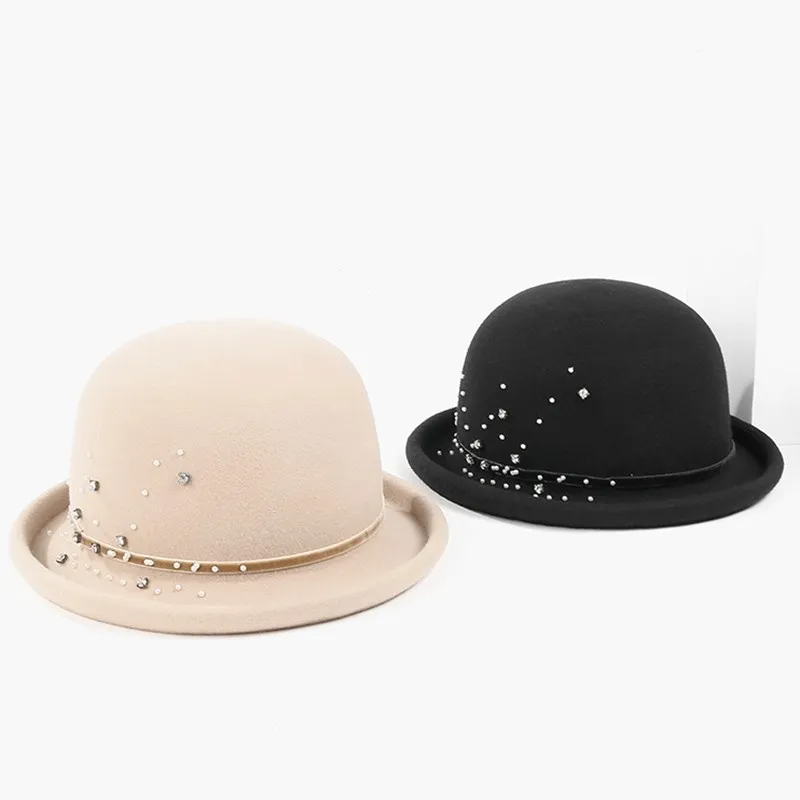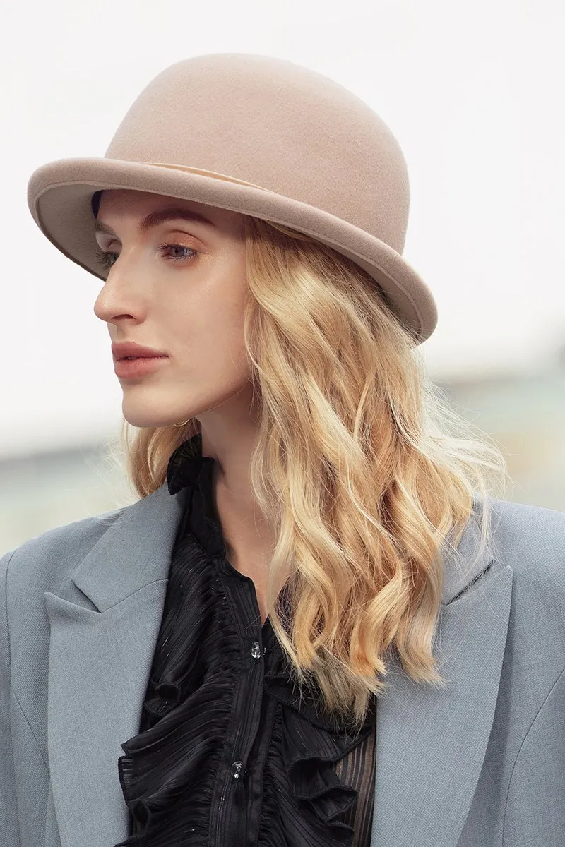 EE 5253 Autumn and Winter New Round Top Rolling Eaves Wool Hat Simple and Versatile Style Celebrity Ladies Hat Children