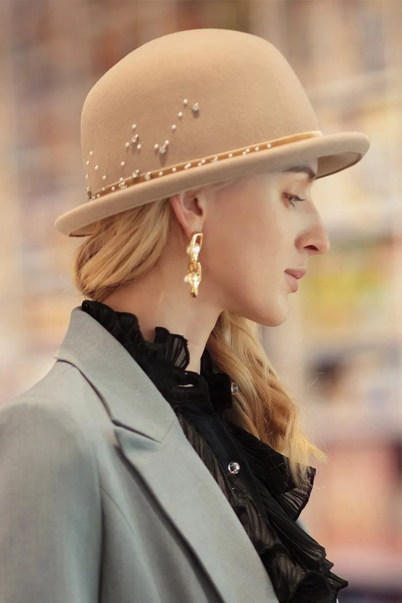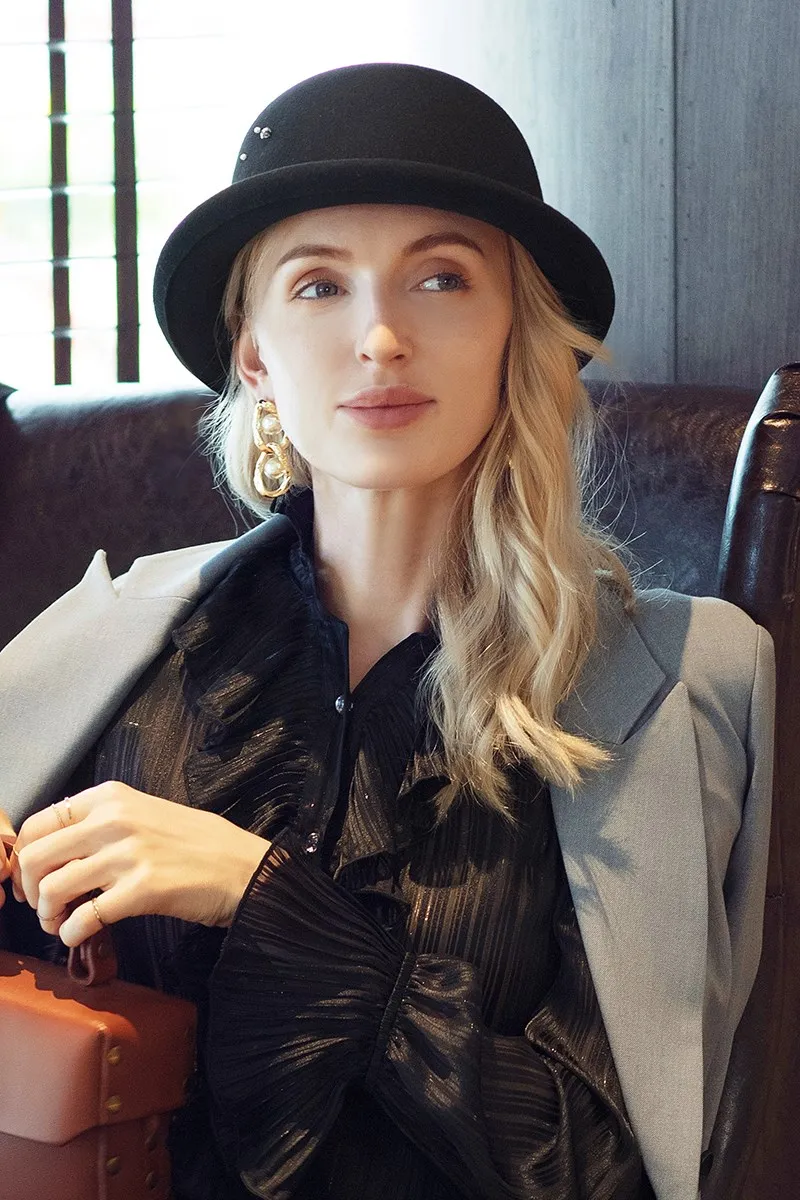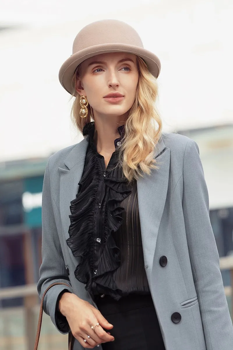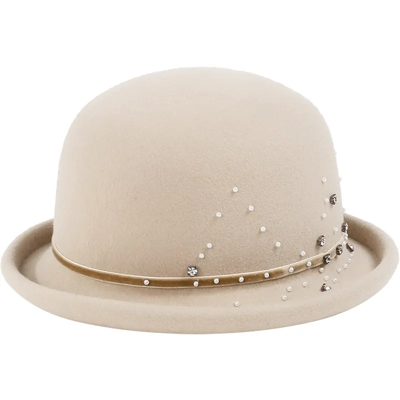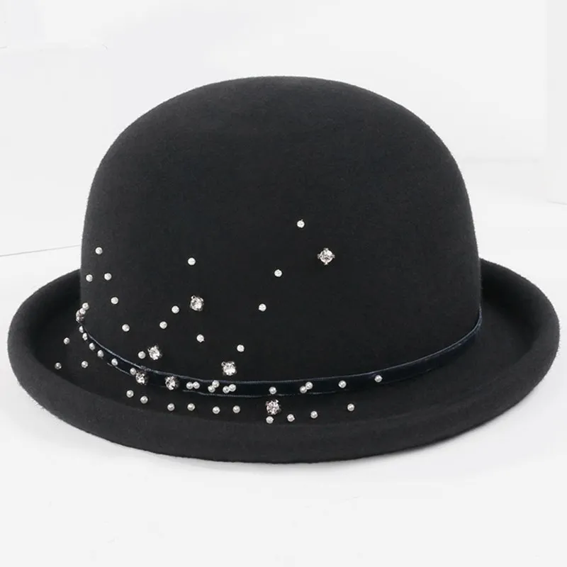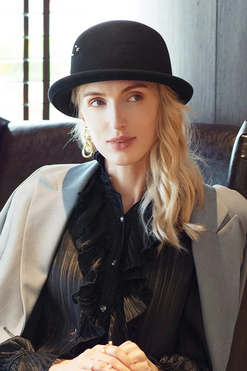 EE 5253 Autumn and Winter New Round Top Rolling Eaves Wool Hat Simple and Versatile Style Celebrity Ladies Hat Children