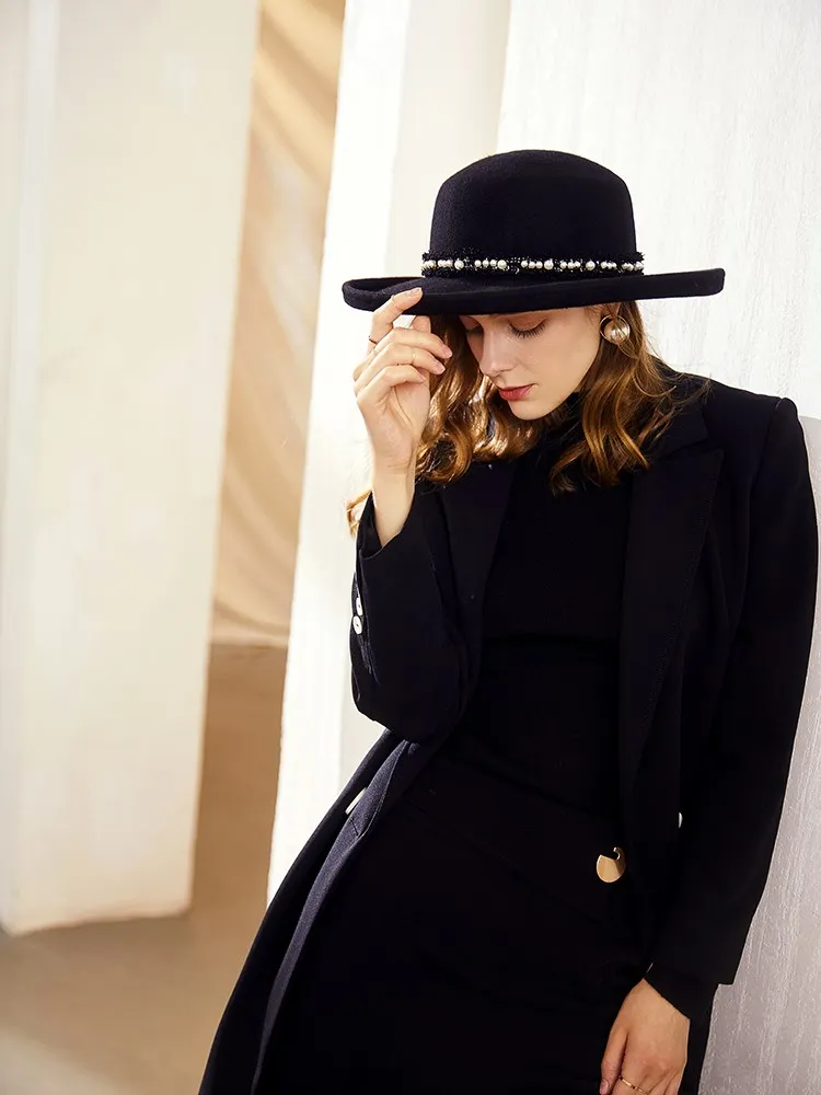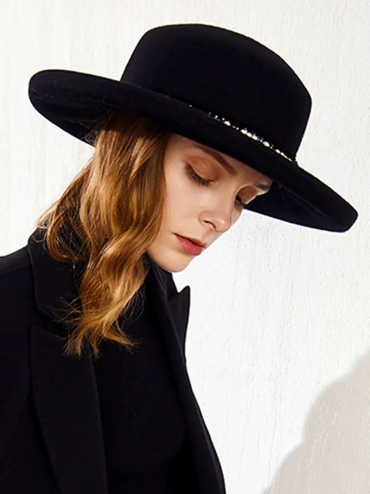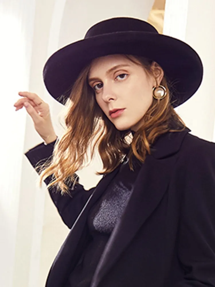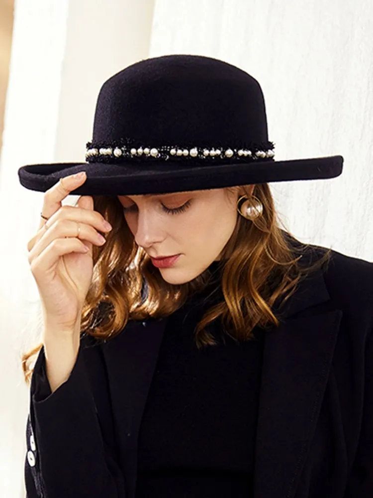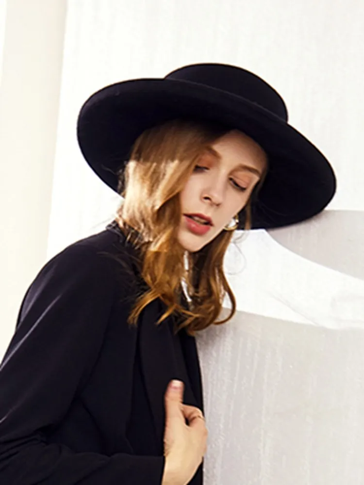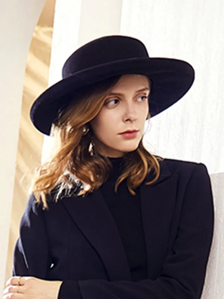 EE 5280 new tide woolen lady hat Autumn winter British vintage top hat plain curled-up hat female autumn