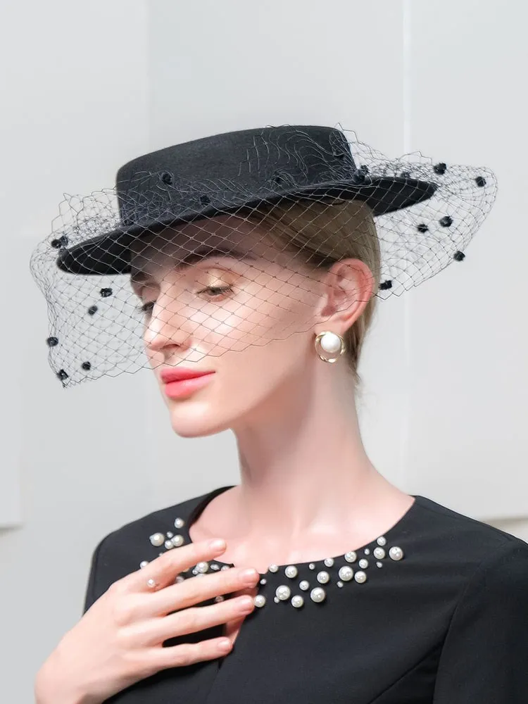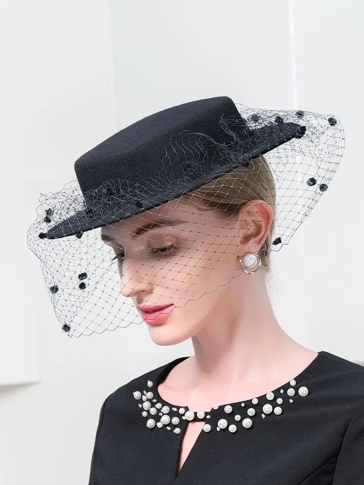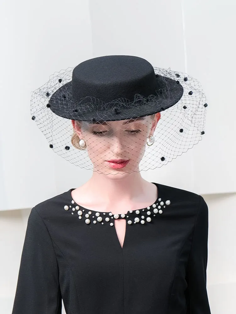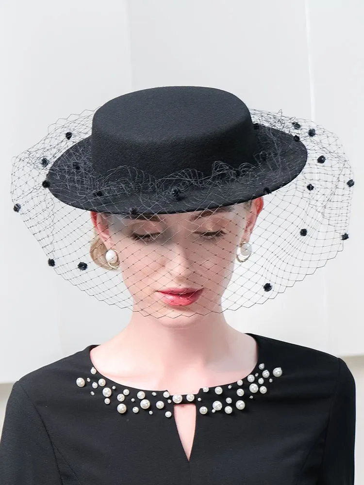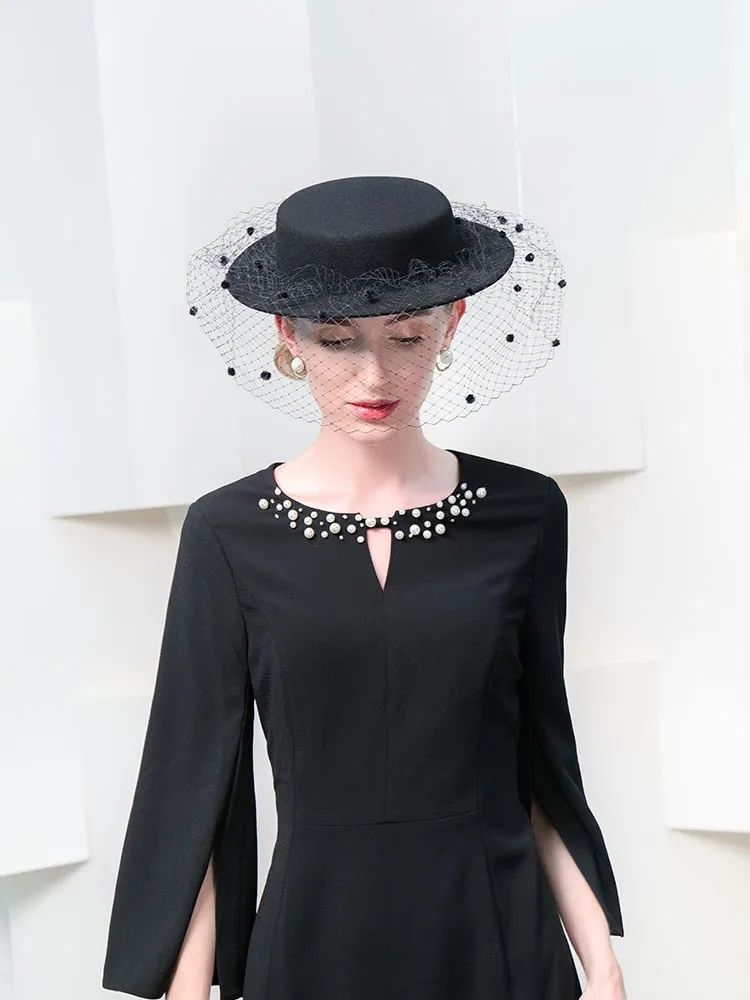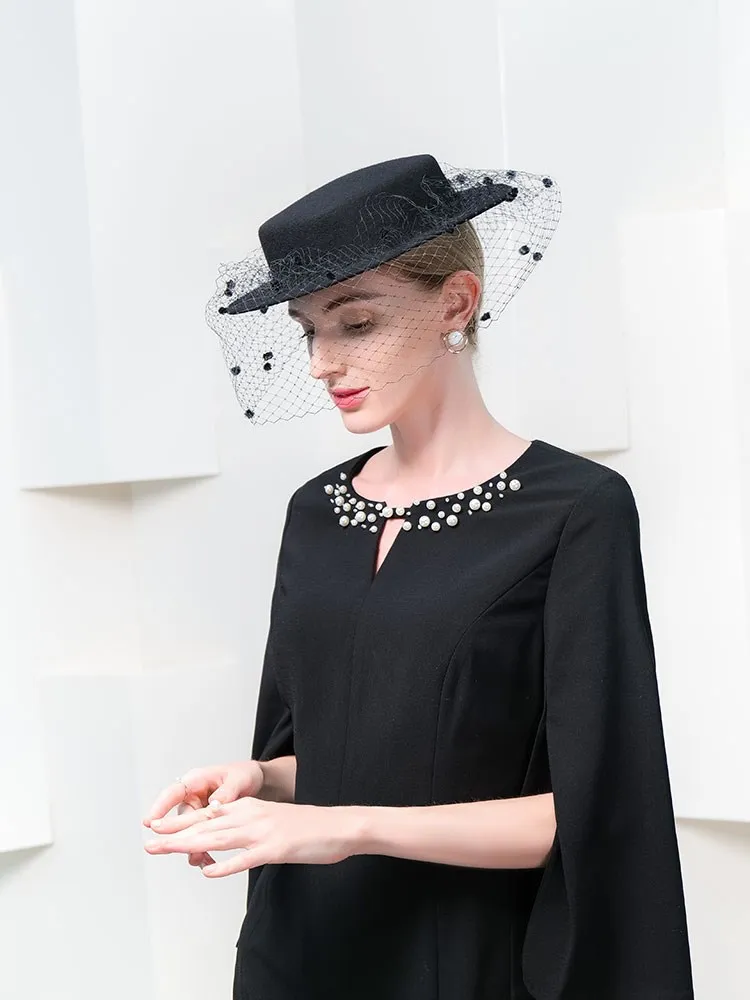 EE 5284 qiu dong restoring ancient ways British cloth pure wool hat gauze restore ancient ways small party hats