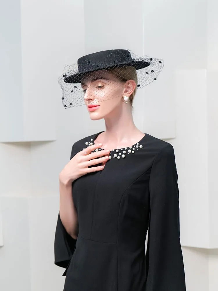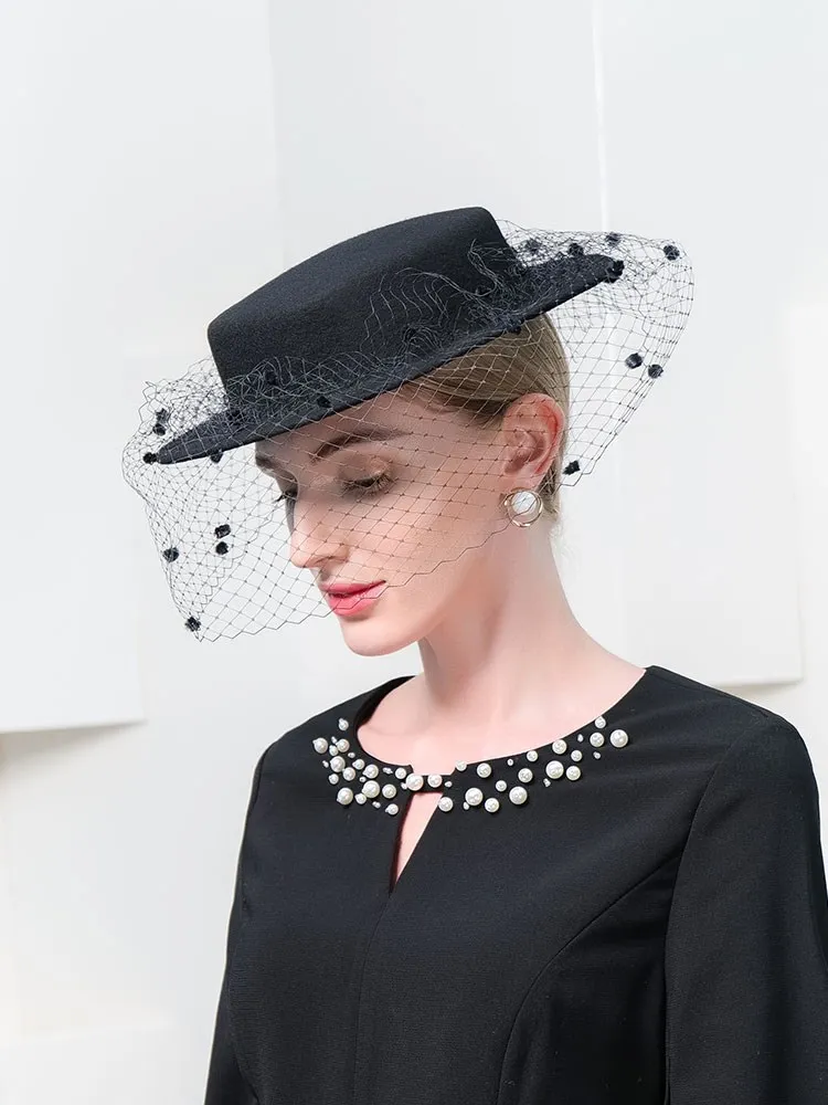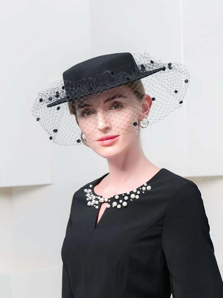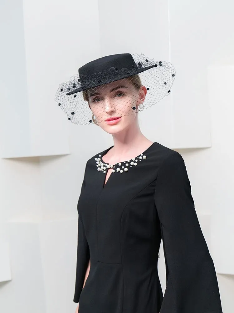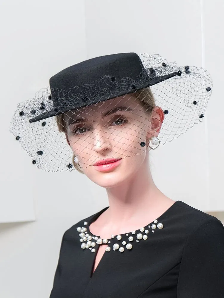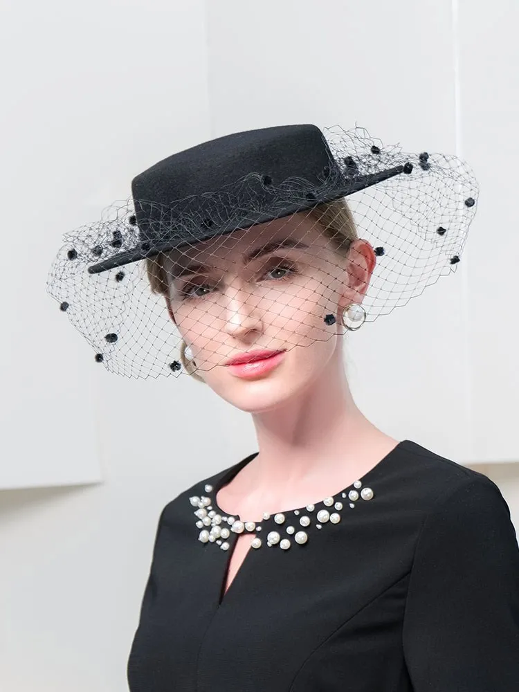 EE 5284 qiu dong restoring ancient ways British cloth pure wool hat gauze restore ancient ways small party hats