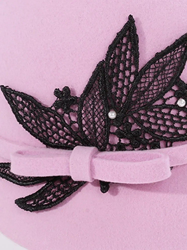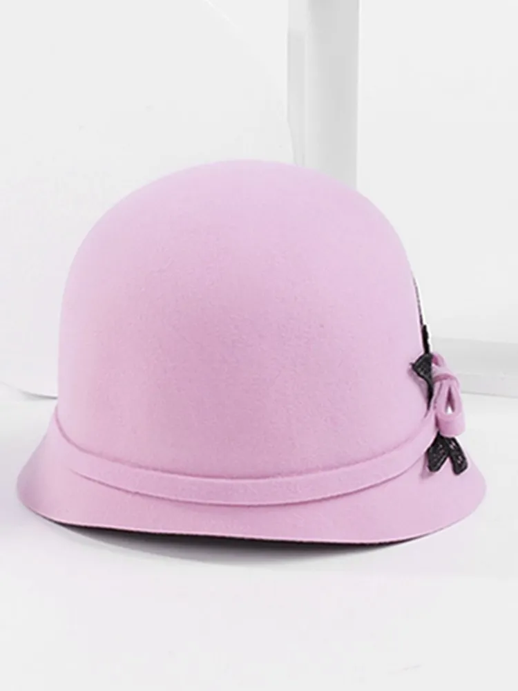 EE 5292 dome short eave bow wool hat autumn/winter warm wool top hat elegant diamond-encrusted hat woman