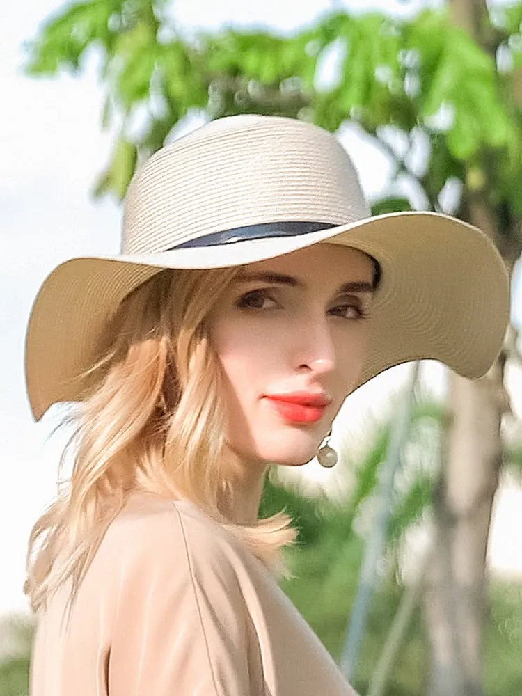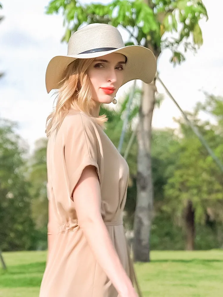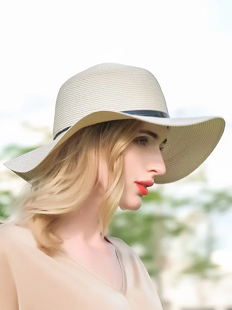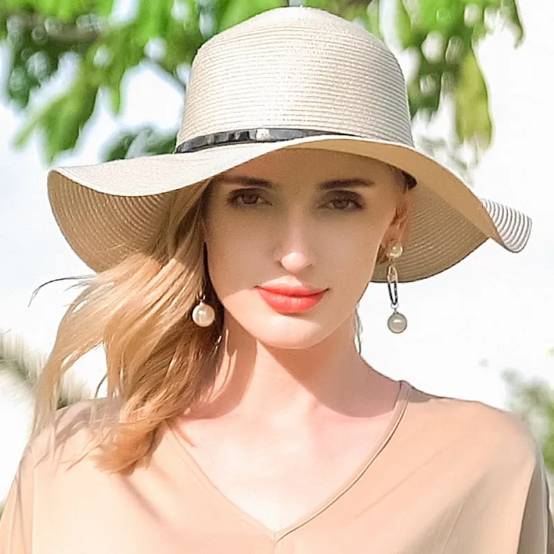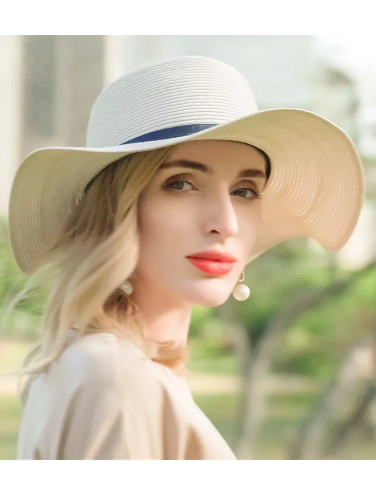 EE 7022 Summer New Style Temperament Goddess Royal Sister Fan Big Eaves Straw Hat Versatile Foldable Hat Female Summer