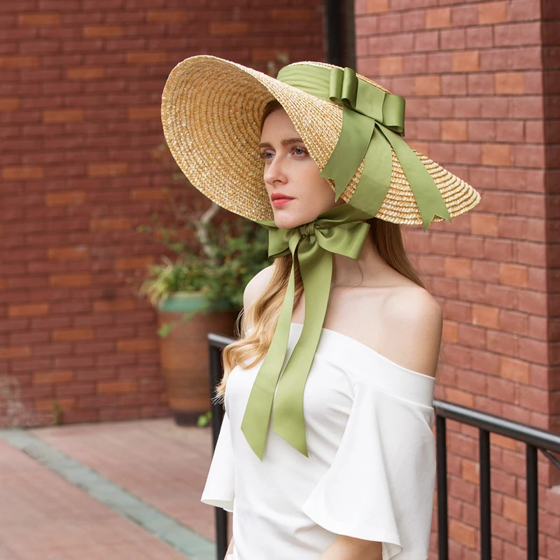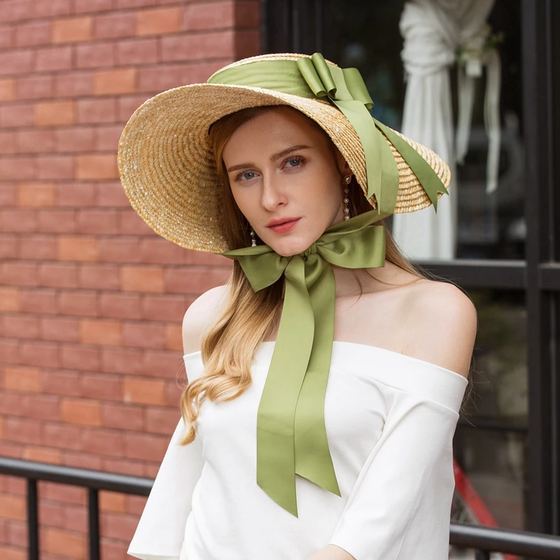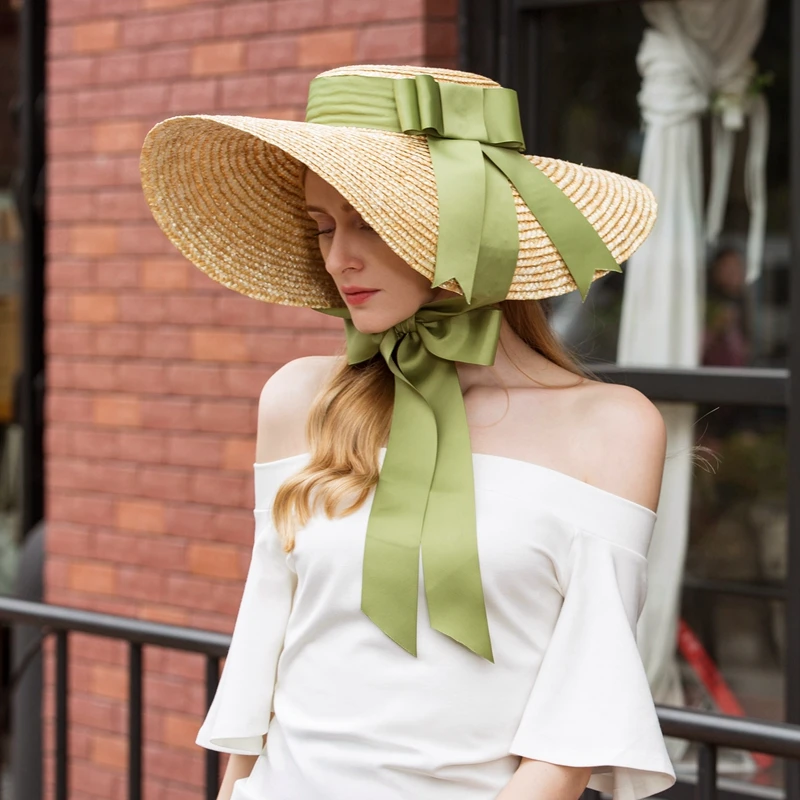 EE 7087 Summer/Classical/Fascinator/Leisure/Bowknot/Ribbon/Wide Brim/Sun Protection/Beach Sun Hat/Sunbonnet/Straw Hat