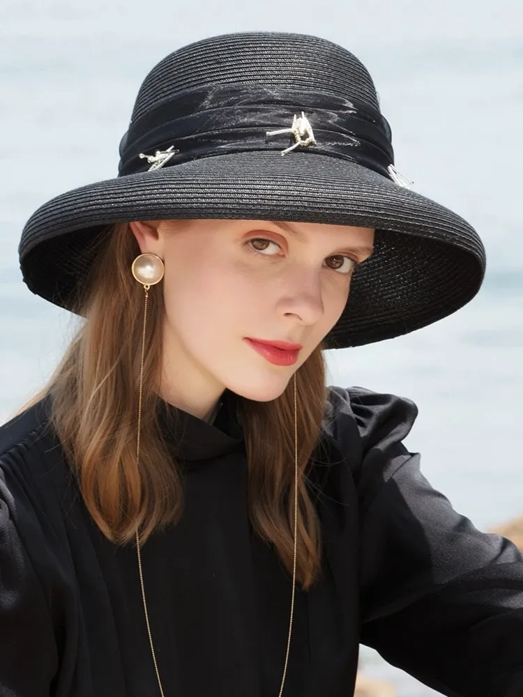EE 7154 Summer New Elegant Versatile Beach Sunshade Straw Hat Hat Women's Summer